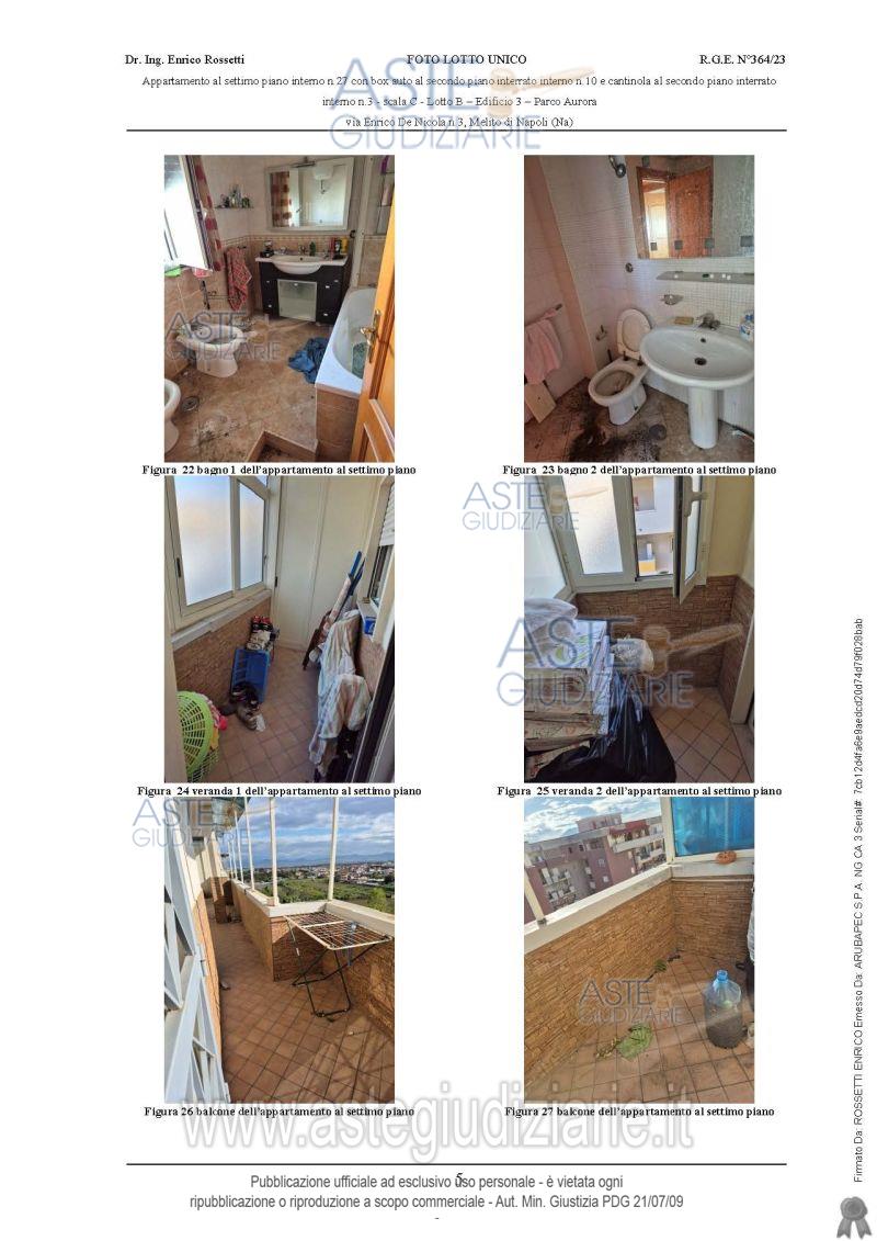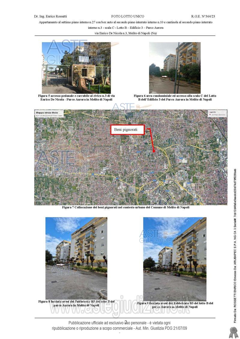 Vendita all'asta Senza incanto, con gara telematica asincrona - LOTTO UNICO: Piena ed intera proprietà dell’appartamento con annesso box auto e cantinola ubicato all’interno del Parco Aurora in Melito di Napoli (Na) alla Via Enrico De Nicola n. 3. Prezzo base € 105.000,00 (offerta minima € 78.750,00). Data inizio operazioni di vendita: 01/04/2026 ore 15:00. Professionista delegato alla vendita Avv. Giorgia Viola - Email "avv.giorgiaviola@libero.it"; Tel. 08118858628. Custode Giudiziario Avv. Giorgia Viola - Email "avv.giorgiaviola@libero.it"; Tel. 08118858628. Rif. Tribunale di Napoli Nord - Espropriazione immobiliare (cartabia) n. 364/2023