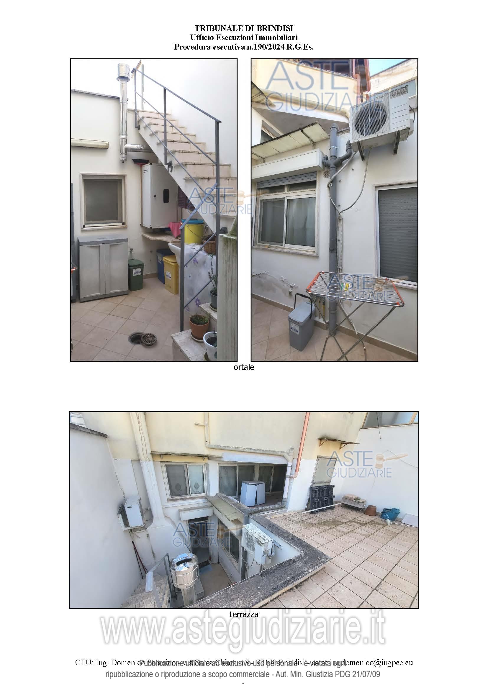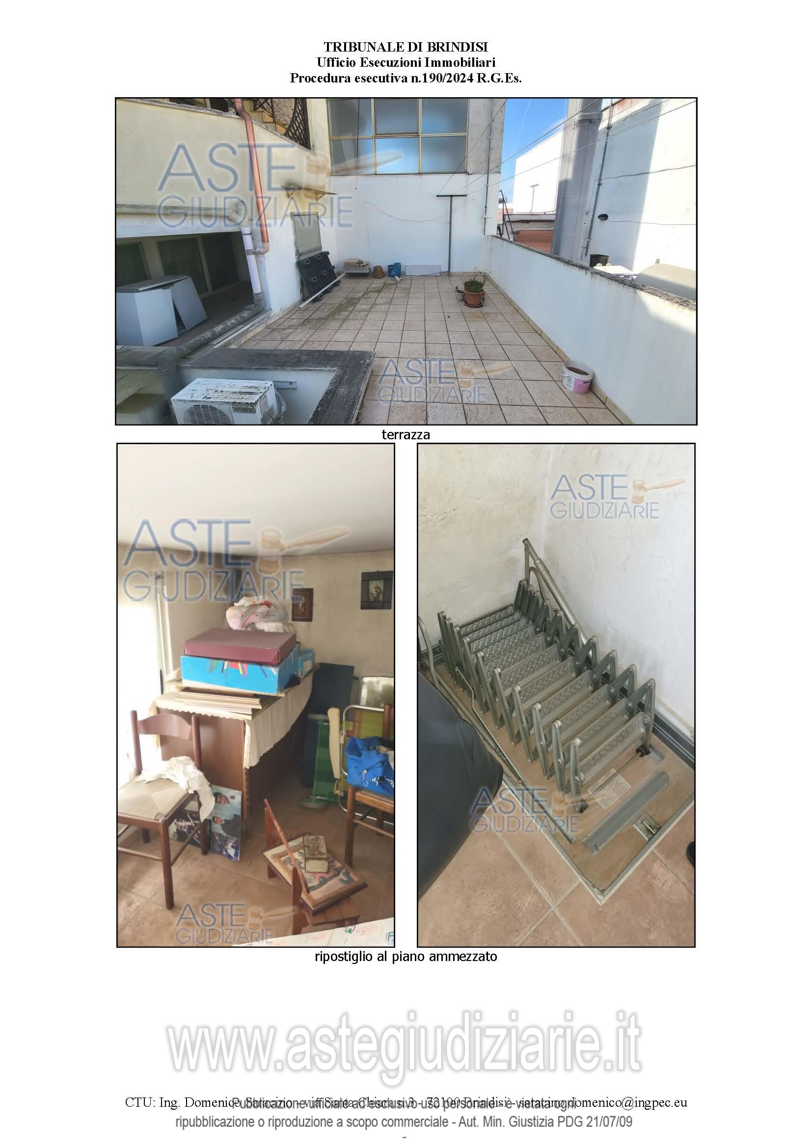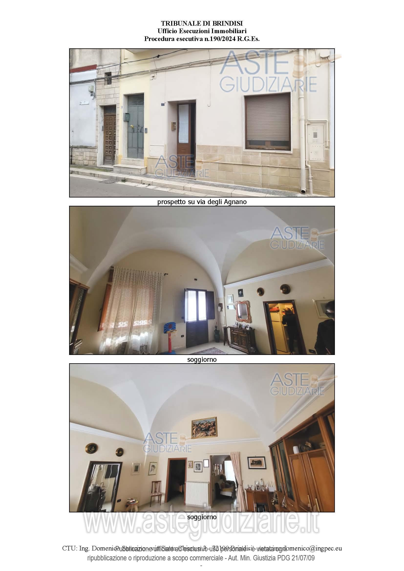 Vendita all'asta Senza incanto, con gara telematica asincrona - LOTTO UNICO: Piena proprietà dell’abitazione in Mesagne (Br) alla via degli Agnano n. 36, della superficie commerciale di 120,85 m². E’ posta al piano terra e presenta accesso autonomo da strada. Prezzo base € 41.250,00 (offerta minima € 30.937,50). Data inizio operazioni di vendita: 09/03/2026 ore 11:20. Professionista delegato alla vendita Avv. Michele Angelo Chiarelli - Email "avv.michelangelochiarelli@gmail.com"; Cell. 3204814458; Tel. 0831775603. Custode Giudiziario Avv. Michele Angelo Chiarelli - Email "avv.michelangelochiarelli@gmail.com"; Cell. 3204814458; Tel. 0831775603. Rif. Tribunale di Brindisi - Espropriazione immobiliare (cartabia) n. 190/2024