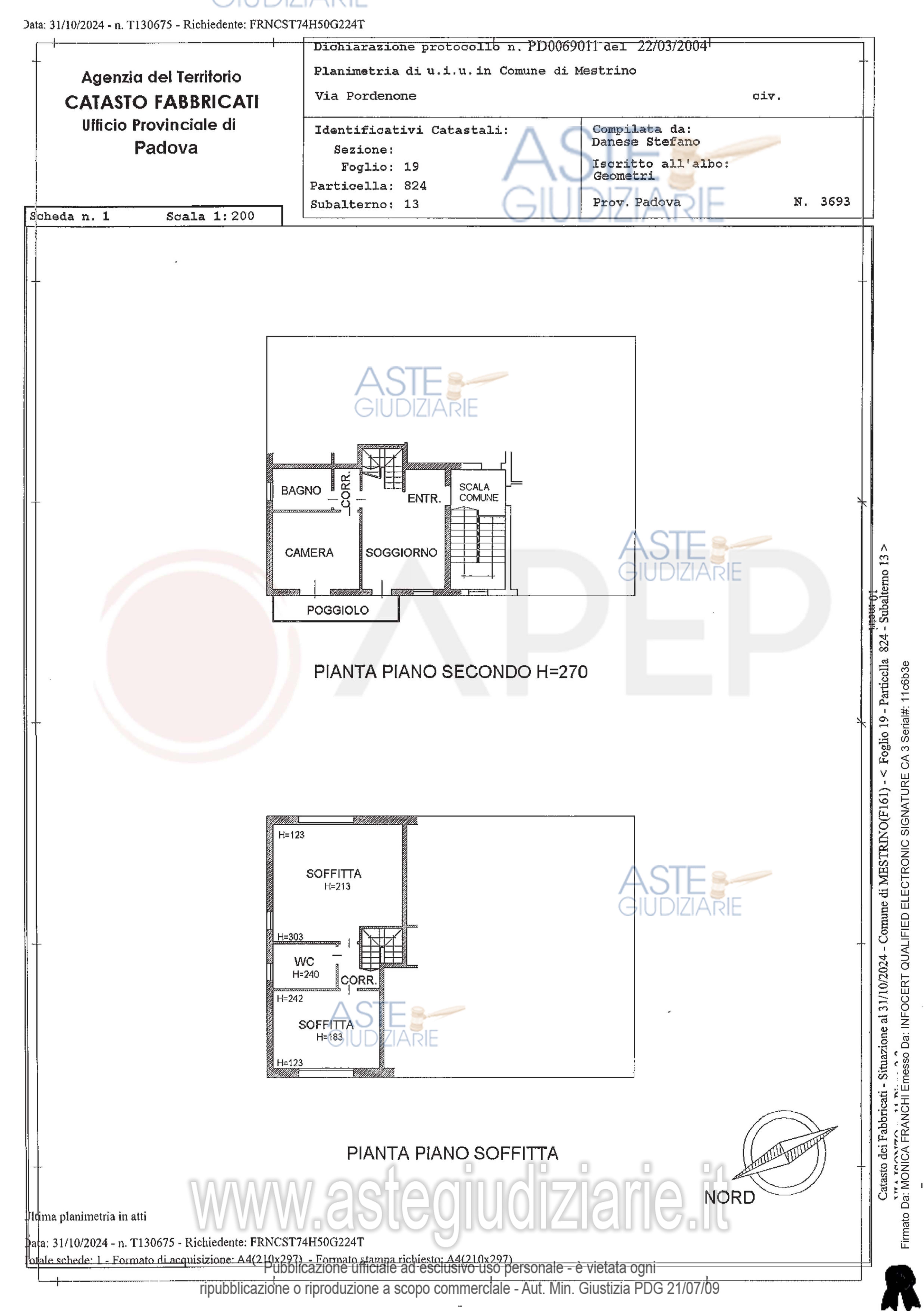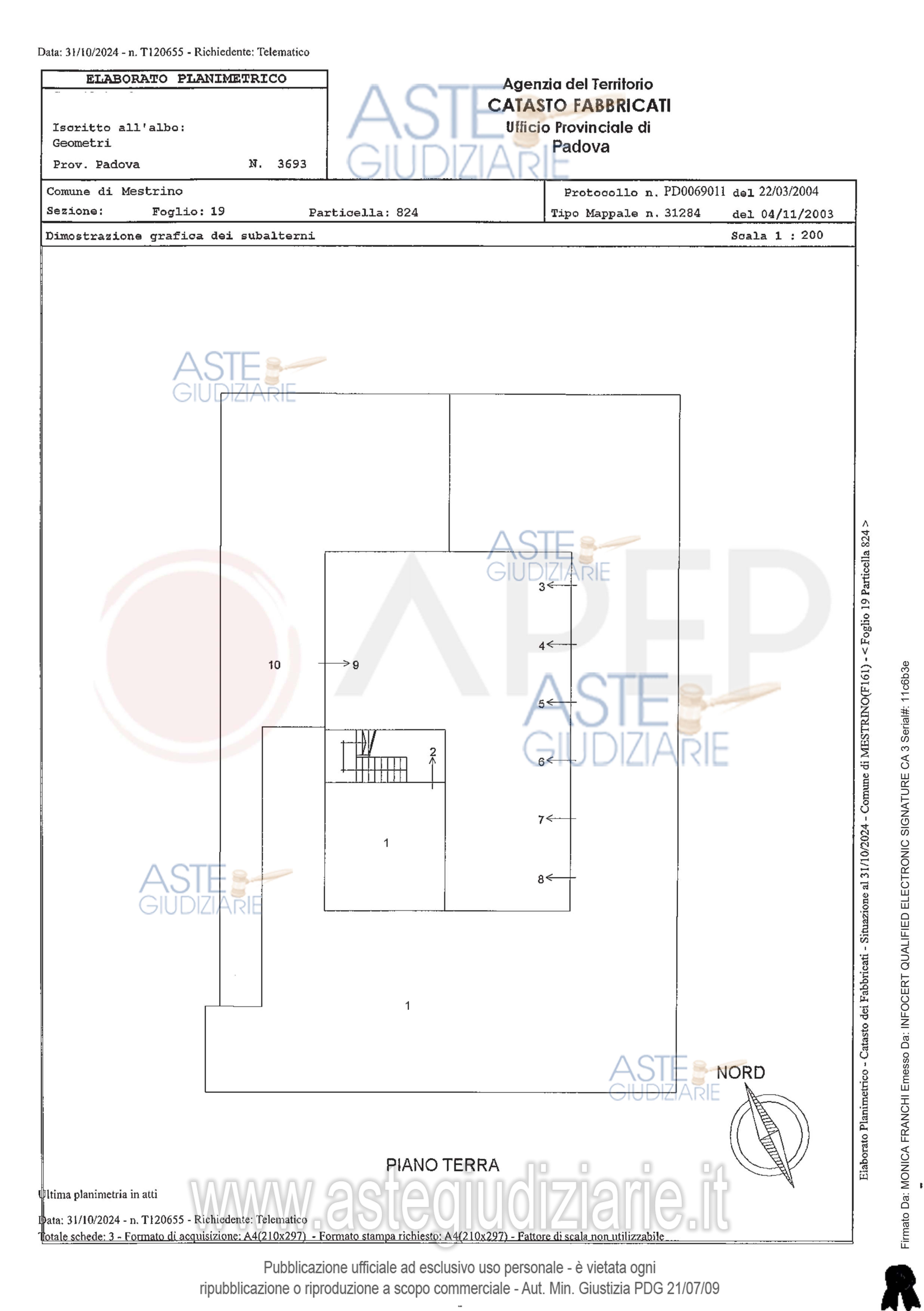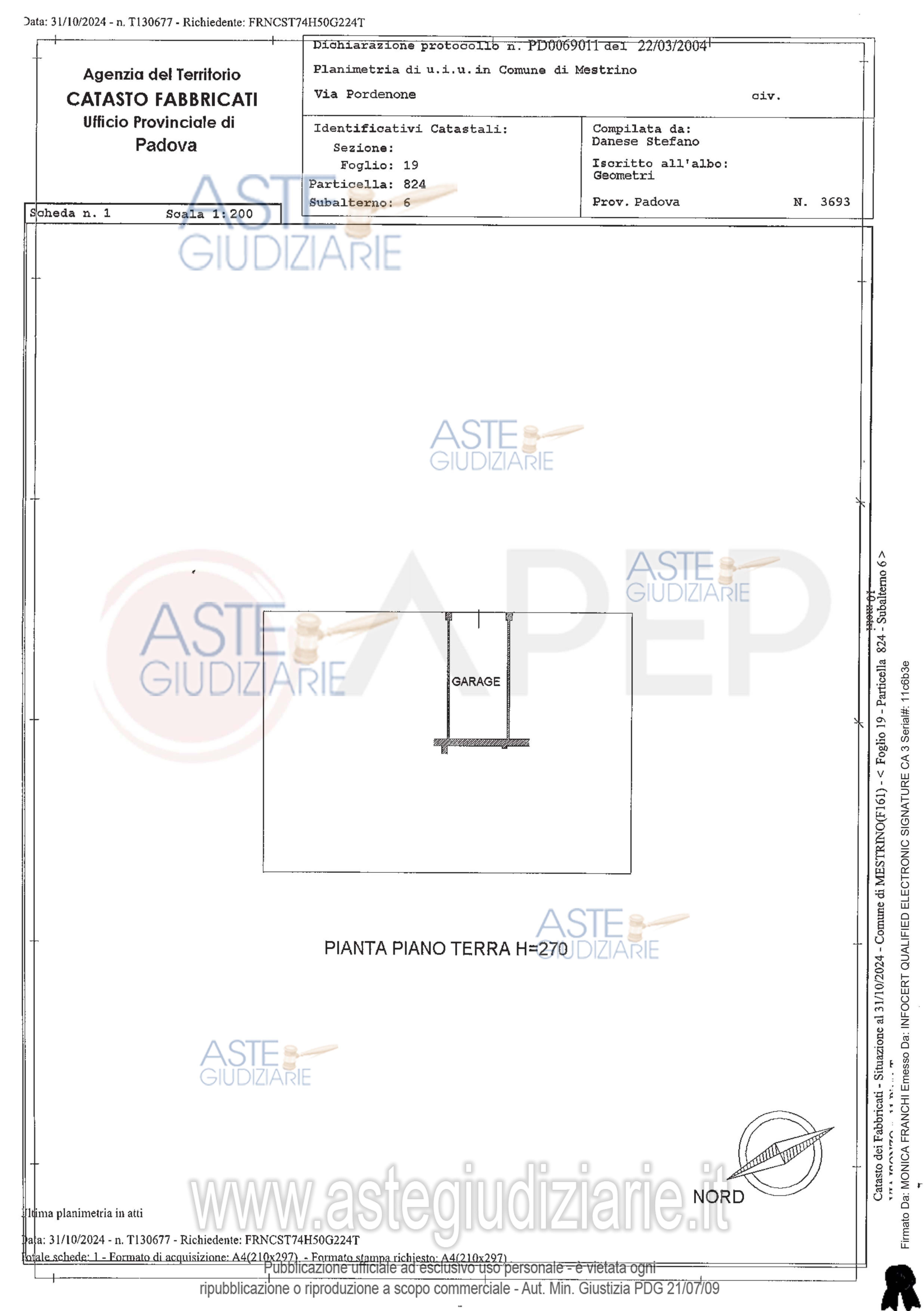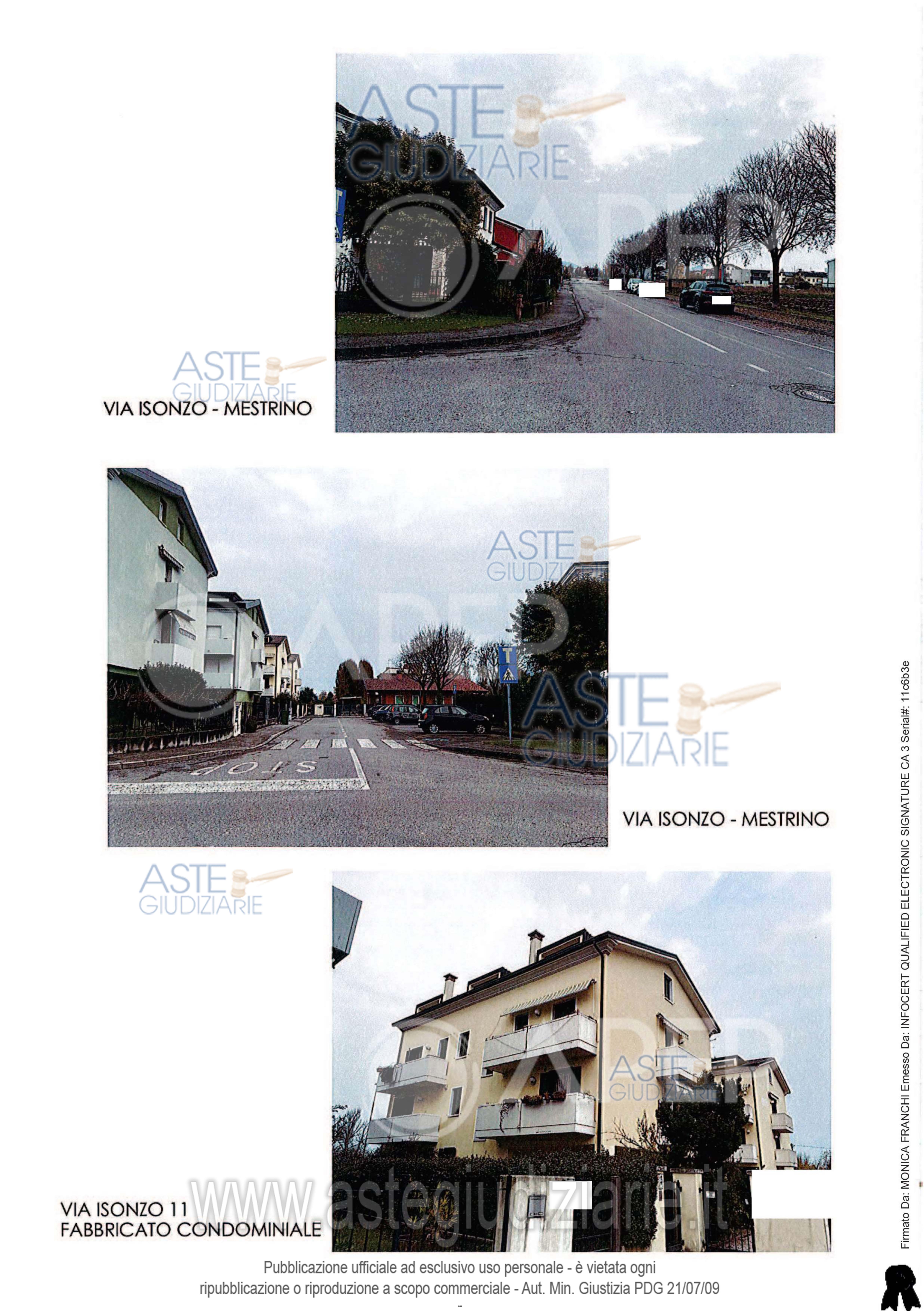 Vendita all'asta Senza incanto, con gara telematica sincrona - LOTTO UNICO:  Lotto Unico - piena proprietà di unità immobiliari facenti parte del fabbricato condominiale denominato "Condominio Alba", in Comune di Mestrino (PD), via Isonzo n. 11 e precisamente appartamento al piano secondo, angolo nord-ovest, con annessi due locali soffitta ed un accessorio di servizio al piano soffitta collegati allo stesso da una scala interna, garage al piano terra con accesso da est il terzo da sud, di complessivi mq. 90 con l'uso esclusivo di un posto auto esterno. Occupato dal debitore. Prezzo base € 76.800,00 (offerta minima € 57.600,00). Data vendita 18/11/2025 ore 14:00. Giudice Amenduni. Professionista delegato alla vendita Not. Valentina Zafarana - Email "aste@apepnotai.it"; Tel. 049651228. Custode Giudiziario  Apep - Email "visita@apepnotai.it"; Tel. 049651228.  Rif. Tribunale di Padova - Espropriazione immobiliare (cartabia) n. 219/2024