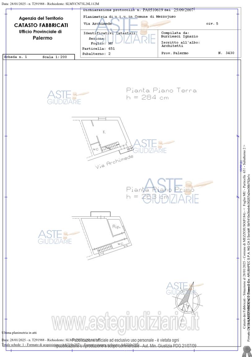 Vendita all'asta Senza incanto, con gara telematica sincrona - LOTTO UNICO: Fabbricato civile ubicato a Mezzojuso (PA) - Via Archimede n. 5, indipendente con destinazione ad uso civile abitazione, si sviluppa in due piani, piano terra e primo. Prezzo base € 39.260,00 (offerta minima € 29.445,00). Data vendita 11/03/2026 ore 10:30. Professionista delegato alla vendita Avv. Andrea Giovanni Cartella - Email "andreacartella@libero.it"; Cell. 3471384350; Tel. 3471384350. Custode Giudiziario Avv. Andrea Giovanni Cartella - Email "andreacartella@libero.it"; Cell. 3471384350; Tel. 3471384350. Rif. Tribunale di Termini Imerese - Espropriazione immobiliare (cartabia) n. 200/2024
