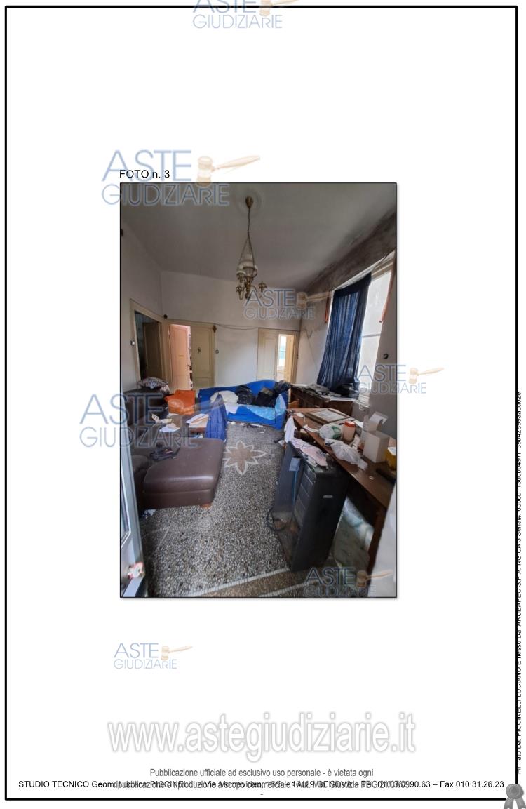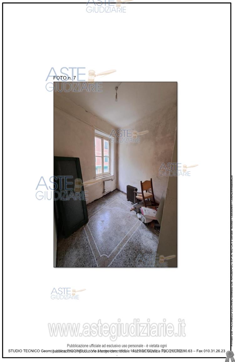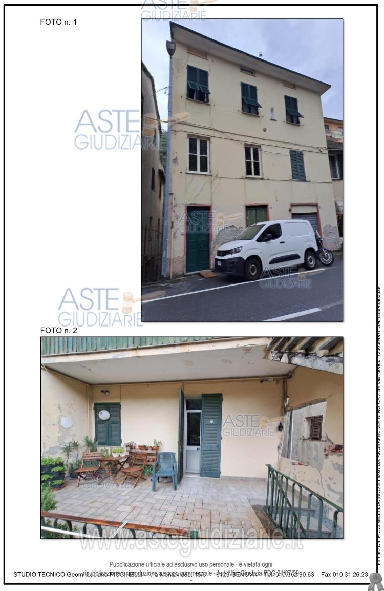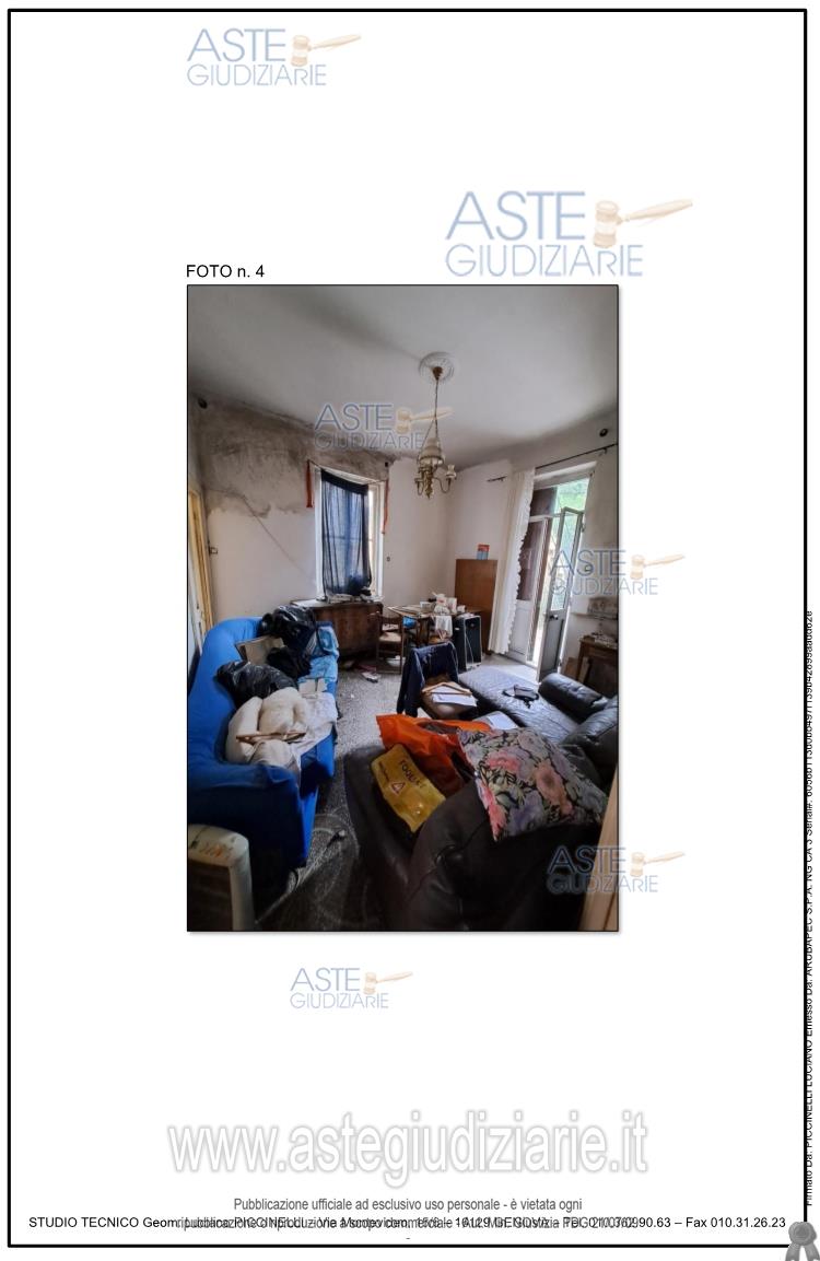 Vendita all'asta Senza incanto, con gara telematica sincrona mista - LOTTO UNICO: Immobile ubicato in Mignanego (GE) composto da quattro vani (ingresso/soggiorno e n. 3 camere oltre a cucina e wc. Per maggiori dettagli si rimanda alla perizia estimativa allegata. Prezzo base € 13.125,00 (offerta minima € 10.000,00). Data vendita 28/11/2025 ore 14:00. Professionista delegato alla vendita Dott. Angela Alessio - Email "angelaalessio.ge@gmail.com"; Cell. 3488087521. Custode Giudiziario Sovemo Srl - Email "immobiliare@sovemo.com"; Tel. 0105299253. Rif. Tribunale di Genova - Espropriazione immobiliare (cartabia) n. 246/2024