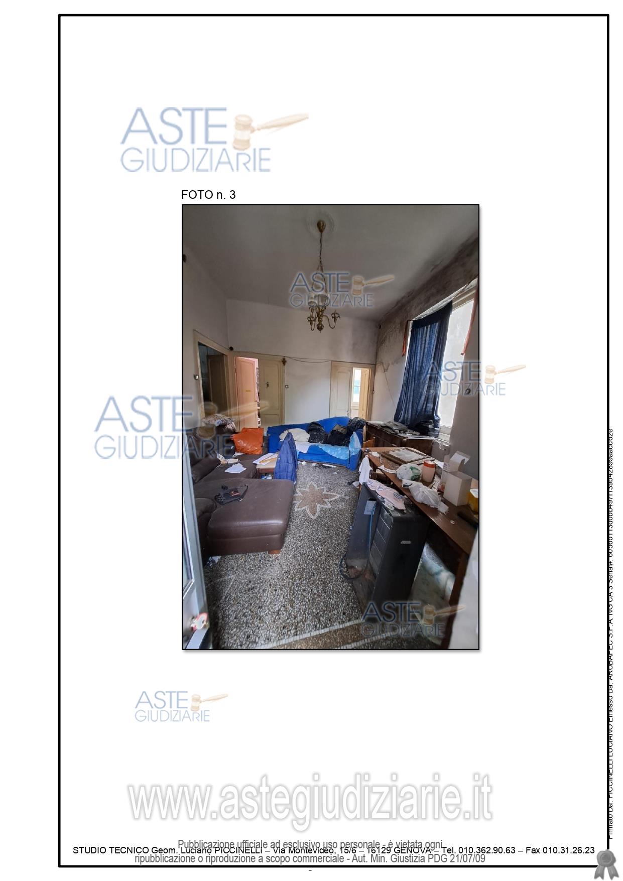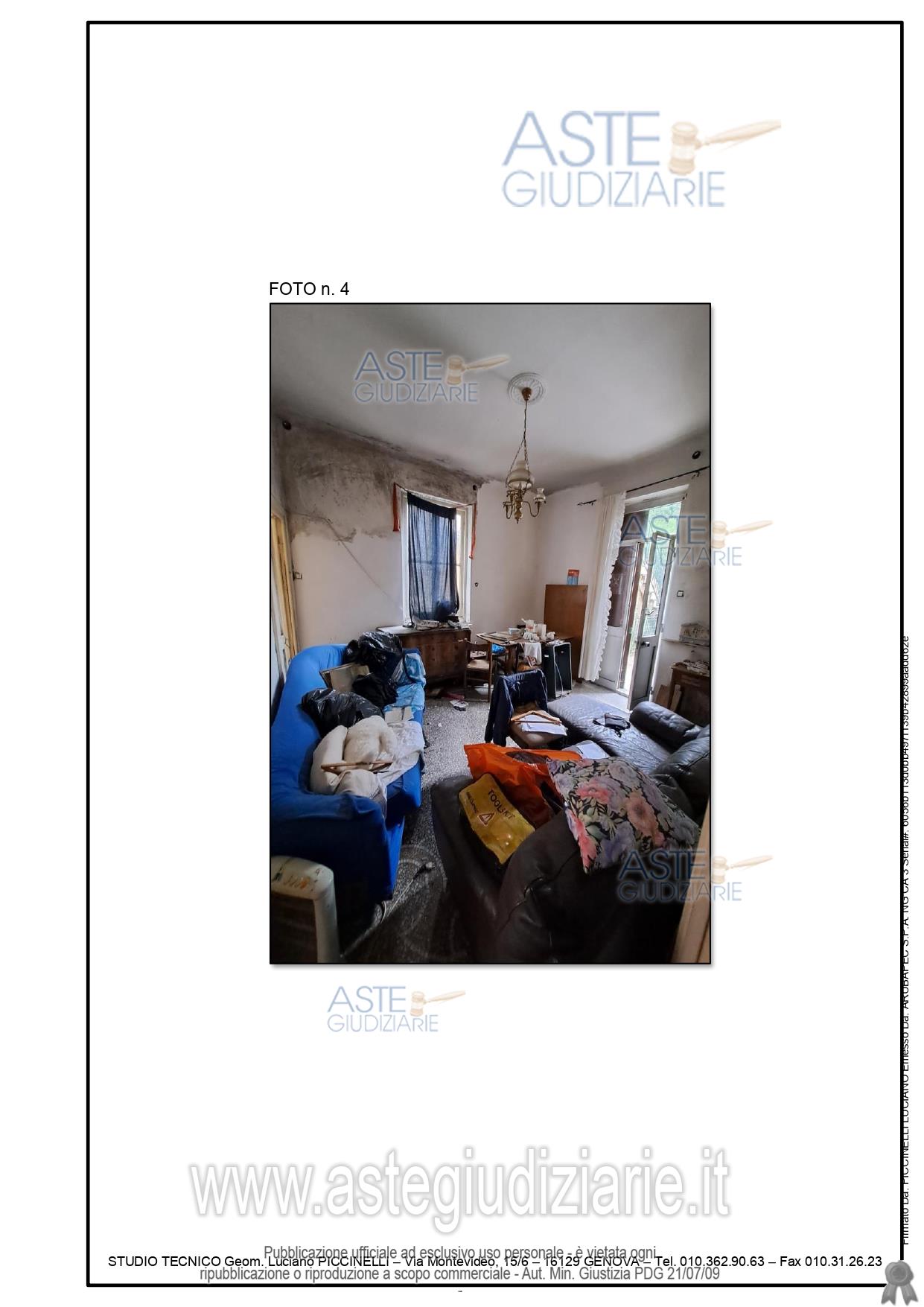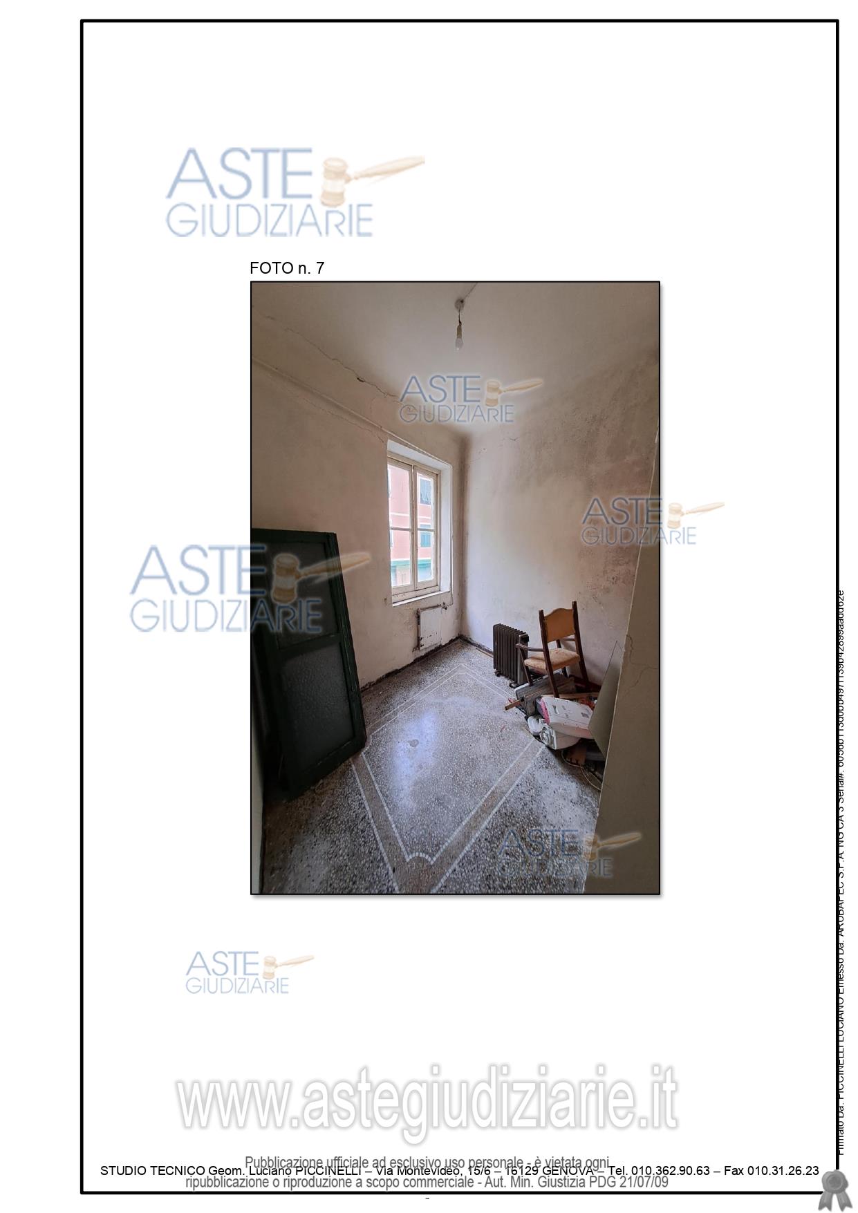 Vendita all'asta Senza incanto, con gara telematica sincrona mista - LOTTO UNICO: Immobile ubicato in Mignanego (GE) composto da quattro vani (ingresso/soggiorno e n. 3 camere oltre a cucina e wc. Per maggiori dettagli si rimanda alla perizia estimativa allegata. Prezzo base € 13.125,00 (offerta minima € 10.000,00). Data vendita 28/11/2025 ore 14:00. Professionista delegato alla vendita Dott. Angela Alessio - Email "angelaalessio.ge@gmail.com"; Cell. 3488087521. Custode Giudiziario Sovemo Srl - Email "immobiliare@sovemo.com"; Tel. 0105299253. Rif. Tribunale di Genova - Espropriazione immobiliare (cartabia) n. 246/2024