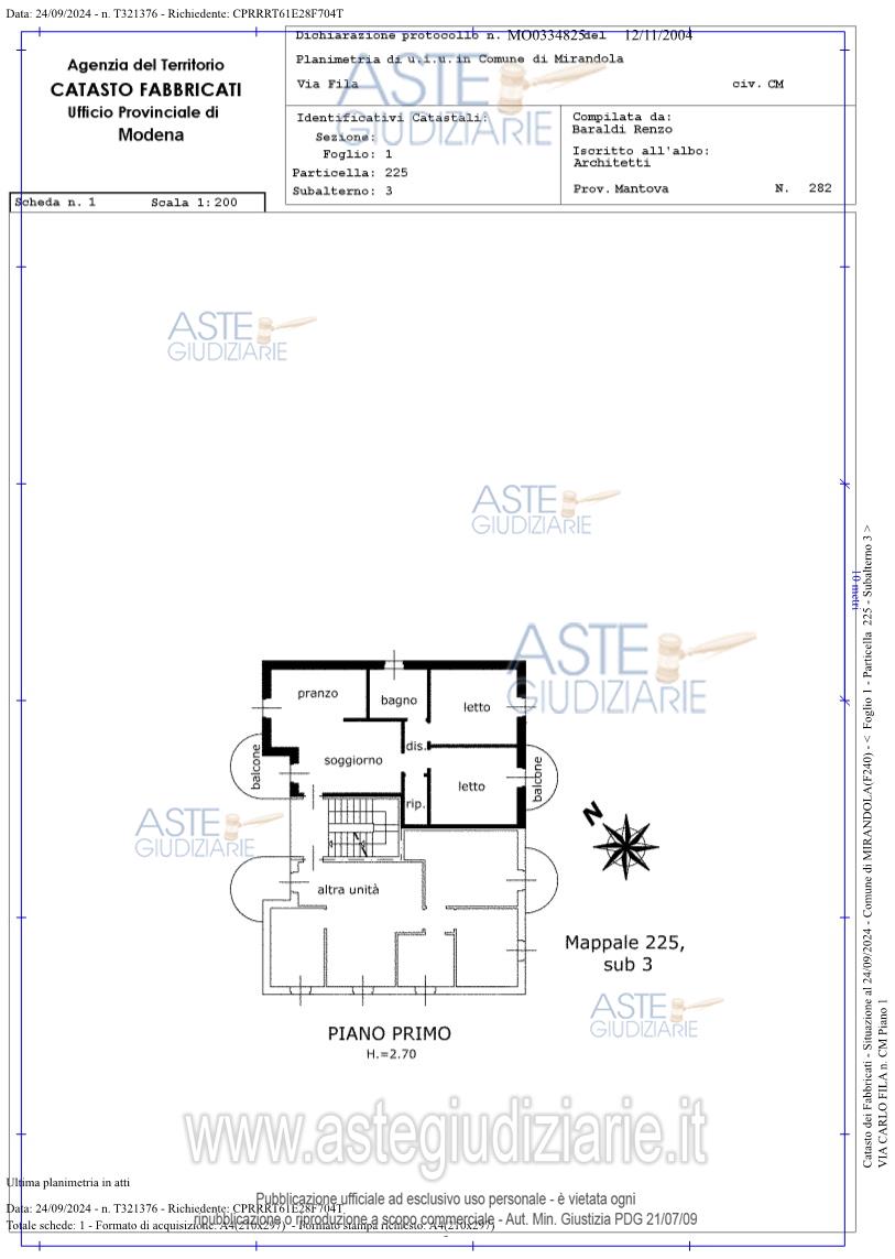 Vendita all'asta Senza incanto, con gara telematica asincrona - LOTTO UNICO: - Appartamento di tre locali oltre servizi ubicato al primo piano (secondo fuori terra) in palazzina di 4 unità Mirandola (MO) - via Carlo Fila 34 B- - Garage ubicato a Mirandola (MO) - via Carlo Fila 34 BAppartamento al piano primo in edificio condominiale di recente edificazione composto da soggiorno - cucina con affaccio su terrazzo, disimpegno notte, ripostiglio, bagno, camera da letto con balcone, altra camera da letto. Con garage. Prezzo base € 78.000,00 (offerta minima € 58.500,00). Data inizio operazioni di vendita: 18/11/2025 ore 12:00. Professionista delegato alla vendita Avv. Angela Tedeschini - Email "AVV.TEDESCHINI@GMAIL.COM"; Cell. 3341731926. Custode Giudiziario Alex Manelli - Email "visiteimmobili@ivgmodena.it"; Tel. 059847301. Rif. Tribunale di Modena - Espropriazione immobiliare (cartabia) n. 295/2023