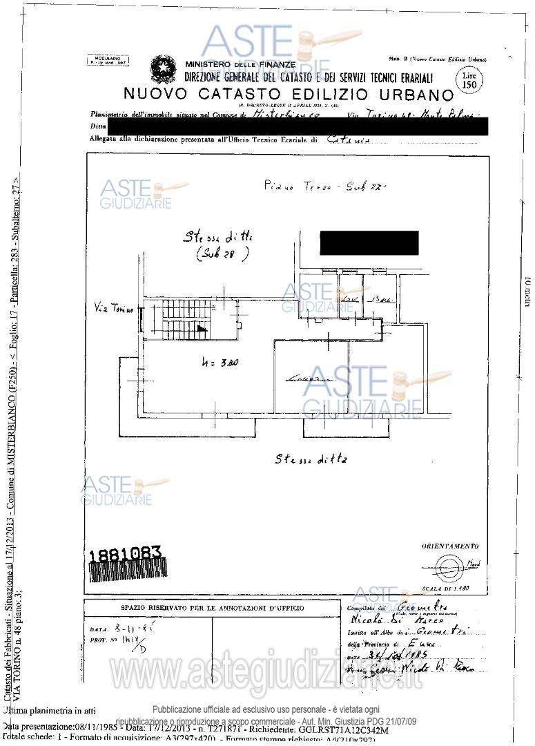 Vendita all'asta Senza incanto - LOTTO 68: Intera proprietà di appartamento sito in Misterbianco (CT), Via Torino n. 48, posto al piano terzo; censito nel N.C.E.U. di detto Comune al Foglio 17, Particella 283, Sub. 27, Cat. A/2, classe 6, consistenza vani 5, r.c. € 426,08. Prezzo base € 40.500,00 (offerta minima € 30.375,00). Data vendita 27/11/2025 ore 10:30. Professionista delegato alla vendita Avv. Sergio Finocchiaro - Email "visite@aavg.it"; Tel. 0952163386. Rif. Tribunale di Catania - Contenzioso civile n. 15087/2020