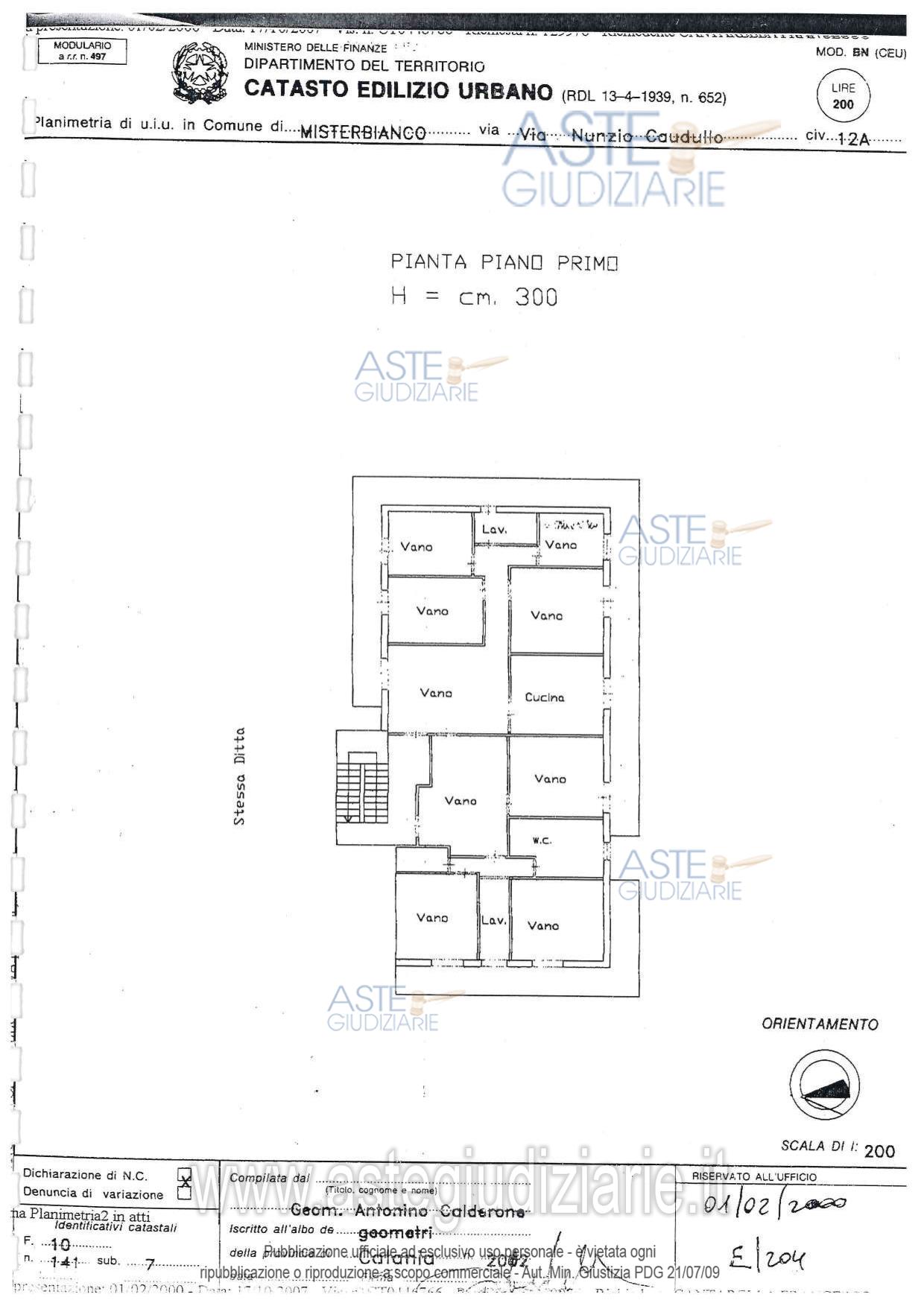 Vendita all'asta Senza incanto, con gara telematica sincrona mista - LOTTO 2: Unità immobiliare con destinazione d’uso abitazione, di fatto irregolarmente frazionata in due distinte porzioni autonomamente abitabili, al piano primo di un edificio condominiale ubicato ai civici 12-12/A della Via Nunzio Caudullo presso il Comune di Misterbianco. Prezzo base € 113.200,00 (offerta minima € 84.900,00). Data vendita 02/07/2026 ore 16:00. Professionista delegato alla vendita: Avv. Sergio Finocchiaro - Email "visite@aavg.it"; Tel. 095/2163386.