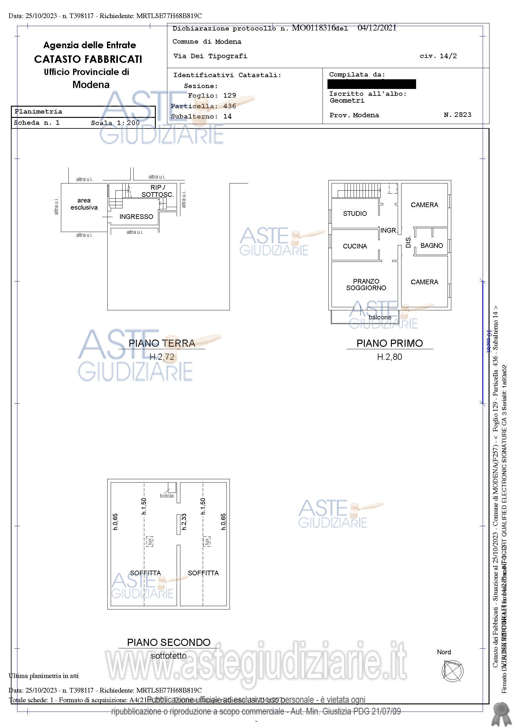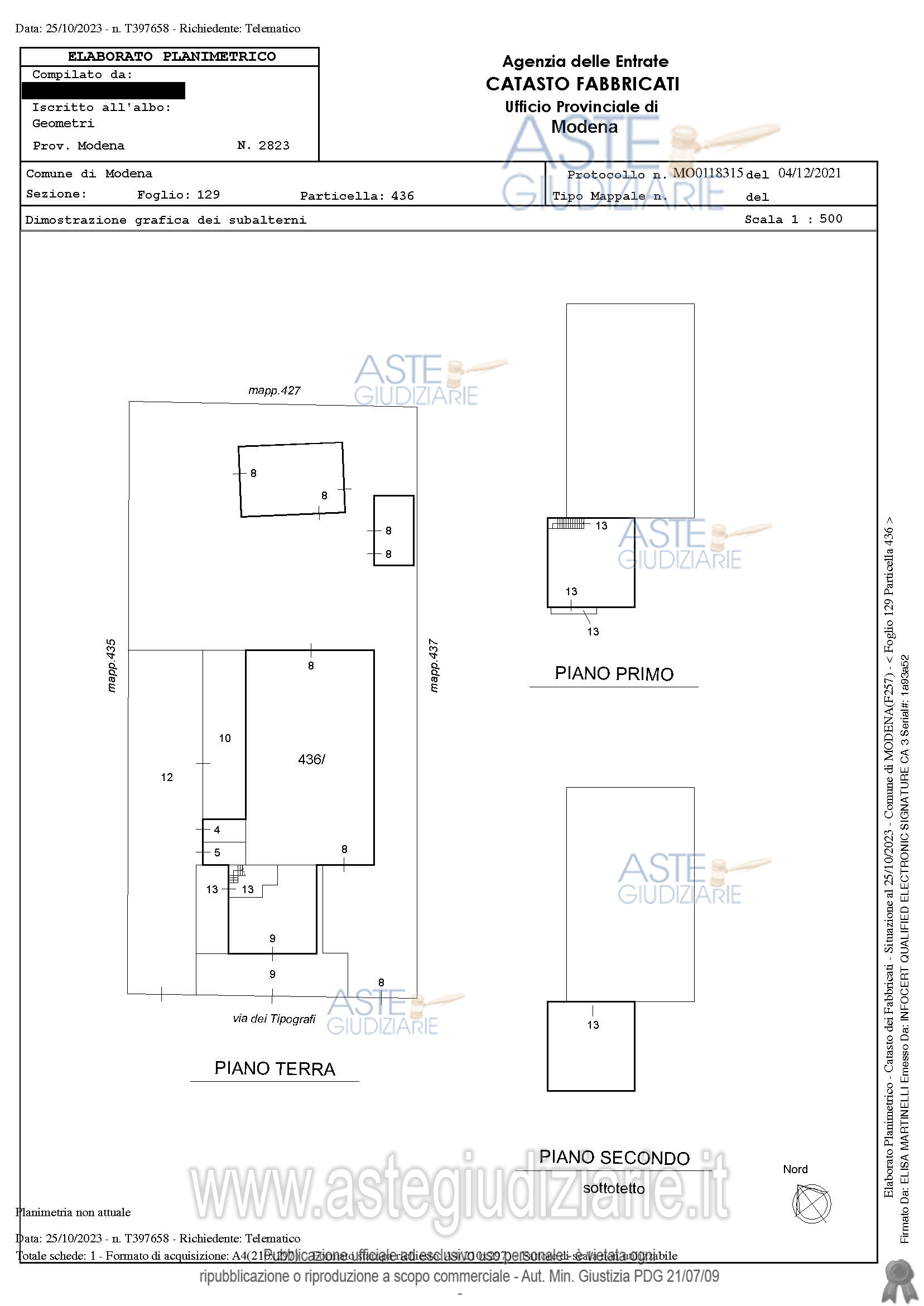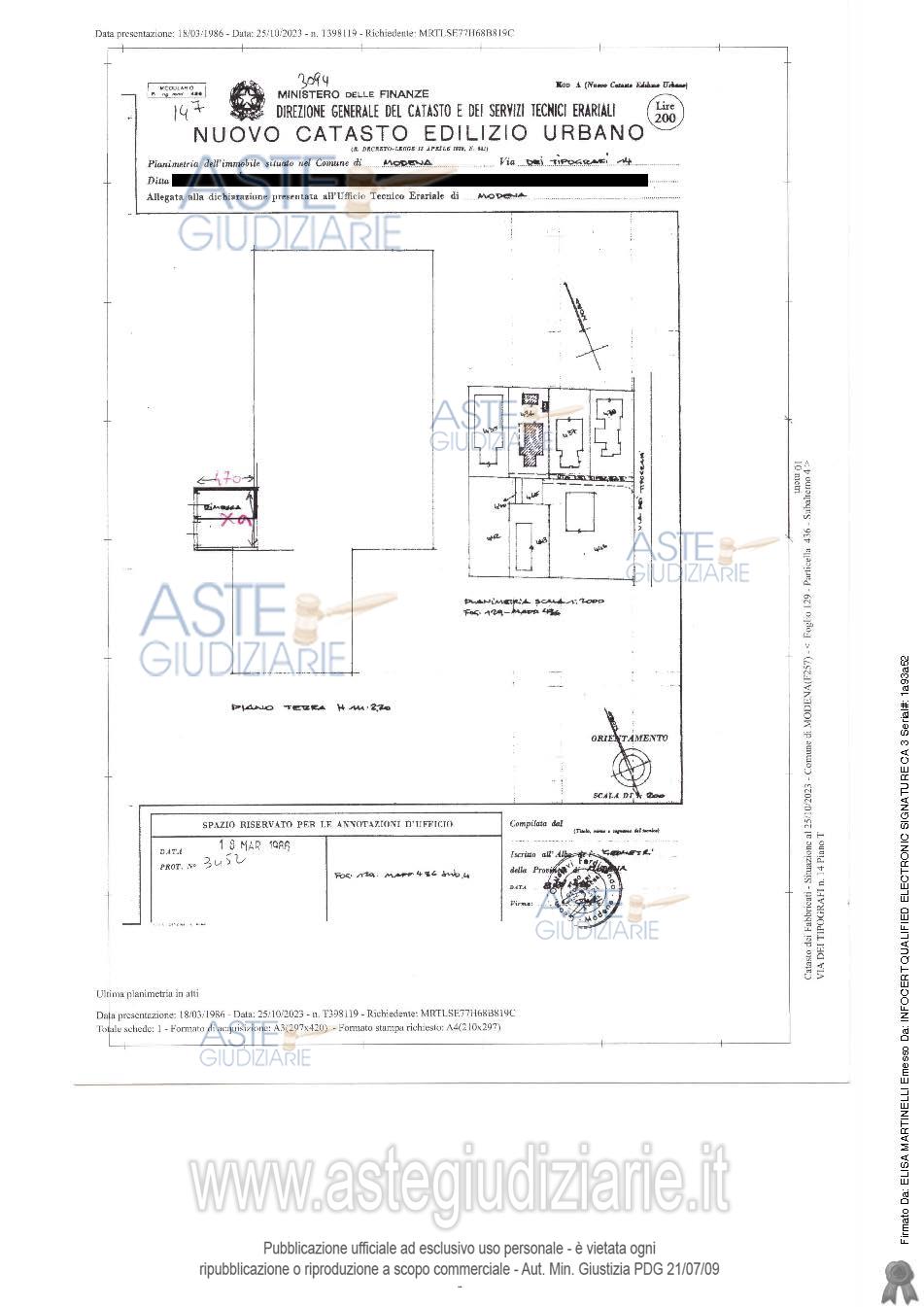 Vendita all'asta Senza incanto, con gara telematica asincrona - LOTTO UNICO:  Piena proprietà di unità abitativa (ingresso al piano terra, appartamento al piano primo e piano sotto tetto) con area cortiliva antistante l’ingresso (area urbana) garage e parcheggio auto coperto, aperto sui lati. Il lotto è sito in Via dei Tipografi n.14/2 a Modena. Prezzo base € 197.000,00 (offerta minima € 147.750,00). Data inizio operazioni di vendita: 04/11/2025 ore 12:30. Professionista delegato alla vendita Avv. Federica Salvioli - Email "f.salvioli@studiolegalelss.it"; Tel. 059221918. Custode Giudiziario  Alex Manelli - Email "visiteimmobili@ivgmodena.it"; Tel. 059847301.  Rif. Tribunale di Modena - Esecuzione immobiliare post legge 80 n. 198/2022