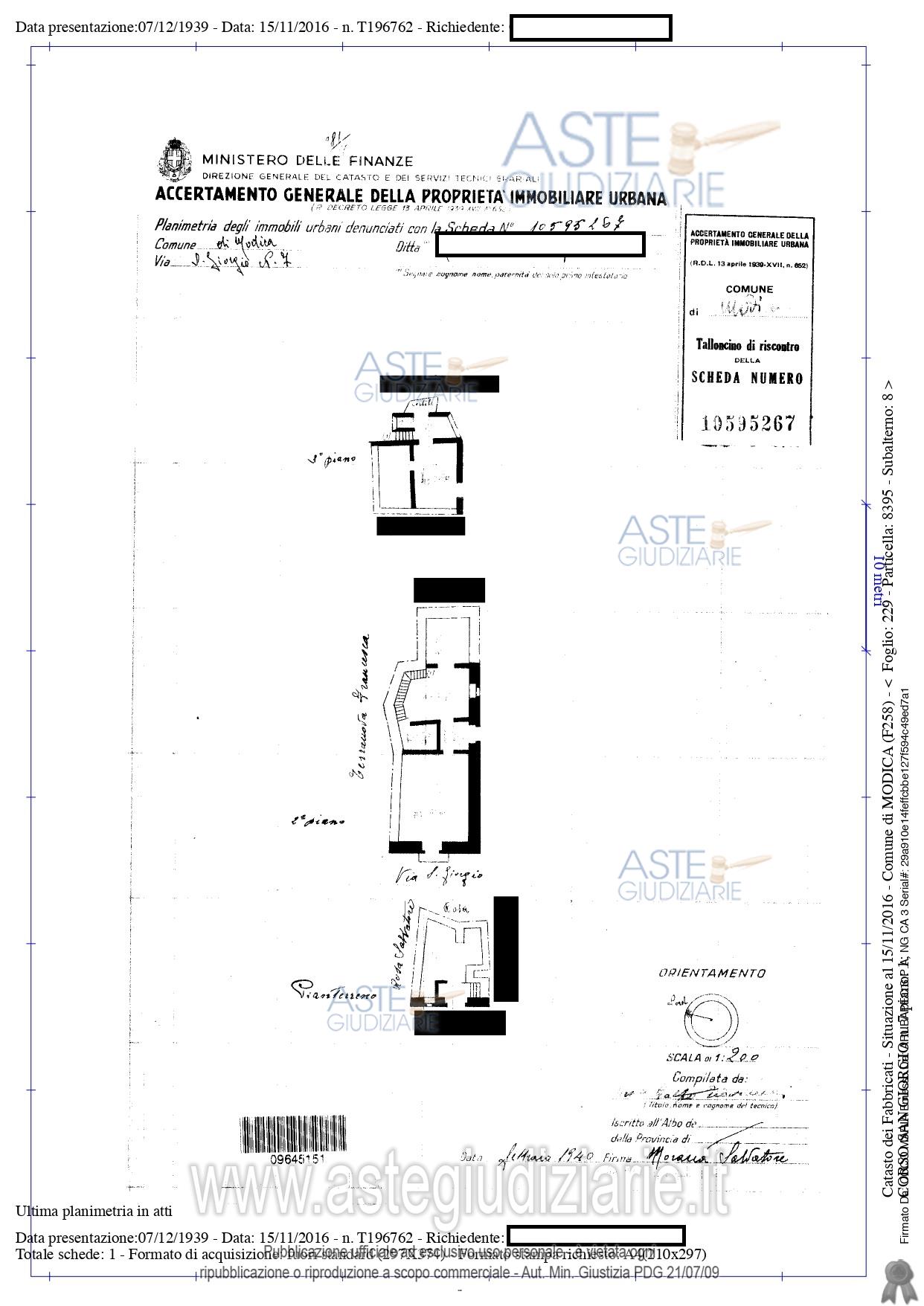Vendita in attesa dell'emissione del nuovo bando d'asta. LOTTO UNICO: Piena proprieta` di immobile ad uso per civile abitazione sito in Modica (RG), Corso San Giorgio n. 7, disposto su due livelli fuori terra, in palazzo con accesso dal Corso San Giorgio, con spazio comune interno, costituito al piano secondo da ingresso, cucina, soggiorno, bagno e ripostiglio e, al piano terzo, da due camere da letto, un disimpegno e un ripostiglio. Censito al NCEU del Comune di Modica al Foglio 229, mappale 8395 Sub 8, Cat. A4, 7 vani, Sup. cat. 160 mq, R.C. € 289,22,. Ultimo prezzo base € 22.782,00 (offerta minima € 17.086,00). Giudice Carlo Di Cataldo. Professionista delegato alla vendita Avv. Serafino Alfano - Email "avv.serafinoalfano@gmail.com"; Cell. 3928488519. Custode Giudiziario Serafino Alfano - Email "avv.serafinoalfano@gmail.com". Rif. Tribunale di Ragusa - Contenzioso civile n. 112/2020