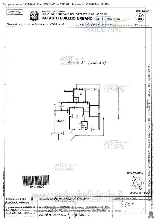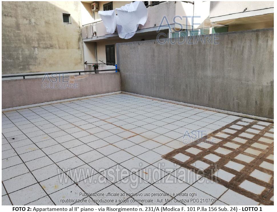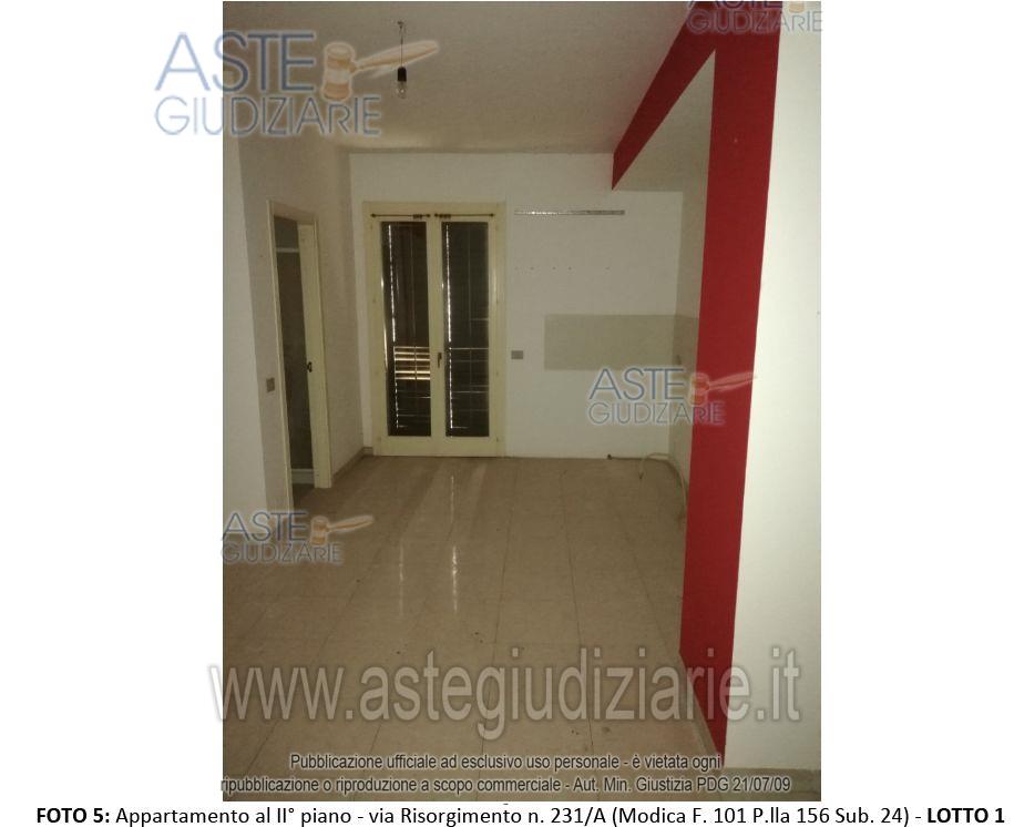 Vendita all'asta Senza incanto, con gara telematica asincrona - LOTTO 1: Apartment located on the second floor of Via Risorgimento No. 231/A. . Prezzo base € 87.840,00 (offerta minima € 87.840,00). Data inizio operazioni di vendita: 06/05/2026 ore 12:00. Giudice Dott. Giovanni Giampiccolo. Curatore Dott. Giuseppe Buscema. Rif. Tribunale di Ragusa ex Tribunale di Modica - Fallimentare n. 1/2010