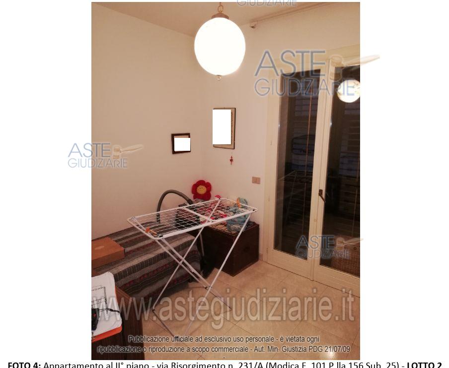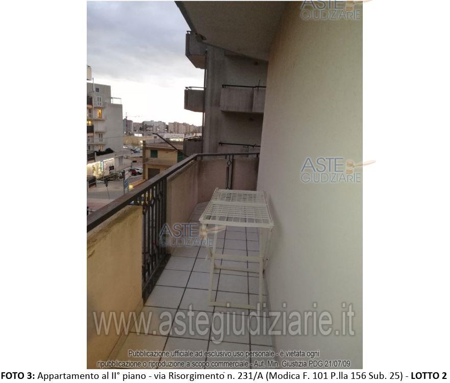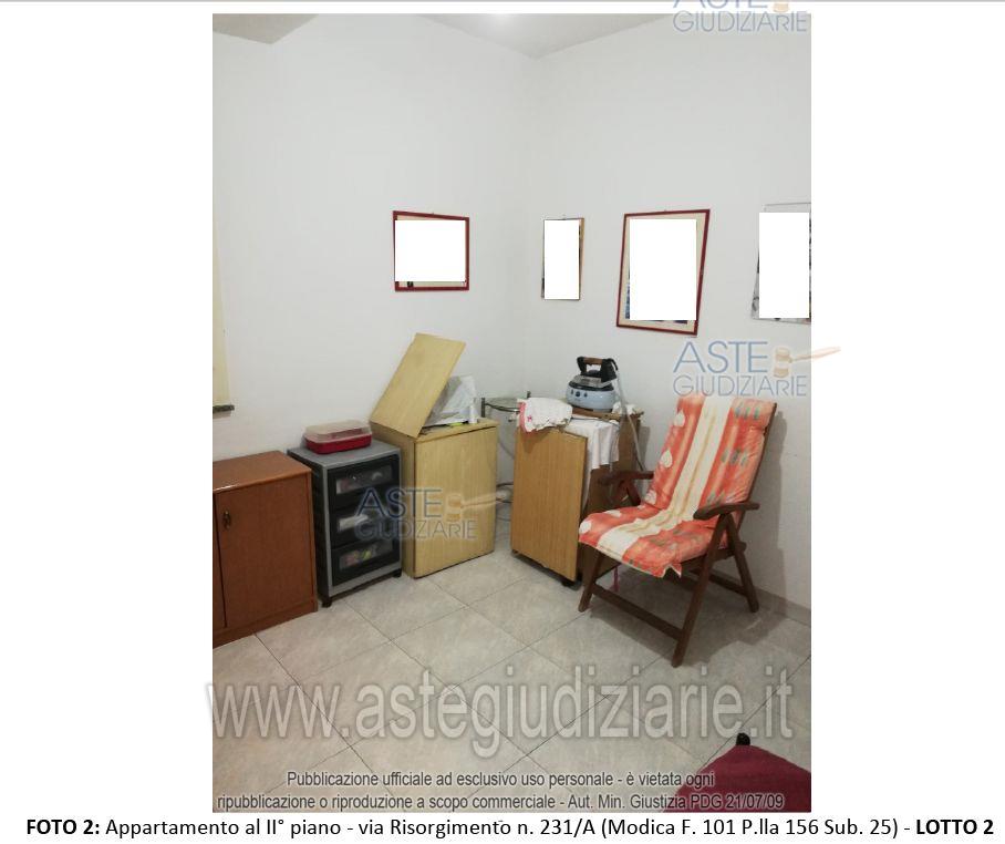 Vendita all'asta Senza incanto, con gara telematica asincrona - LOTTO 2: Quota di 1/12 della piena ed intera proprietà di appartamento posto al secondo piano di Via Risorgimento n. 231/A, Modica. Prezzo base € 3.000,00 (offerta minima € 3.000,00). Data inizio operazioni di vendita: 14/01/2026 ore 12:00. Giudice Dott. Giovanni Giampiccolo. Curatore Dott. Giuseppe Buscema - Tel. 0932 762928. Rif. Tribunale di Ragusa ex Tribunale di Modica - Fallimentare n. 1/2010