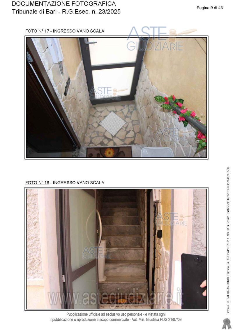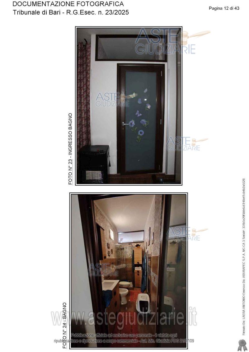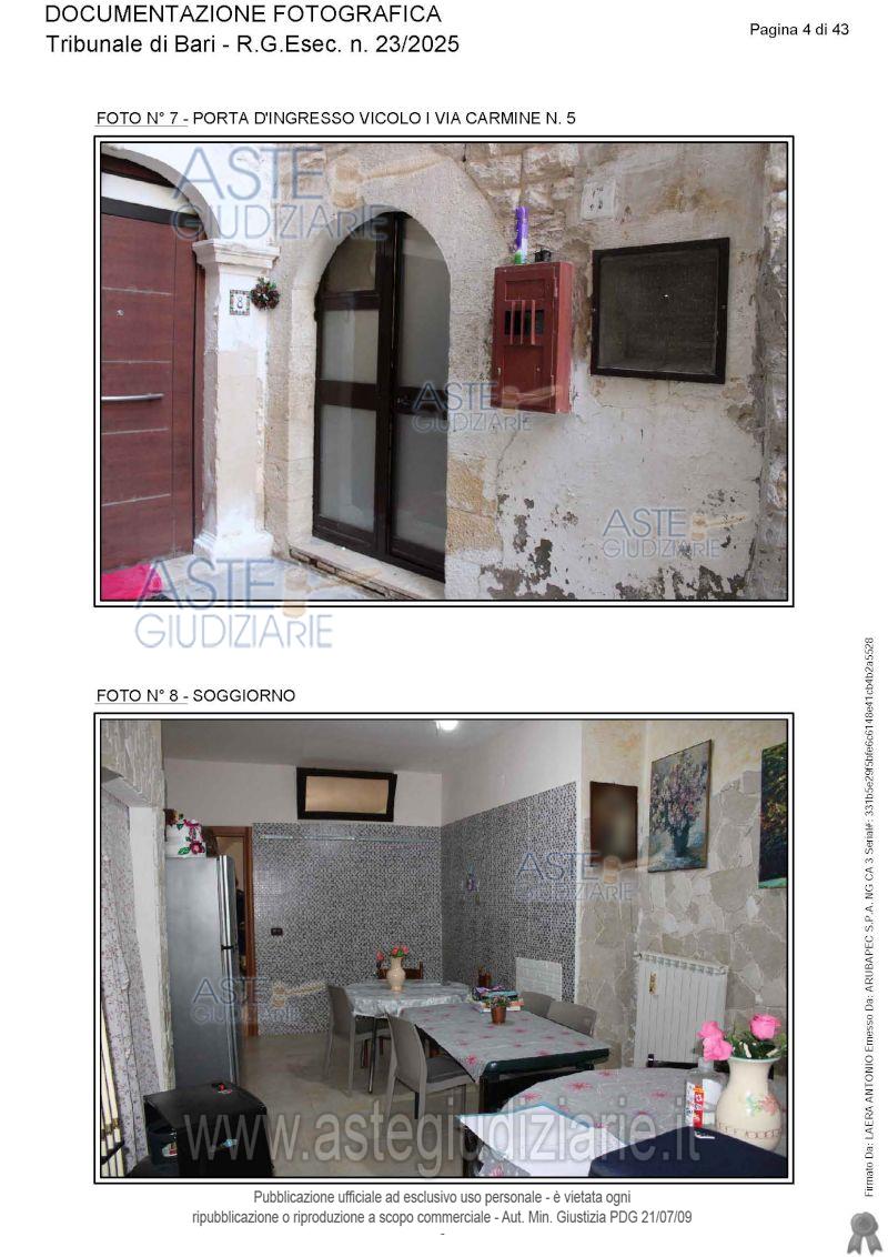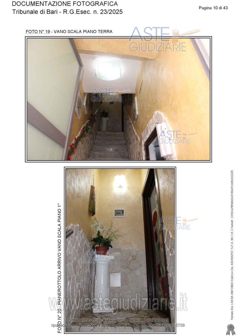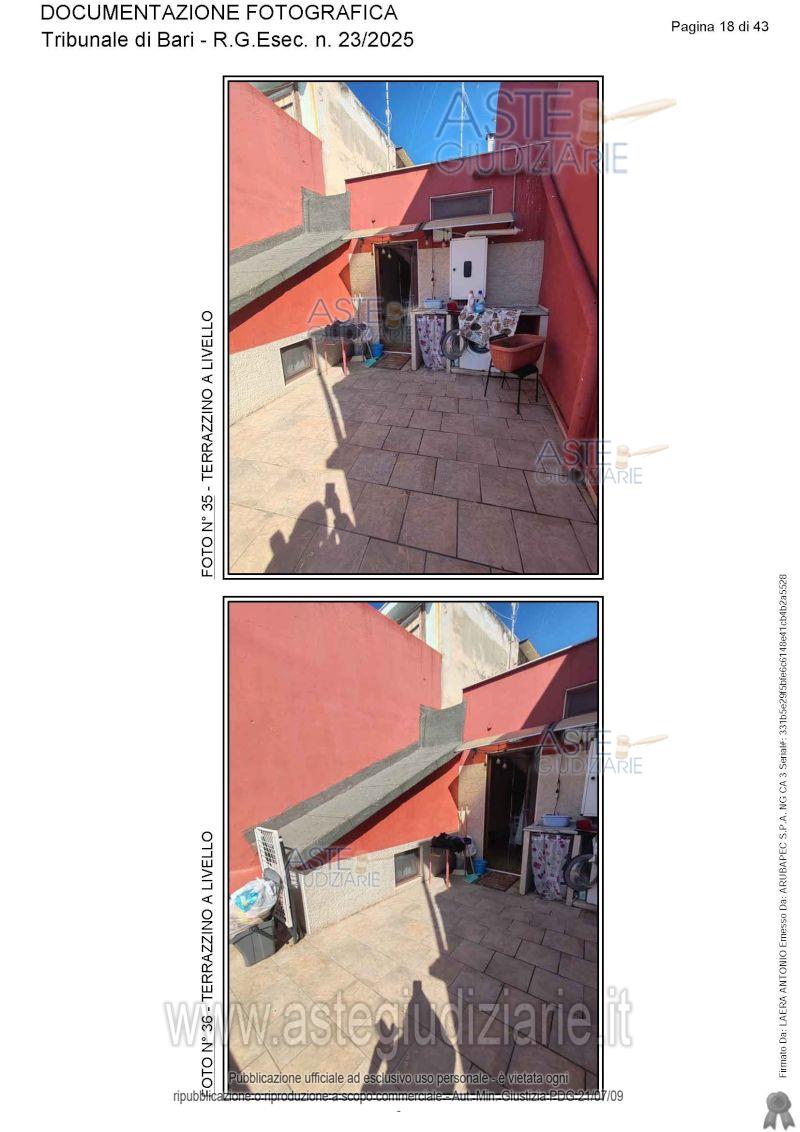 Vendita all'asta Senza incanto, con gara telematica asincrona - LOTTO UNICO: Appartamento ai piani terra, primo e secondo. Prezzo base € 115.565,17 (offerta minima € 86.673,88). Data inizio operazioni di vendita: 05/06/2026 ore 15:30. Giudice Antonio Ruffino. Professionista delegato alla vendita Avv. Vito Luigi Cofano - Email "vitoluigicofano@yahoo.it"; Cell. 3382476780. Custode Giudiziario Avv. Vito Luigi Cofano - Email "vitoluigicofano@yahoo.it"; Cell. 3382476780. Rif. Tribunale di Bari - Espropriazione immobiliare (cartabia) n. 23/2025