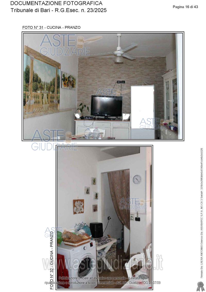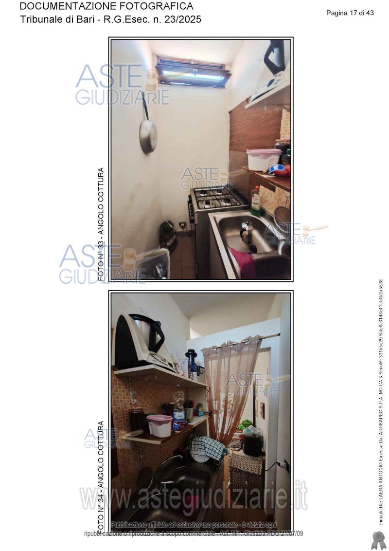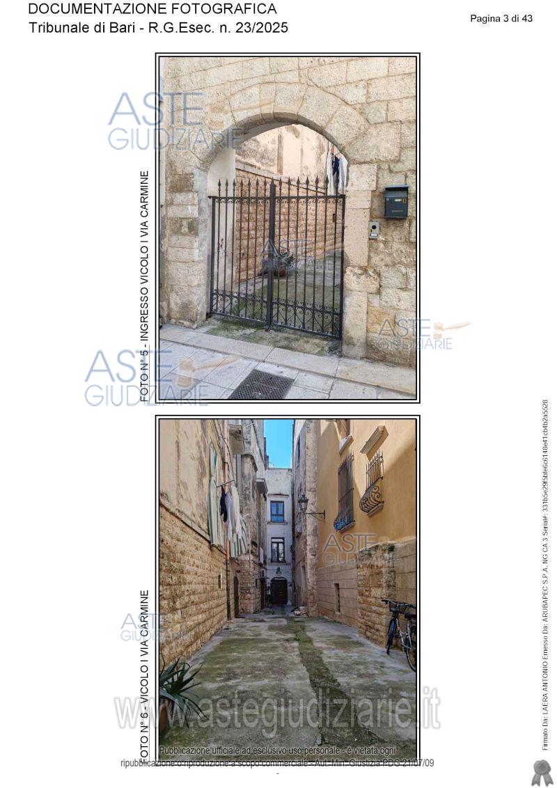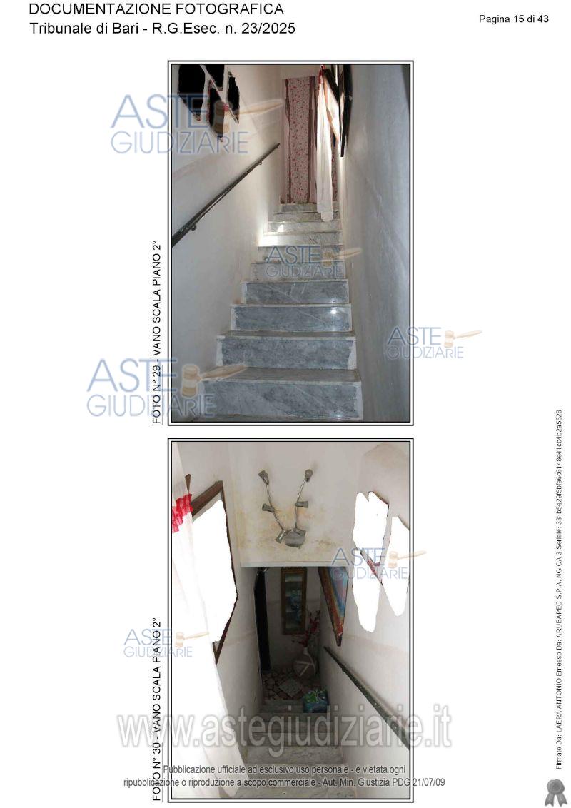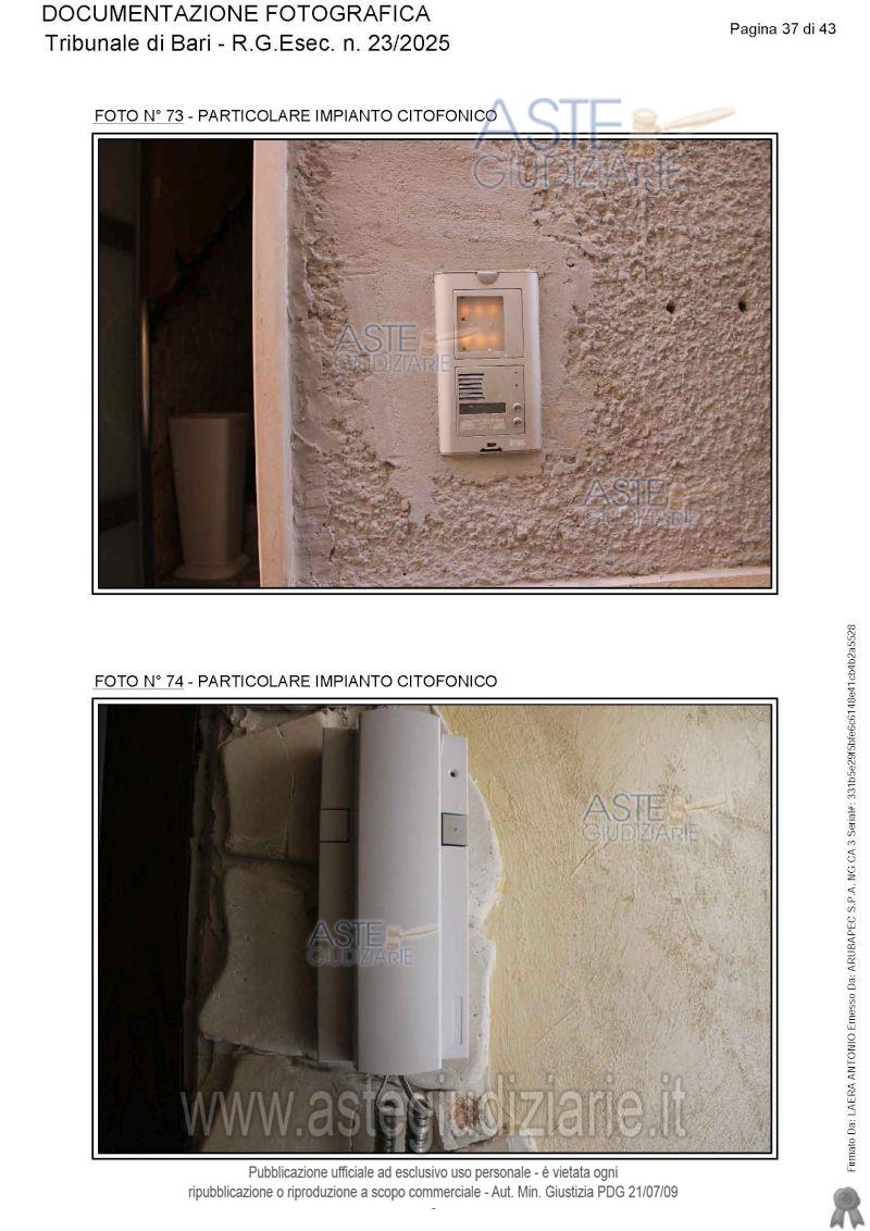 Vendita all'asta Senza incanto, con gara telematica asincrona - LOTTO UNICO: Appartamento ai piani terra, primo e secondo. Prezzo base € 115.565,17 (offerta minima € 86.673,88). Data inizio operazioni di vendita: 05/06/2026 ore 15:30. Giudice Antonio Ruffino. Professionista delegato alla vendita Avv. Vito Luigi Cofano - Email "vitoluigicofano@yahoo.it"; Cell. 3382476780. Custode Giudiziario Avv. Vito Luigi Cofano - Email "vitoluigicofano@yahoo.it"; Cell. 3382476780. Rif. Tribunale di Bari - Espropriazione immobiliare (cartabia) n. 23/2025