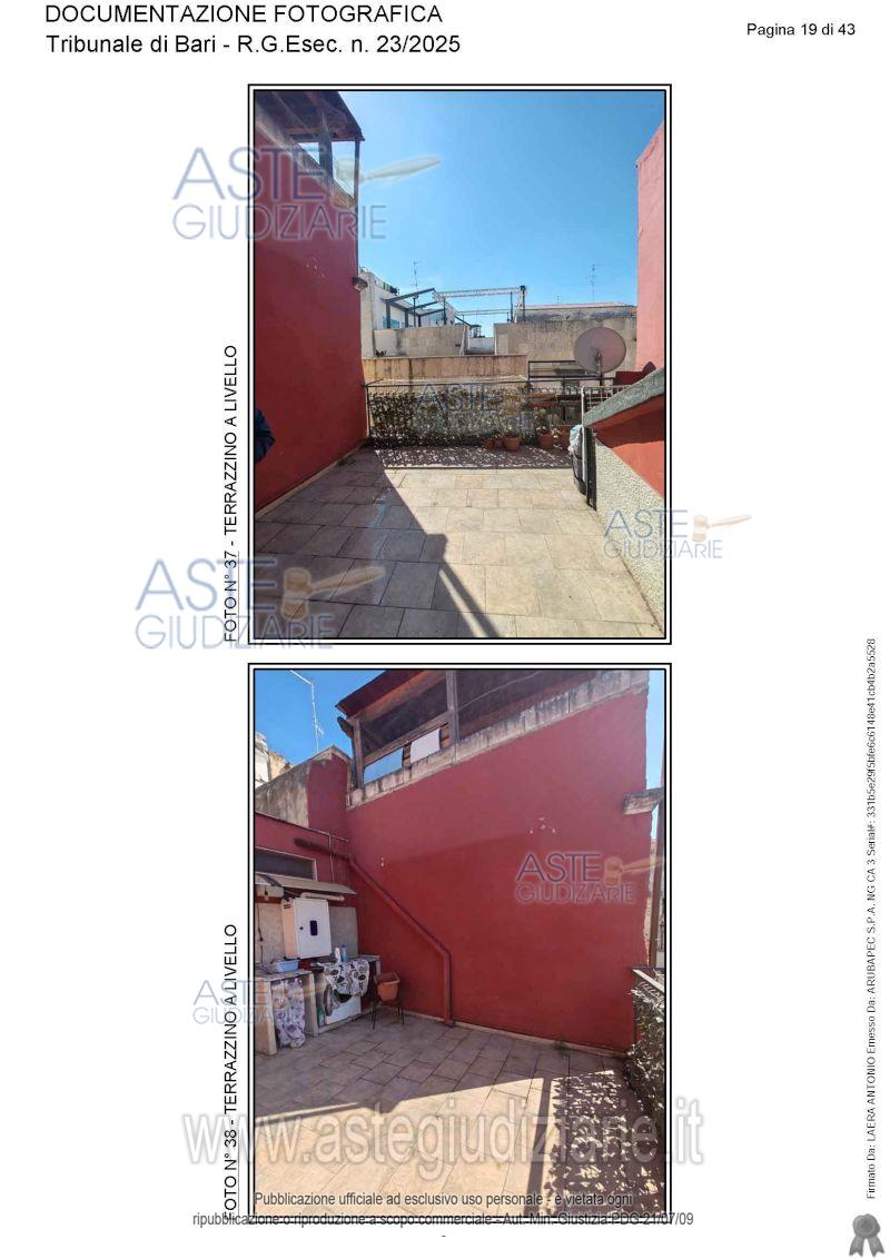 Vendita all'asta Senza incanto, con gara telematica asincrona - LOTTO UNICO: Appartamento ai piani terra, primo e secondo. Prezzo base € 154.086,90 (offerta minima € 115.565,17). Data inizio operazioni di vendita: 05/02/2026 ore 15:30. Giudice Dott. Antonio Ruffino. Professionista delegato alla vendita Avv. Vito Luigi Cofano - Email "vitoluigicofano@yahoo.it"; Cell. 3382476780. Custode Giudiziario Avv. Vito Luigi Cofano - Email "vitoluigicofano@yahoo.it"; Cell. 3382476780. Rif. Tribunale di Bari - Espropriazione immobiliare (cartabia) n. 23/2025
