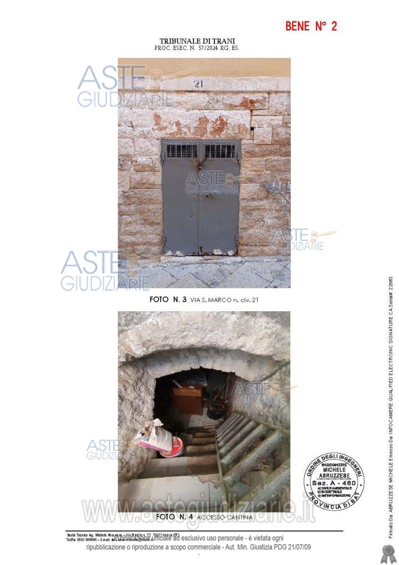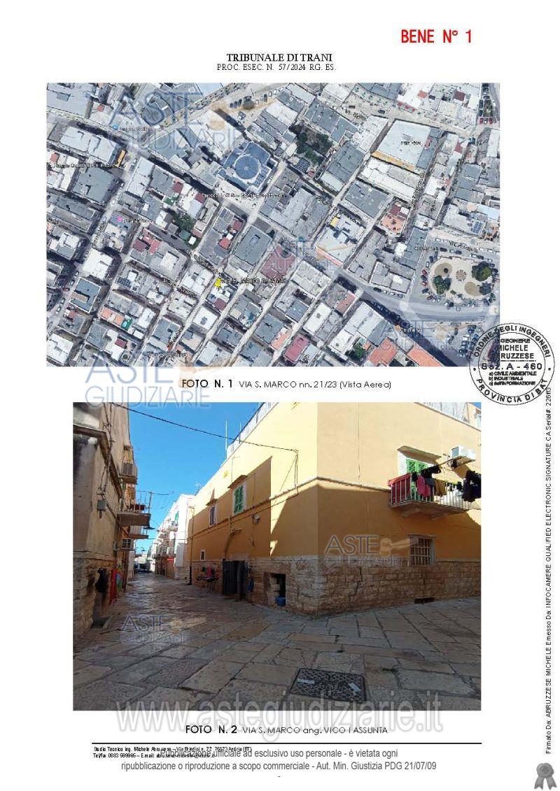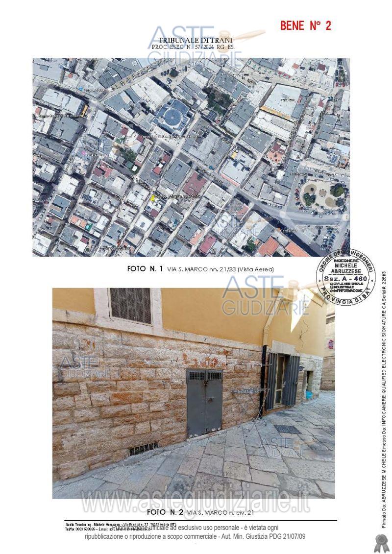 Vendita all'asta Senza incanto, con gara telematica sincrona - LOTTO UNICO: Bene 1:Monolocale ad uso abitativo all'interno del quale risultano ubicati gli accessori (bagnetto e angolo cucina). Immobile ubicato in zona storica della città di Molfetta, a due passi dalla "Villa Comunale", dal Museo Diocesano, dal Lungomare e dal Porto Turistico. Bene 2: Cantina, ad uso deposito, ubicata in zona storica della città di Molfetta, Zona A/2 del PRG del Comune di Molfetta, identificata come zona urbana di significato storico comprendente fabbricati ottocenteschi e principio del '900. Prezzo base € 16.830,00 (offerta minima € 12.622,50). Data vendita 09/01/2026 ore 09:30. Giudice Dott. Francesca Pastore. Professionista delegato alla vendita Avv. Francesco Michele Barone - Email "avv.francescobarone@gmail.com". Custode Giudiziario Avv. Francesco Michele Barone - Email "avv.francescobarone@gmail.com". Rif. Tribunale di Trani - Esecuzione immobiliare post legge 80 n. 57/2024