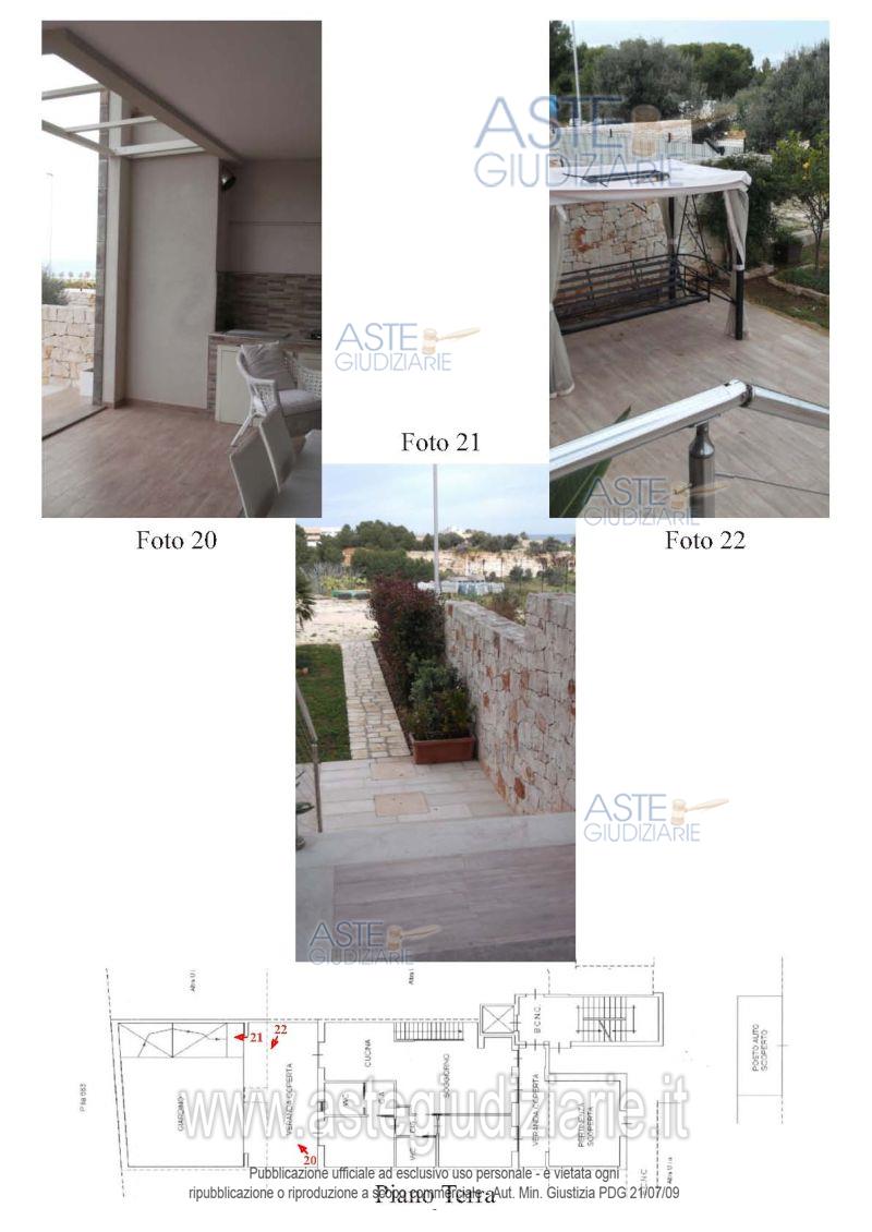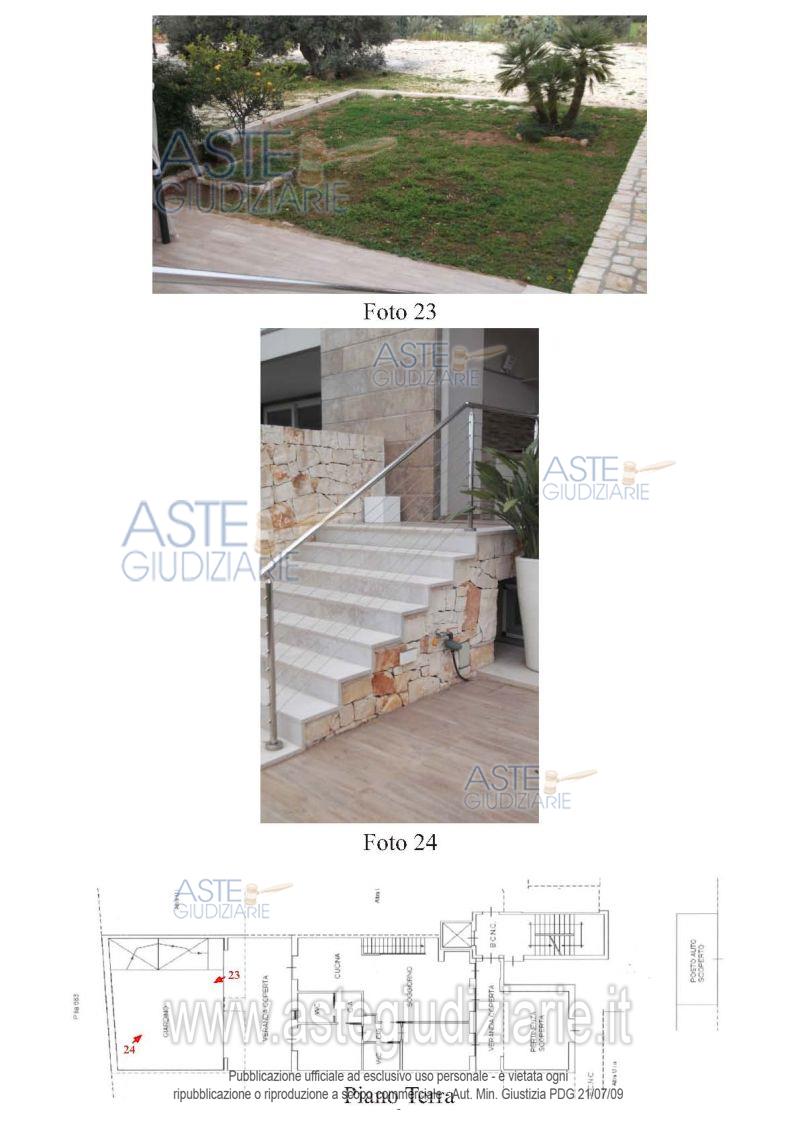 Vendita all'asta Senza incanto, con gara telematica asincrona - LOTTO UNICO: Casa di abitazione su due livelli composta, al piano terra, da ingresso-soggiorno con angolo cottura, disimpegno, due vani, doppi servizi, annesse verande e aree scoperte di pertinenza esclusiva; al piano interrato da cantinola con disimpegno, lavanderia e bagno; oltre garage, posto auto scoperto, zona di terreno ricoperta di ghiaia e retroastante giardino di pertinenza. Prezzo base € 366.525,00 (offerta minima € 274.893,75). Data inizio operazioni di vendita: 21/01/2026 ore 15:30. Giudice Dott. Marisa Attollino. Professionista delegato alla vendita Dott. Giovanni Carnevale - Email "carnevale_giovanni@libero.it". Custode Giudiziario Dott. Giovanni Carnevale - Email "carnevale_giovanni@libero.it". Rif. Tribunale di Bari - Esecuzione immobiliare post legge 80 n. 388/2022