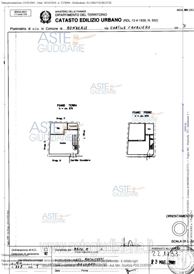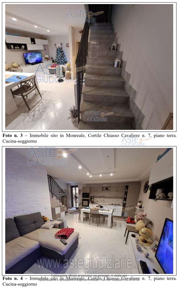 Vendita all'asta Senza incanto, con gara telematica sincrona mista - LOTTO UNICO: 1/1 immobile (appartamento), ubicato in Monreale (PA), Cortile Chiasso Cavaliere n. 7, piano terra, primo piano e lastrico solare/terrazzo accessibile in edificio indipendente e non in condominio. Prezzo base € 39.750,00 (offerta minima € 29.813,00). Data vendita 05/03/2026 ore 10:00. Giudice Dott. Valentina Imperiale. Professionista delegato alla vendita Avv. Maurizio Pizzuto - Email "pizzuto.maurizio@libero.it"; Cell. 3466063944. Custode Giudiziario Avv. Maurizio Pizzuto - Email "pizzuto.maurizio@libero.it"; Cell. 3466063944. Rif. Tribunale di Palermo - Esecuzione immobiliare post legge 80 n. 134/2024