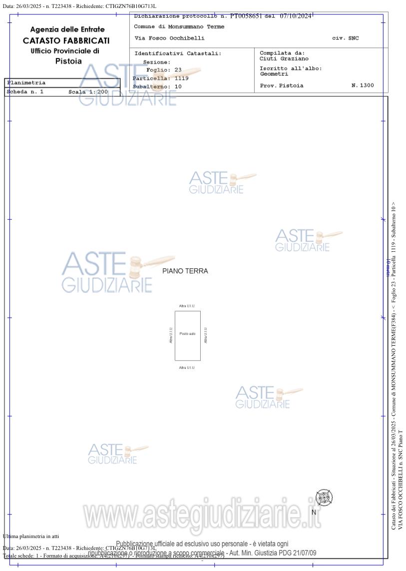 Vendita all'asta Senza incanto, con gara telematica asincrona - LOTTO 4: Porzione di bifamiliare accessibile attraverso strada privata ad uso pubblico. L’abitazione si sviluppa al primo piano, con ingresso indipendente da scala esterna esclusiva ed è composta da soggiorno, cucina, disimpegno, tre camere, bagno e due terrazzi oltre soffitta. L’unità immobiliare è corredata da corte esclusiva e posto auto scoperto. Prezzo base € 191.250,00 (offerta minima € 143.437,50). Data inizio operazioni di vendita: 26/05/2026 ore 16:00. Giudice Sergio Garofalo. Professionista delegato alla vendita Dott. Viviana Elia - Email "vivianaelia@virgilio.it"; Tel. 0573367464. Custode Giudiziario Isveg - Email "prenota.pt@isveg.it". Rif. Tribunale di Pistoia - Fallimentare (nuovo rito) n. 65/2017