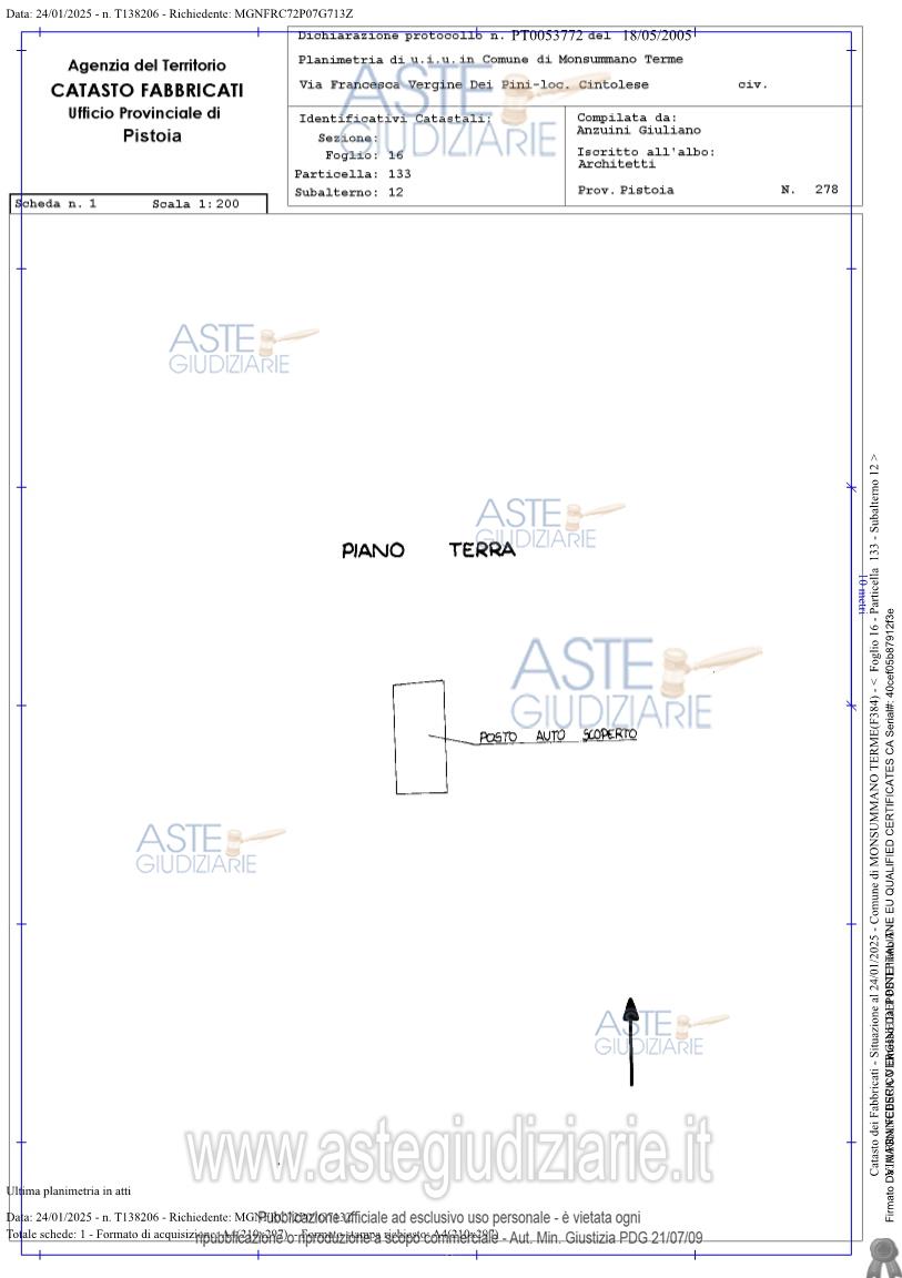 Vendita all'asta Senza incanto, con gara telematica asincrona - LOTTO 2: Appartamento per civile abitazione libero su due/tre lati, posto ai piani secondo e terzo di più ampio fabbricato residenziale condominiale denominato “Palazzo Baldi”. L'appartamento è inoltre corredato di posto auto scoperto esclusivo, ubicato al piano terra con accesso dalla corte comune. Prezzo base € 51.000,00 (offerta minima € 38.000,00). Data inizio operazioni di vendita: 29/04/2026 ore 11:00. Giudice Dott. Sergio Garofalo. Professionista delegato alla vendita Avv. Tommaso Porcu Guidi - Email "tommasoporcuguidi@hotmail.it"; Tel. 0573364564. Custode Giudiziario Isveg - Email "prenota.pt@isveg.it"; Tel. 05733571532. Rif. Tribunale di Pistoia - Espropriazione immobiliare (cartabia) n. 1/2025