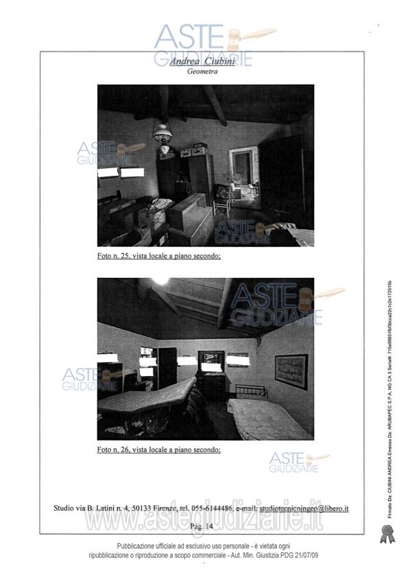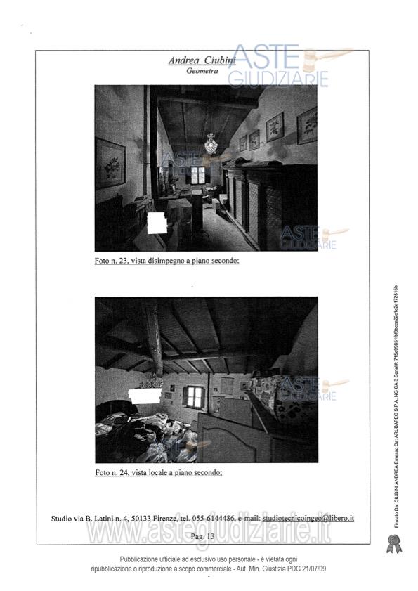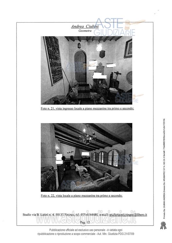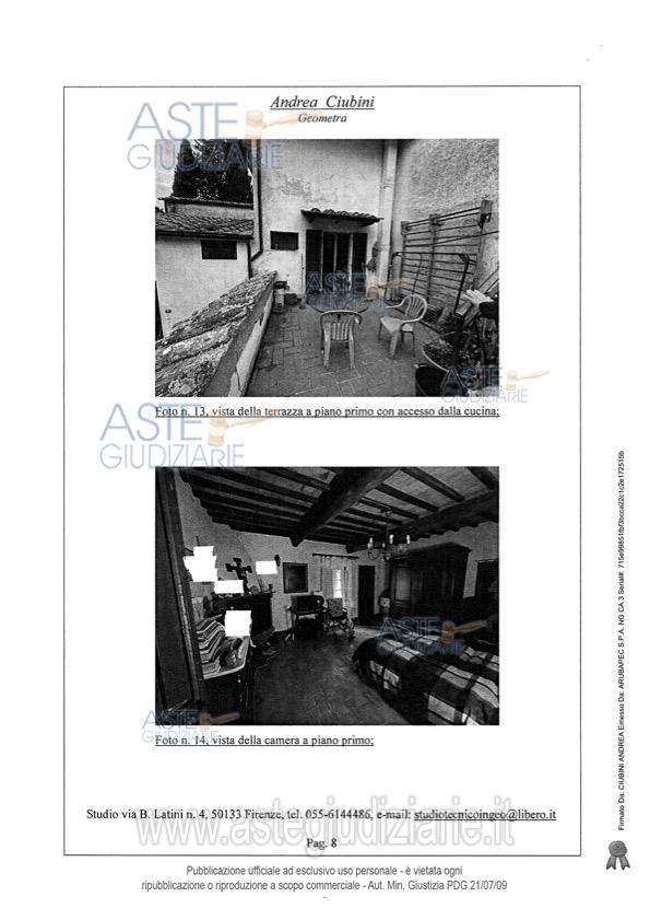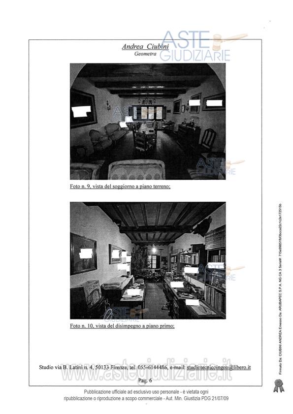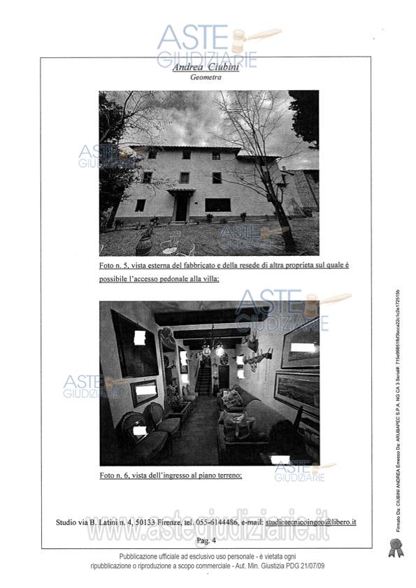 Vendita all'asta Senza incanto, con gara telematica sincrona - LOTTO UNICO: Piena proprietà di porzione di villa, con ingresso da strabello poderale di altra proprietà e successivo resede a comune, e precisamente: A) unità immobiliare adibito ad appartamento per civile abitazione che si sviluppa su cinque piani collegati da scala interna, così composto: al piano interrato da un unico vano cantina; al piano terreno da quattro vani principali e ripostiglio;B) locale ad uso magazzino con accesso attraverso una loggia di pertinenza; C) locale ad uso garage. Prezzo base € 492.000,00 (offerta minima € 369.000,00). Data vendita 11/06/2026 ore 12:00. Giudice Francesca Romana Bisegna. Professionista delegato alla vendita Not. Massimo Palazzo - Email "mpalazzo@notariato.it". Custode Giudiziario Istituto Vendite Giudiziarie Di Firenze - Email "prenota.fi@isveg.it"; Tel. 0552340830. Rif. Tribunale di Firenze - Espropriazione immobiliare (cartabia) n. 128/2023