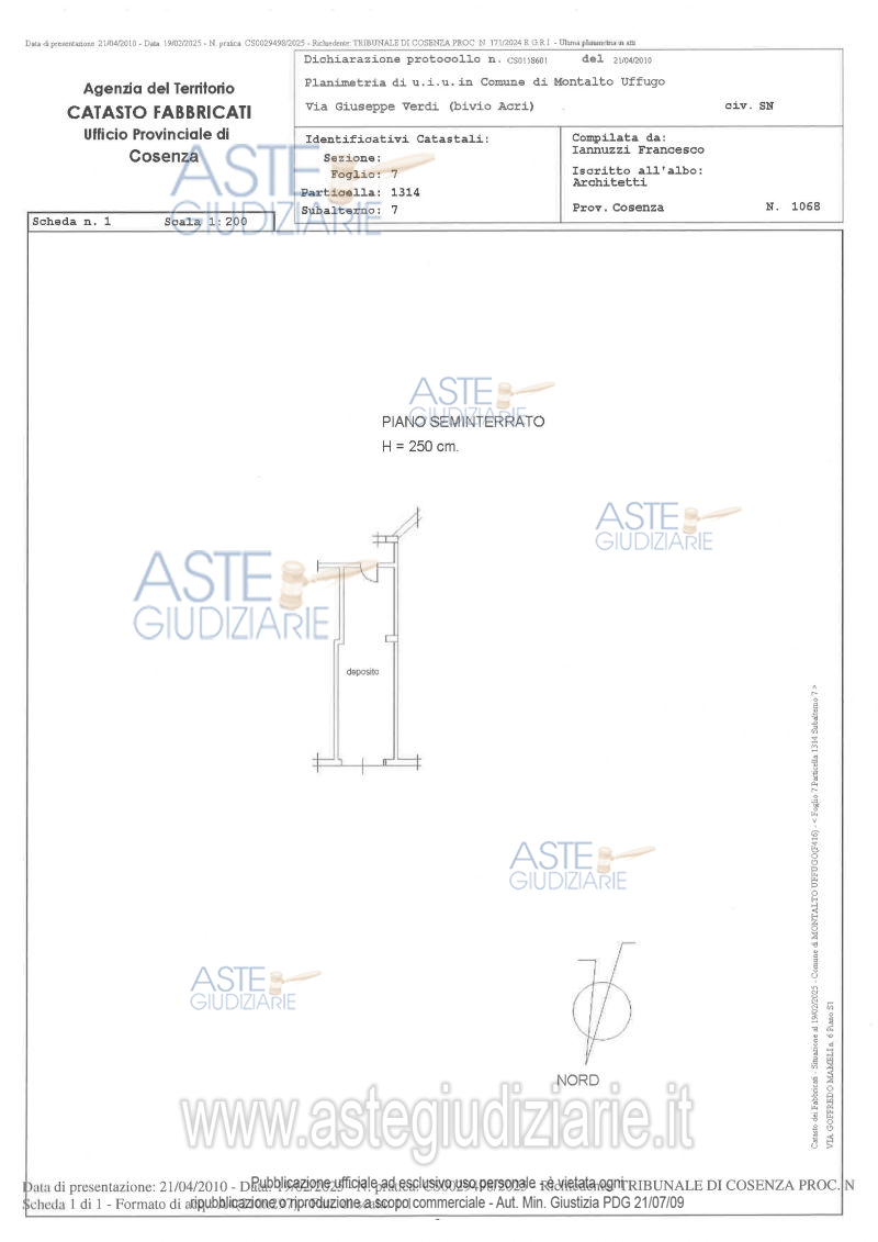 Vendita all'asta Senza incanto, con gara telematica sincrona - LOTTO UNICO: Appartamento al primo piano di 4,5 vani con locale deposito della consistenza di 23 mq. L'immobile risulta attualmente occupato. Prezzo base € 74.773,00 (offerta minima € 56.079,75). Data vendita 02/04/2026 ore 09:30. Giudice Dott. Assunta Gioia. Professionista delegato alla vendita Dott. Francesco De Luca - Email "studio.delucaf@gmail.com"; Tel. 3203114638. Custode Giudiziario Dott. Francesco De Luca - Email "studio.delucaf@gmail.com"; Tel. 3203114638. Rif. Tribunale di Cosenza - Espropriazione immobiliare (cartabia) n. 171/2024