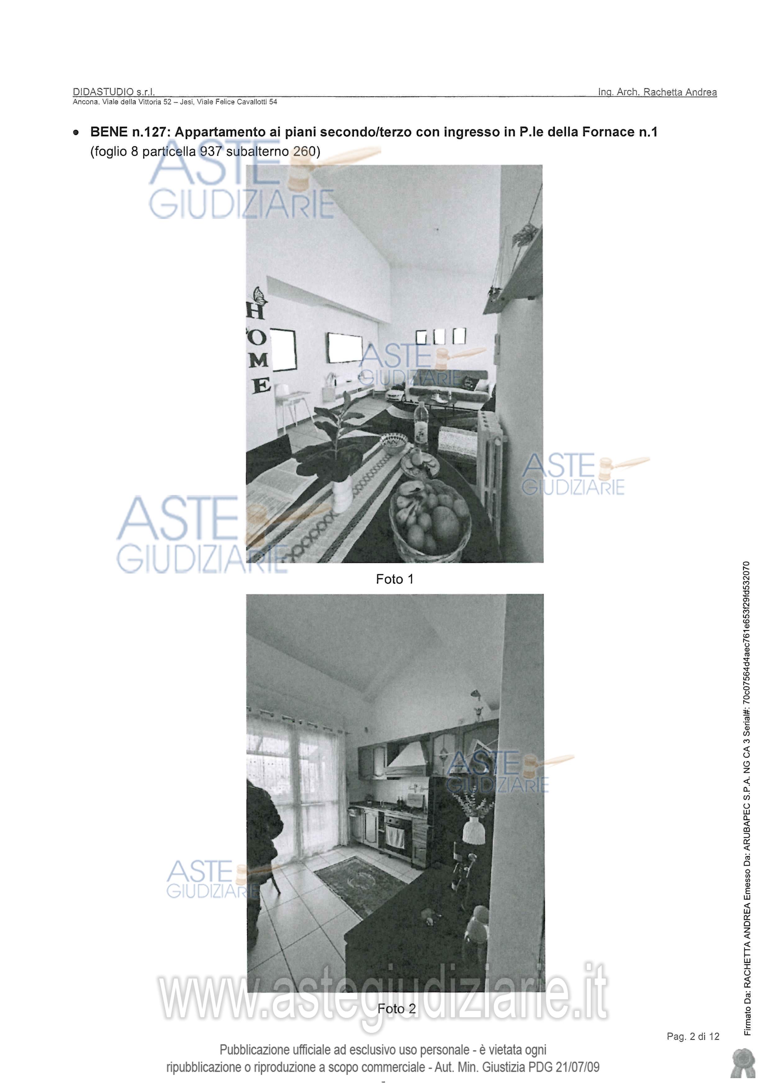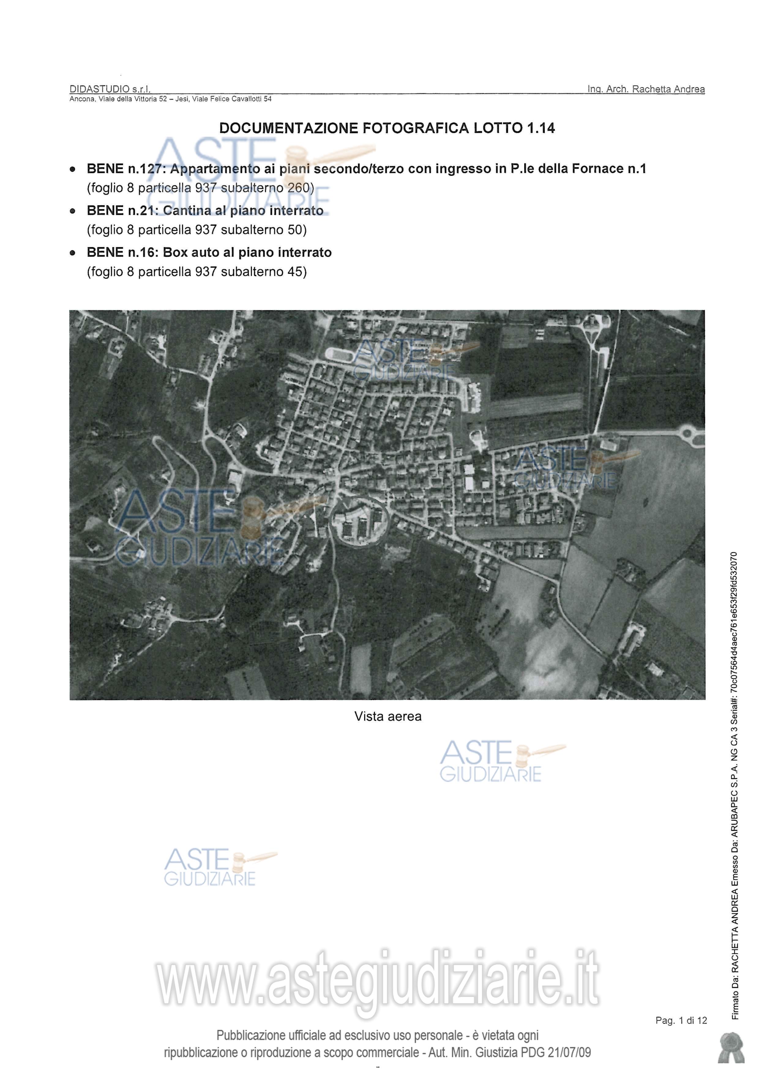 Vendita in attesa dell'emissione del nuovo bando d'asta. LOTTO 14: LOTTO 14 (in perizia lotto 1.14).Appartamento (bene n. 127) di civile abitazione facente parte del “Blocco A”, posto sui piani secondo e sottotetto, con accesso tramite il portone condominiale dal civico n. 1 di Piazzale della Fornace, con annessi locale cantina (bene n. 21) e box auto (bene n. 16). Ultimo prezzo base € 49.781,00 (offerta minima € 37.336,00). Giudice Giuliana Filippello. Professionista delegato alla vendita Not. Luigi Olmi - Email "esecuzioni@studionotarilebucciolmi.it"; Tel. 071206866. Custode Giudiziario Avv. Gianluca Spinsanti - Email "g.spinsanti@studiolegalerossini.eu"; Tel. 0712075613. Rif. Tribunale di Ancona - Espropriazione immobiliare (cartabia) n. 41/2024