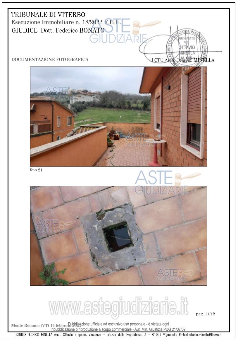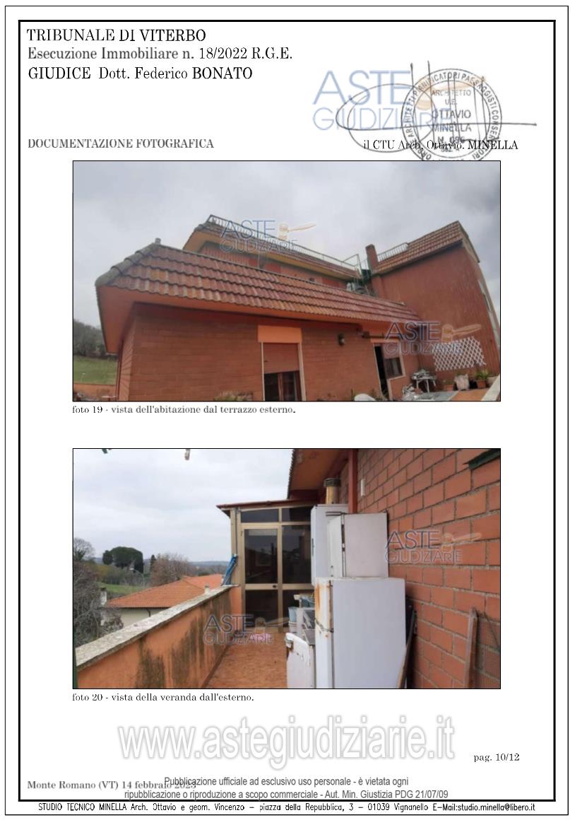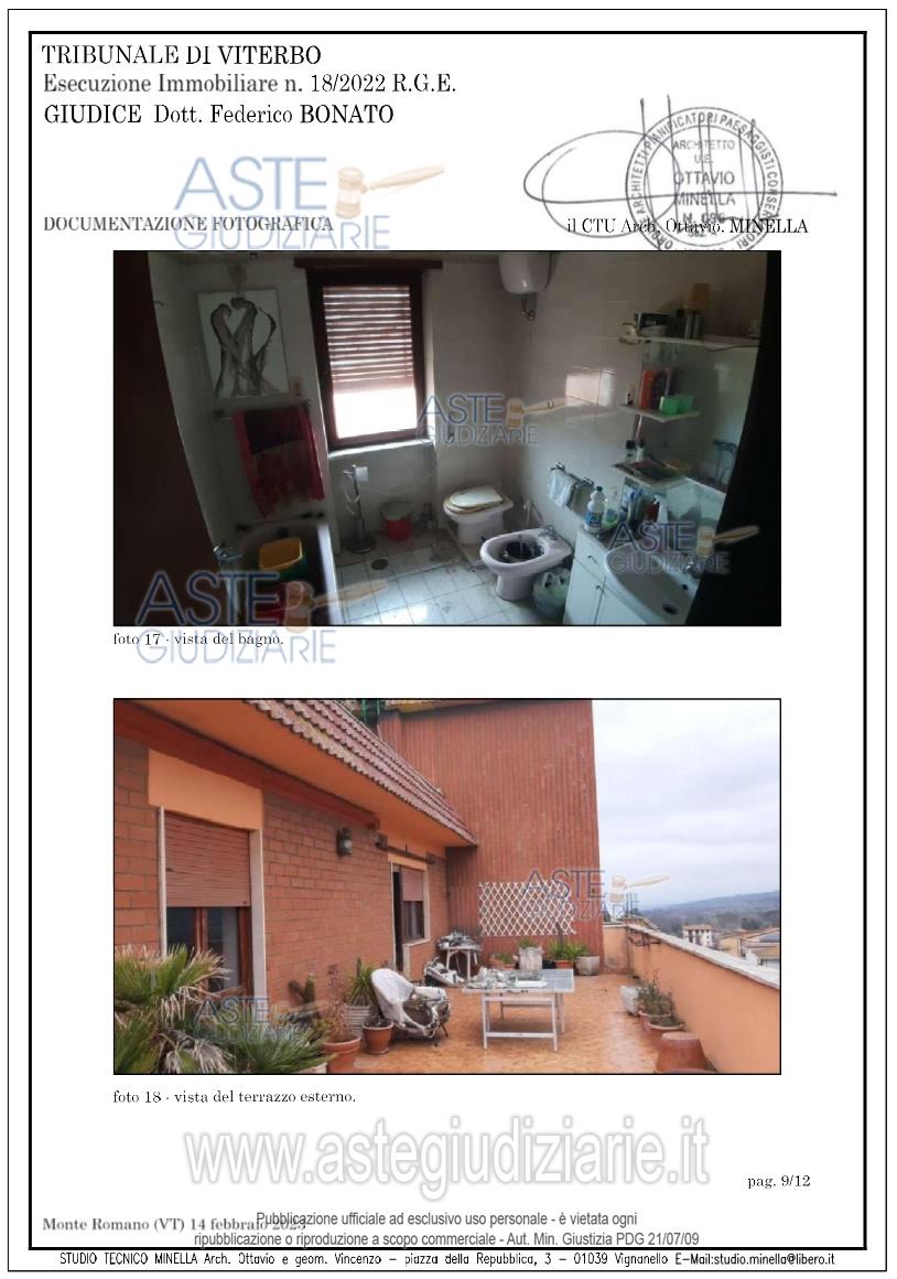 Vendita all'asta Senza incanto, con gara telematica asincrona - LOTTO UNICO: Diritti di piena proprietà suappartamento sito in nel Comune diMonte Romano (VT), via Aurelia Nordn.59, piano 4° int. 13 composto da duesoggiorni, cucina, con veranda dipertinenza, due camere da letto, unbagno, ingresso, corridoio e ripostiglioper complessivi mq 118,85 oltre aterrazzo di mq 87 distinta nel CF alfoglio 21 con la particella n.150subalterno 13, via Aurelia Bis n. 59 (oraAurelia Nord), (piano 4°, int.13, cat. A/2di vani 6,5 e rendita catastale di euro637,82). Occupato dal debitore. Prezzo base € 60.675,00 (offerta minima € 45.506,25). Data inizio operazioni di vendita: 17/06/2026 ore 10:40. Giudice Federico Bonato. Professionista delegato alla vendita Dott. Giovanni Arriga - Email "dott.arriga@gmail.com"; Tel. 0761270186. Custode Giudiziario Dott. Giovanni Arriga - Email "dott.arriga@gmail.com"; Tel. 0761270186. Rif. Tribunale di Viterbo - Esecuzione immobiliare post legge 80 n. 18/2022