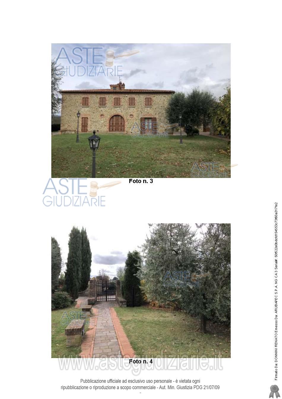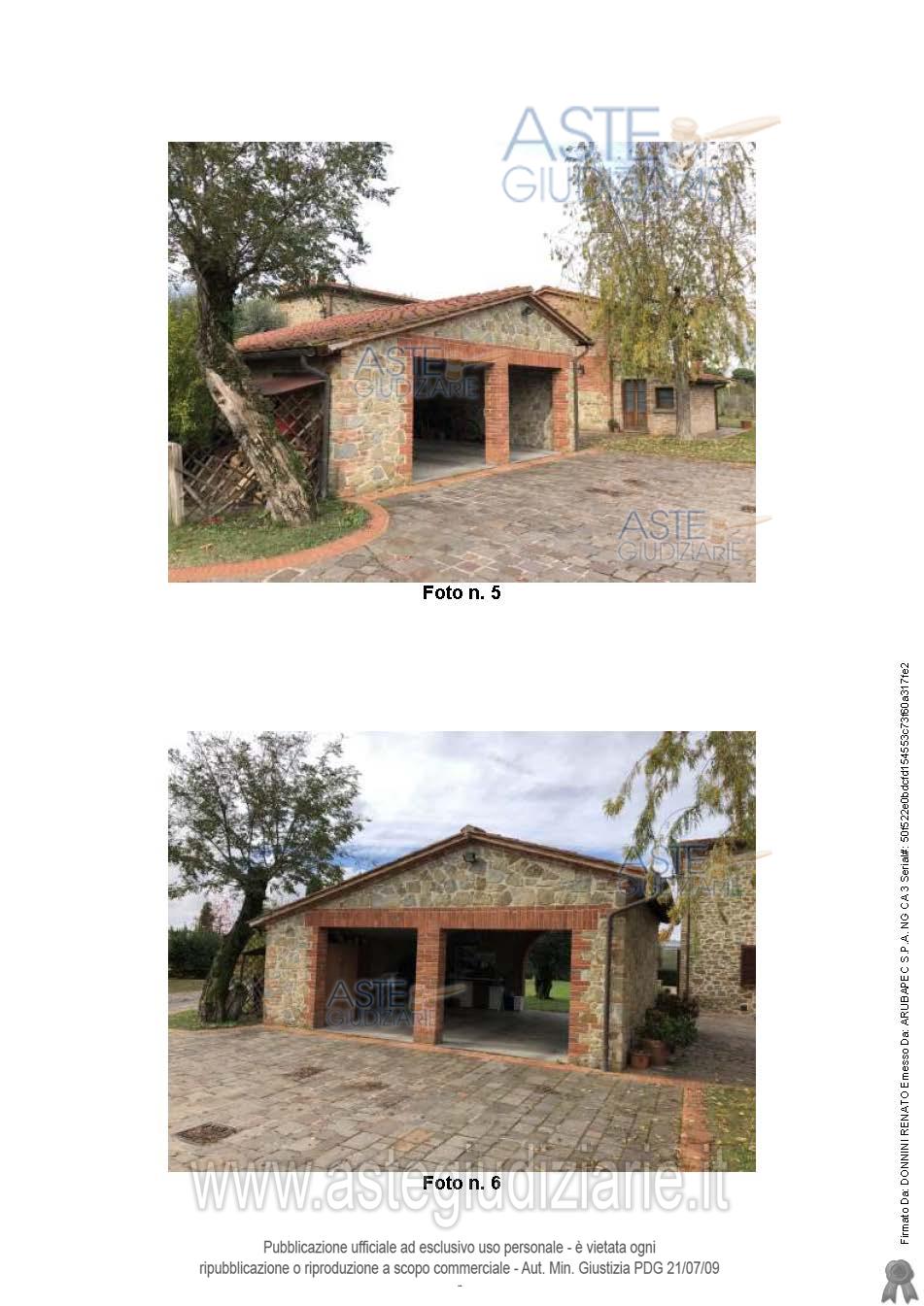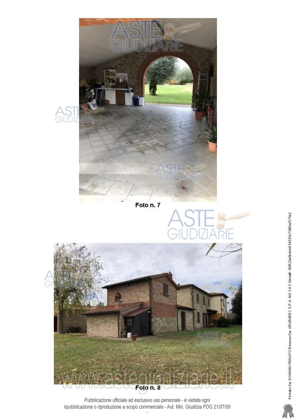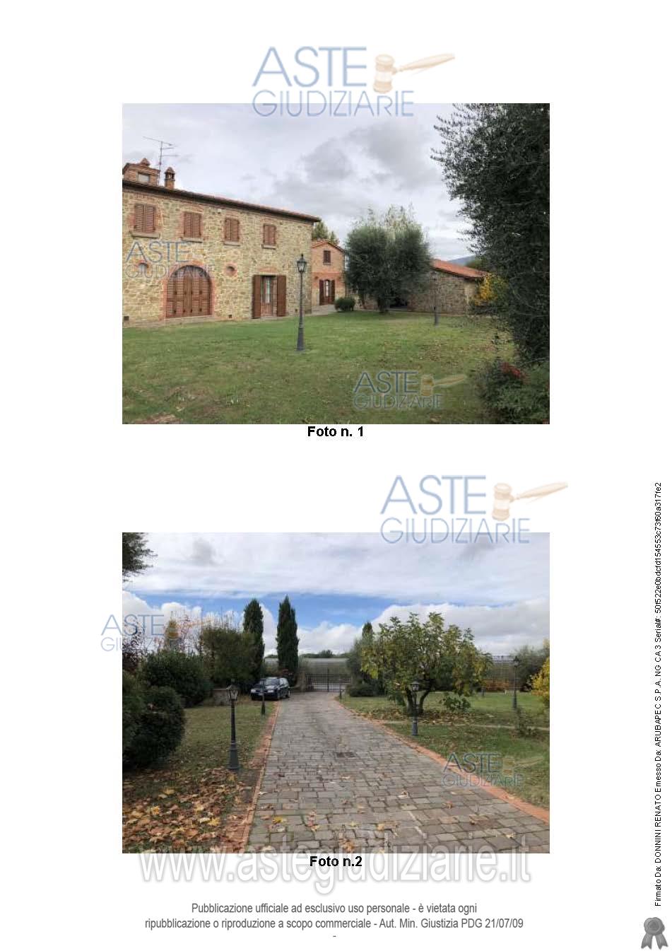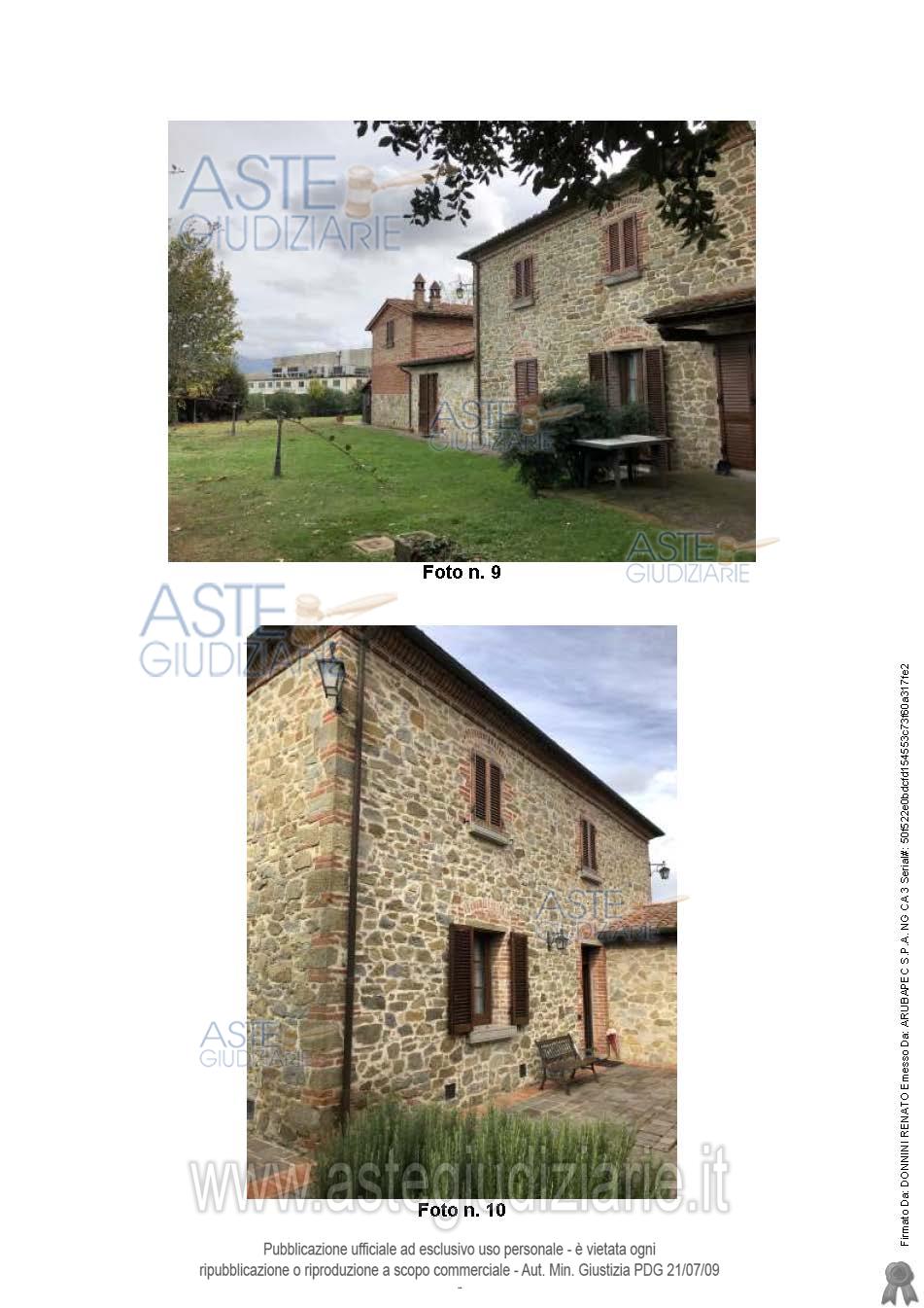 Vendita all'asta Senza incanto, con gara telematica sincrona mista - LOTTO UNICO: piena proprietà di porzione di immobile ad uso abitativo articolato su due piani fuori terra, composto al piano terra da soggiorno/pranzo, w.c., cucina, pluriuso, centrale termica oltre a due vani scale per raggiungere il piano primo composto da tre camere, due bagni, disimpegno, ripostiglio e pluriuso con bagno e sauna , con corpo di fabbrica distaccato adibito a garage. L'immobile è corredato da resede esclusivo di circa mq.1.460,00. Prezzo base € 272.000,00 (offerta minima € 204.000,00). Data vendita 20/11/2025 ore 10:00. Professionista delegato alla vendita Avv. Tatiana Cosimi - Email "avvtatianacosimi@gmail.com"; Cell. 3355344157; Tel. 0575250191. Custode Giudiziario Avv. Istituto Vendite Giudiziarie Arezzo-Siena - Email "visite.ivg@gmail.com"; Cell. 3397337017; Tel. 0577318111. Rif. Tribunale di Arezzo - Esecuzione immobiliare post legge 80 n. 11/2018