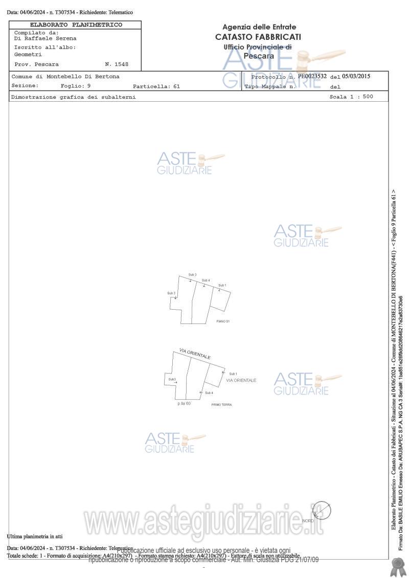 Vendita all'asta Senza incanto, con gara telematica asincrona - LOTTO 01: Piena proprietà di immobile ad uso residenziale nel Comune di Montebello di Bertona alla ViaOrientale n°13. L'immobile disposto su due livelli, con accessi distinti, uno al piano seminterrato dalla ViaOrientale e l’altro al piano terra dal Corso Bertona, si compone di un vano ad uso soggiorno/cucina al pianoseminterrato ed una camera al piano terra, rispettivamente collegati da una scala interna, con relativo WCnel sottoscala. Prezzo base € 26.278,56 (offerta minima € 19.708,92). Data inizio operazioni di vendita: 17/03/2026 ore 12:00. Professionista delegato alla vendita Avv. Cesare Borgia - Email "avvcesareborgia@gmail.com"; Tel. 085292276. Custode Giudiziario Avv. Cesare Borgia - Email "avvcesareborgia@gmail.com"; Tel. 085292276. Rif. Tribunale di Pescara - Espropriazione immobiliare (cartabia) n. 204/2023