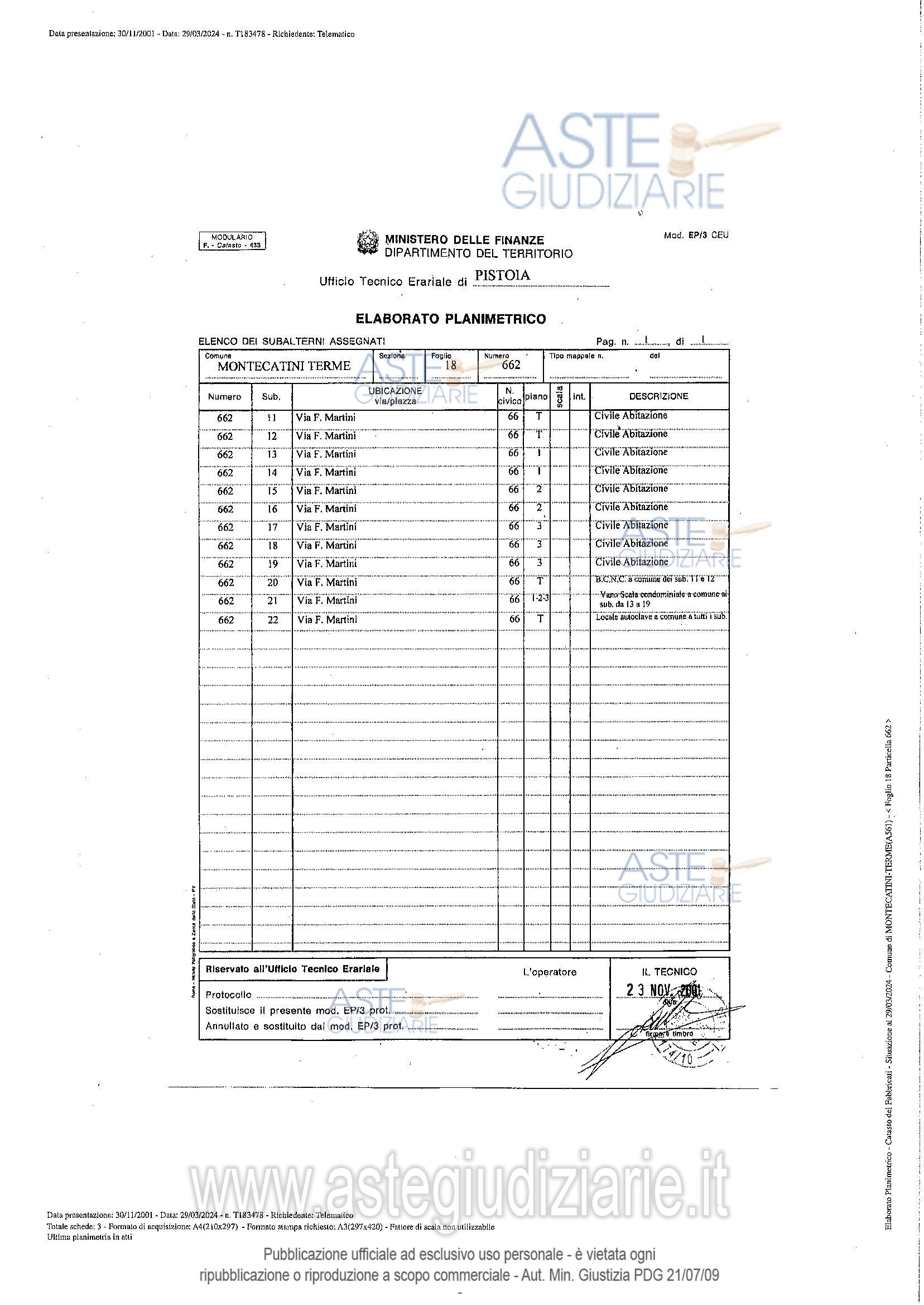 Vendita all'asta Senza incanto, con gara telematica asincrona - LOTTO UNICO: Appartamento per civile abitazione in fabbricato condominiale al piano terzo, composto da ingressosoggiorno, cucina con terrazza, disimpegno, due camere da letto e servizio igienico. Prezzo base € 42.500,00 (offerta minima € 32.000,00). Data inizio operazioni di vendita: 04/12/2025 ore 09:00. Giudice Nicoletta Curci. Professionista delegato alla vendita Avv. Claudio Pini - Email "segreteria@pinibrescia.it". Custode Giudiziario Isveg - Email "prenota.pt@isveg.it". Rif. Tribunale di Pistoia - Espropriazione immobiliare (cartabia) n. 48/2024