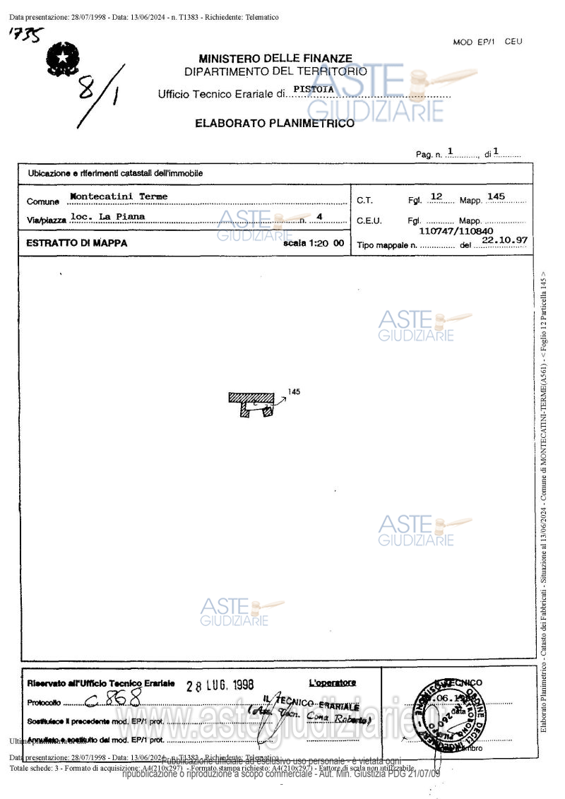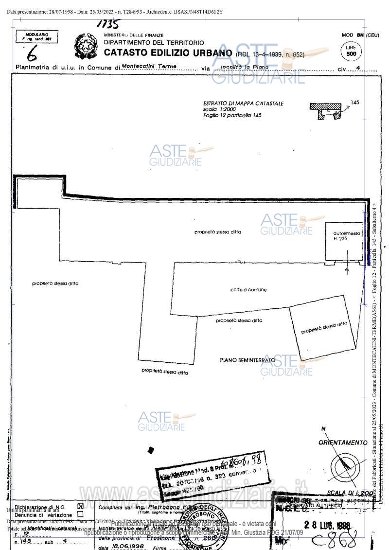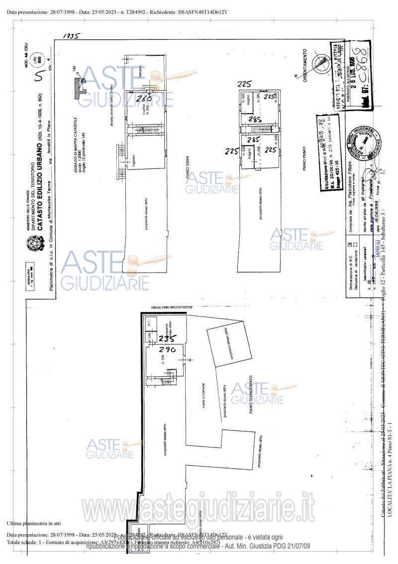 Vendita all'asta Senza incanto - LOTTO 2: Porzione del fabbricato posto in Comune di Montecatini Terme, località La Piana n. 4, su due piani fuori terra oltre piano seminterrato, con accesso da due rampe di scale esterne, costituita da unità immobiliare per civile abitazione composta: al piano terreno da ingresso-soggiorno, due ripostigli, cucina pranzo, ampia terrazza; al piano primo da disimpegno, due camere con bagno, di cui una con guardaroba; al piano seminterrato da vano studio, bagno e antibagno. Oltre autorimessa, con accesso sia dal resede a comune sia dal vano studio del piano seminterrato. Oltre quota di comproprietà sulle parti comuni del fabbricato, tra cui corte