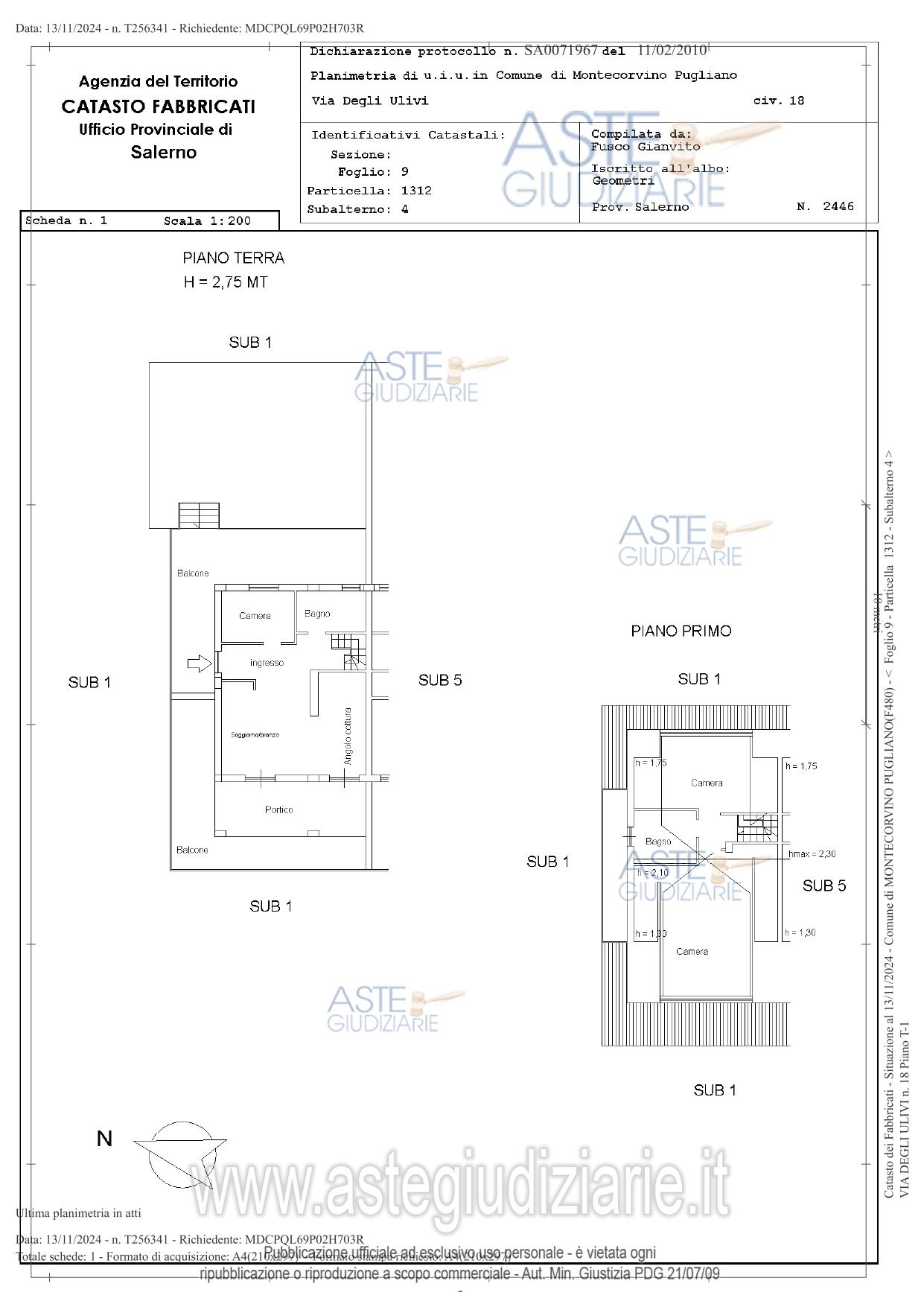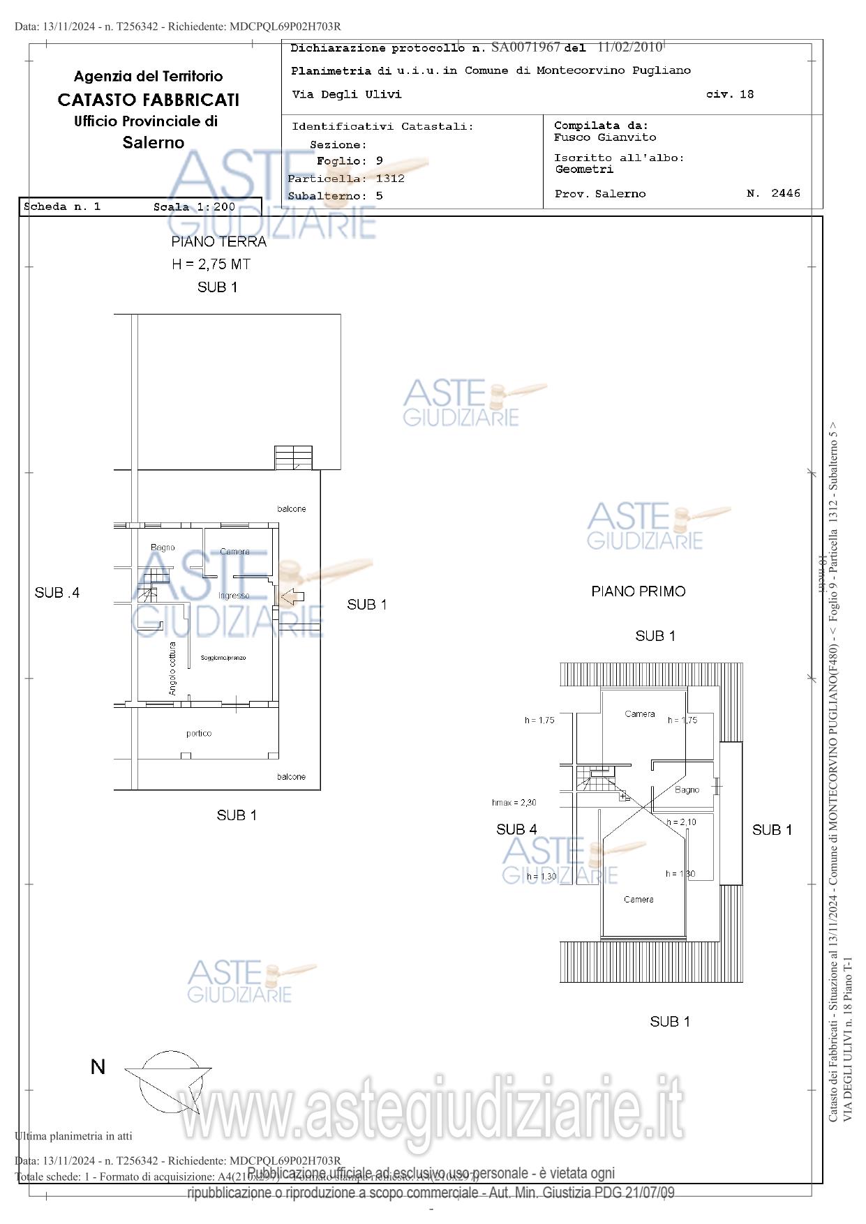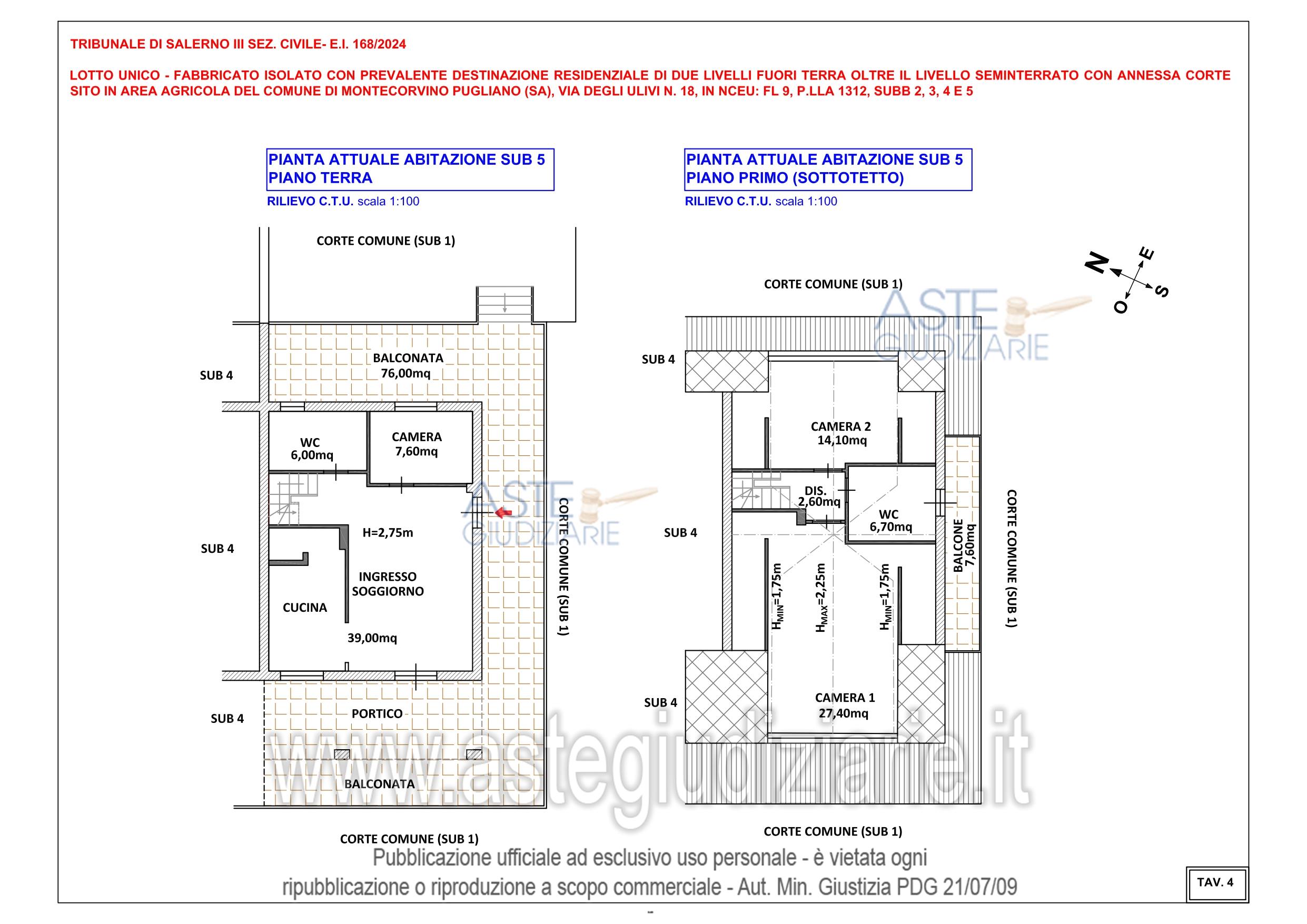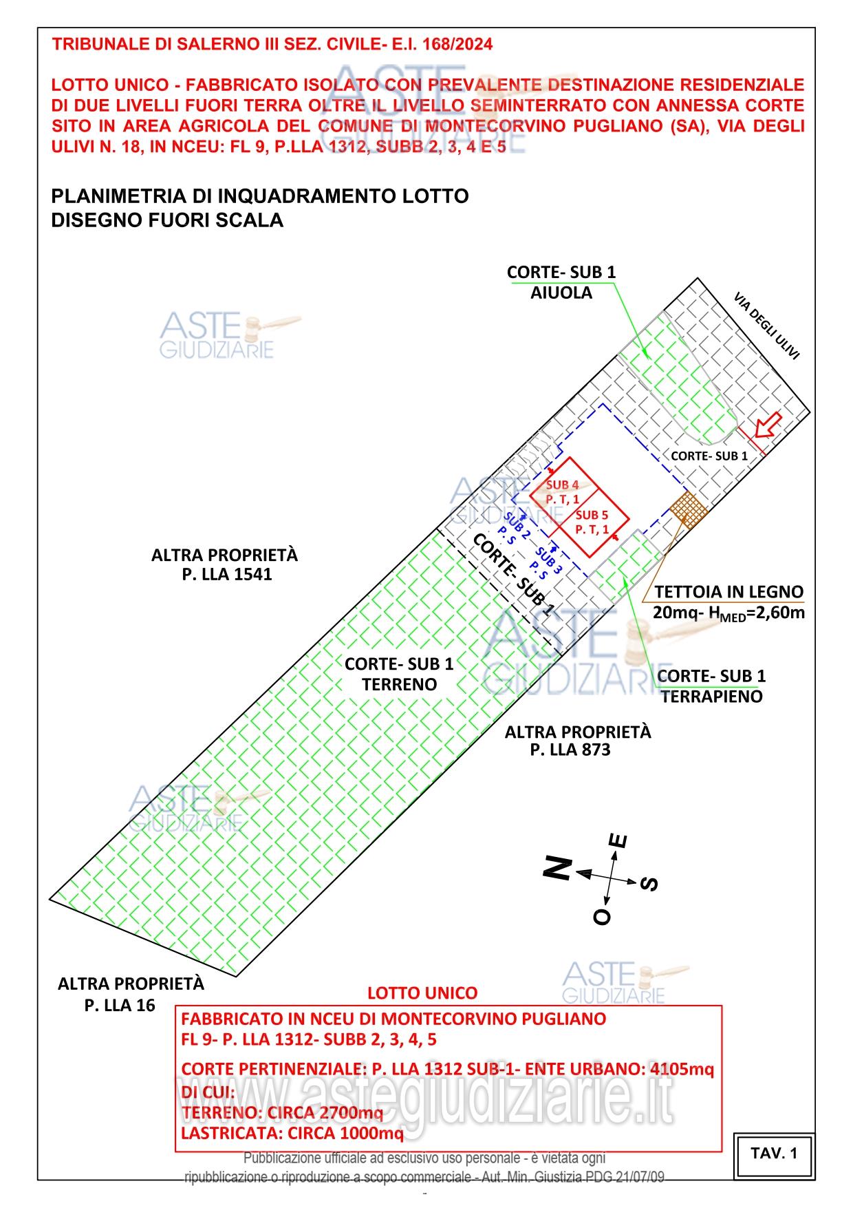 Vendita all'asta Senza incanto, con gara telematica asincrona - LOTTO UNICO: DIRITTO DI PIENA PROPRIETÀ di un fabbricato isolato, con prevalente destinazione abitativa,composto da piano seminterrato, terra e primo (livello sottotetto) con circostante area pertinenzialeadibita a corte e terreno ubicato in area agricola. Prezzo base € 152.700,00 (offerta minima € 114.525,00). Data inizio operazioni di vendita: 28/04/2026 ore 15:00. Professionista delegato alla vendita Avv. Dario Bruno. Custode Giudiziario Avv. Dario Bruno - Email "avv.dariobruno@gmail.com"; Cell. 3807524234. Rif. Tribunale di Salerno - Espropriazione immobiliare (cartabia) n. 168/2024