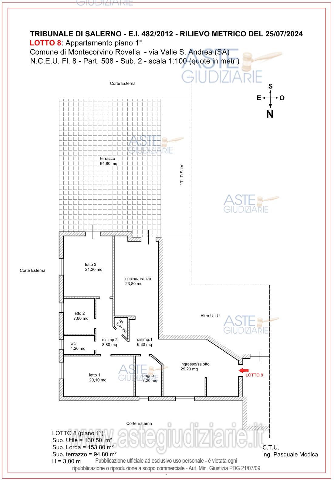 Vendita all'asta Senza incanto, con gara telematica asincrona - LOTTO 8: LOTTO 8.DIRITTO DI PIENA PROPRIETÀ DELL’APPARTAMENTO SITO IN MONTECORVINOROVELLA (SA), VIA VALLE S. ANDREA IN NCEU: FL 8, P. LLA 508, SUB 2, CAT A/2,CLASSE 5, PIANO T, VANI 6, RENDITA EURO 433,82. Prezzo base € 64.370,70 (offerta minima € 48.278,03). Data inizio operazioni di vendita: 30/12/2025 ore 12:00. Professionista delegato alla vendita Avv. Raffaella Infante. Custode Giudiziario Avv. Raffaella Infante - Email "raffaellainfante@yahoo.it"; Cell. 3314819709. Rif. Tribunale di Salerno - Esecuzione immobiliare post legge 80 n. 482/2012