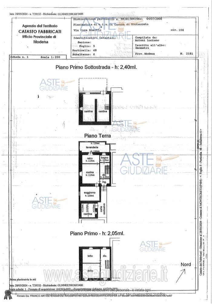 Vendita all'asta Senza incanto, con gara telematica asincrona - LOTTO 2: Piena proprietà di abitazione civile sita in Montecreto, località Casine, Via Casine n. 104, costituita da cantina al piano interrato, zona giorno al piano terra (rialzato) e zona notte al piano primo. Prezzo base € 40.918,00 (offerta minima € 30.688,50). Data inizio operazioni di vendita: 24/03/2026 ore 12:30. Professionista delegato alla vendita Avv. Giulia Gasparini - Email "giulia.gasparini@lombardostudiolegale.com"; Tel. 0594730179. Custode Giudiziario Alex Manelli - Email "visiteimmobili@ivgmodena.it"; Tel. 059847301. Rif. Tribunale di Modena - Espropriazione immobiliare (cartabia) n. 240/2023