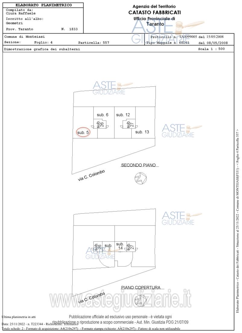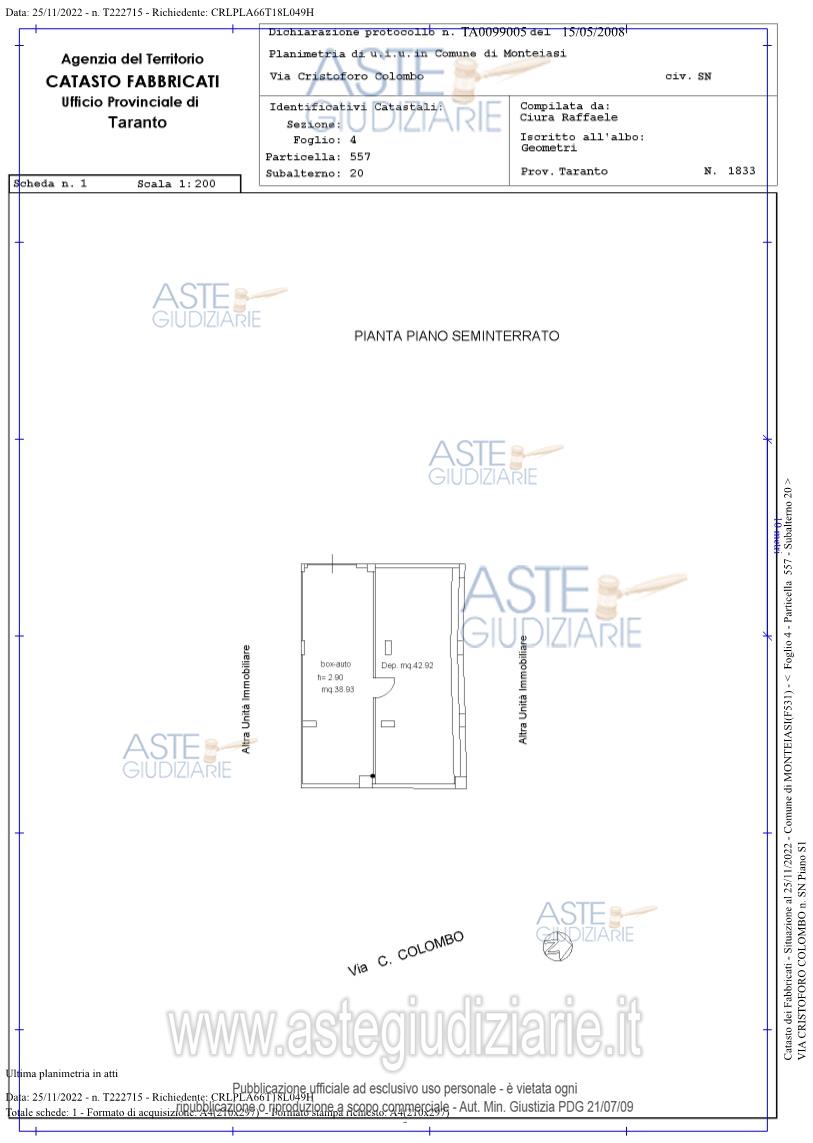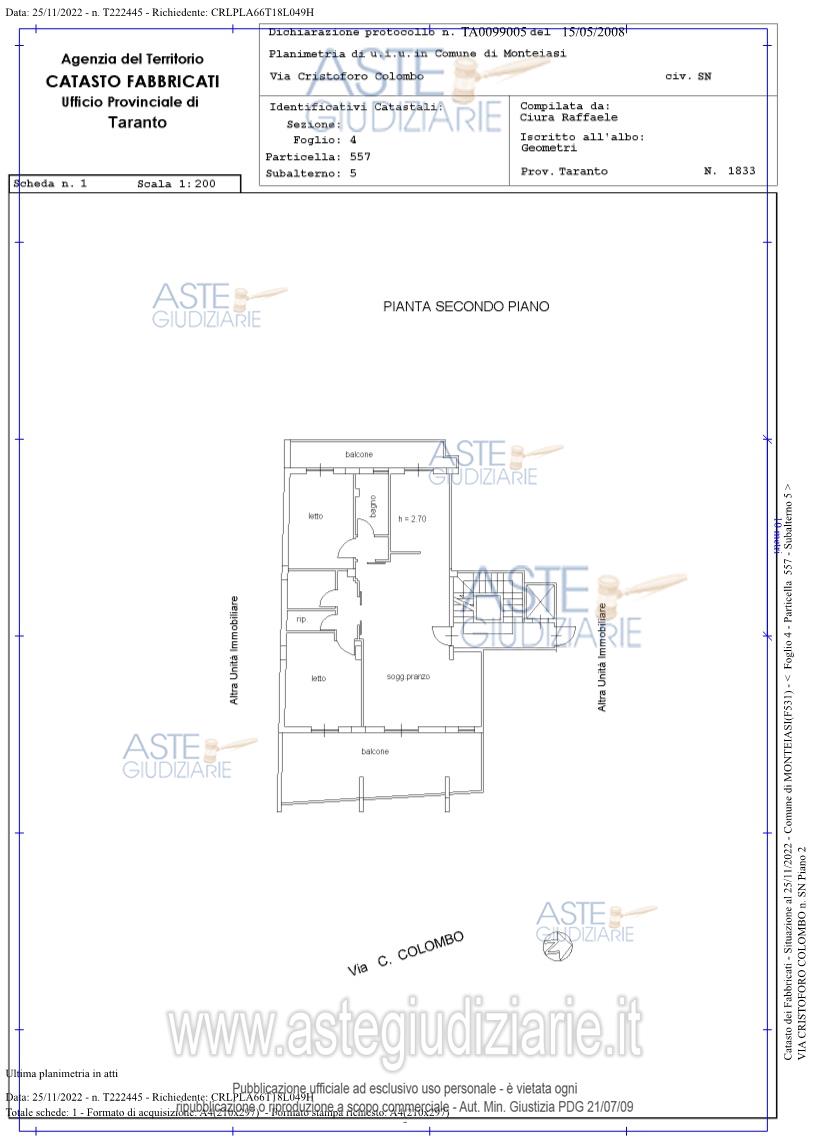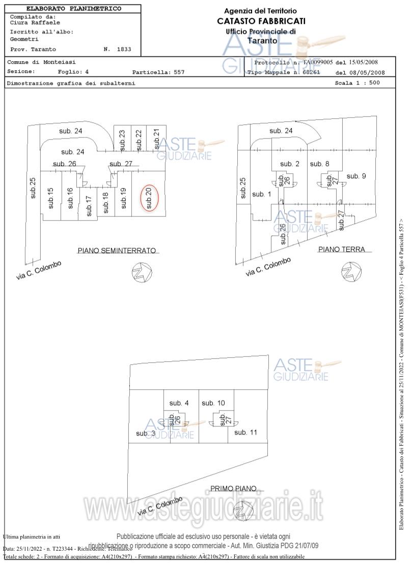 Vendita all'asta Senza incanto, con gara telematica asincrona - LOTTO 4: Appartamento, insistente su fondo enfiteutico, al piano secondo con accesso dalla porta a destra salendo le scale e locale box primo da sinistra di fronte alla saracinesca di ingresso. Prezzo base € 72.844,00 (offerta minima € 54.633,00). Data inizio operazioni di vendita: 03/03/2026 ore 09:30. Giudice Dott. Raffaele Viglione. Professionista delegato alla vendita Avv. Rosalba Riccheo - Email "rosalba.riccheo@gmail.com"; Cell. 3495661455. Custode Giudiziario Avv. Edmondo Speciale - Email "avv.speciale@gmail.com"; Tel. 09945333333. Rif. Tribunale di Taranto - Fallimentare (nuovo rito) n. 27/2019