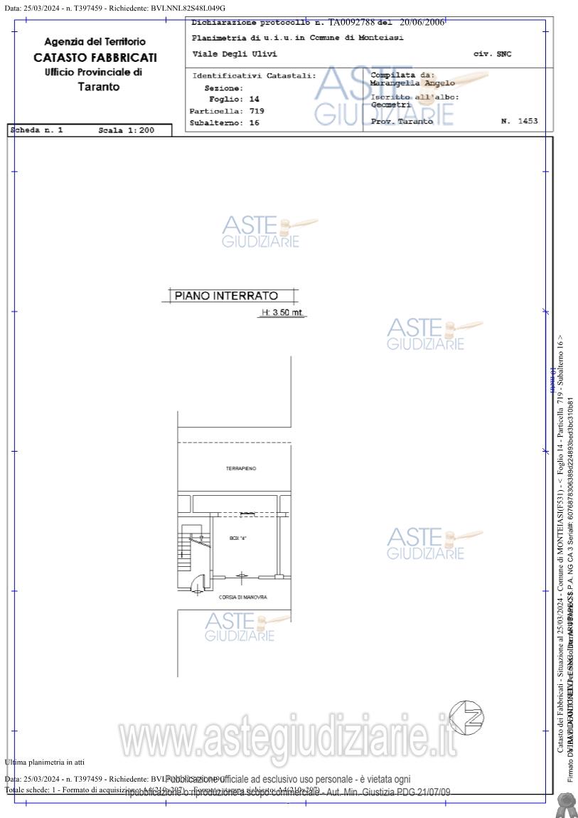 Vendita all'asta Senza incanto, con gara telematica asincrona - LOTTO 1: Appartamento al piano terra con annesso deposito pertinenziale posto al piano seminterrato. Prezzo base € 190.000,00 (offerta minima € 142.500,00). Data inizio operazioni di vendita: 13/05/2026 ore 16:00. Giudice Andrea Paiano. Professionista delegato alla vendita Avv. Rosanna Tosi. Custode Giudiziario Avv. Rosanna Tosi - Email "tosi.rosanna@libero.it"; Cell. 3281766251. Rif. Tribunale di Taranto - Esecuzione immobiliare post legge 80 n. 252/2023