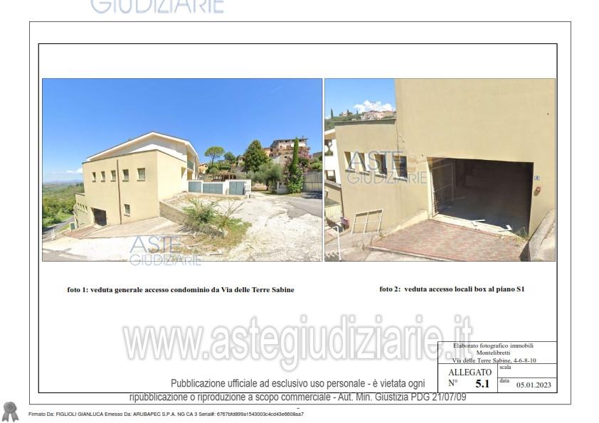 Vendita all'asta Senza incanto, con gara telematica asincrona - LOTTO 1: Quota pari a 1/1 del diritto di proprietà su immobile sito in Montelibretti (RM)-V.delle Terre Sabine snc,costituito da: A) Abitazione piano terra e primo, autonomamente accessibile dalla corte esclusiva. B) Garage primo sottostrada, autonomamente accessibile dal passaggio comune. Prezzo base € 73.400,00 (offerta minima € 55.050,00). Data inizio operazioni di vendita: 18/12/2025 ore 16:00. Giudice Marco Piovano. Professionista delegato alla vendita Avv. Rita Frattini - Email "frattini.rita@tiscali.it"; Tel. 0774311349. Custode Giudiziario Ivg Di Roma Srl - Email "pvp@visiteivgroma.it"; Tel. 0689569801. Rif. Tribunale di Tivoli - Esecuzione immobiliare post legge 80 n. 109/2022