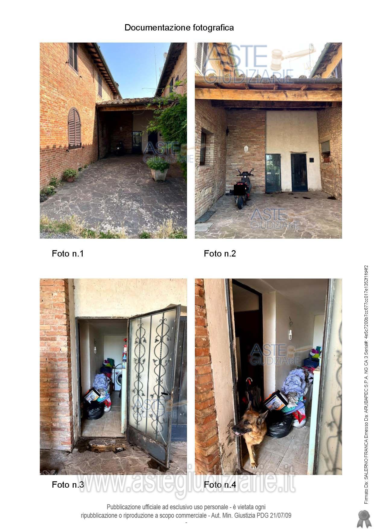 Vendita all'asta Senza incanto, con gara telematica asincrona - LOTTO UNICO: piena proprietà di compendio situato lungo la Strada di Mugnano al numero civico 1147, in località Casa Paradiso Il Ciliegio, composto da: a) - abitazione di tipo civile ai piani terreno e primo; b) - laboratorio al piano seminterrato, della consistenza catastale di 85 (ottantacinque); c) autorimessa, adiacente alla suddetta abitazione e collegata alla medesima da tettoie, è risultata adattata all’uso abitativo; d) - due magazzini, di cui uno composto di unico vano e l'altro attualmente non esistente. Prezzo base € 332.000,00 (offerta minima € 249.000,00). Data inizio operazioni di vendita: 26/05/2026 ore 10:00. Giudice Marta Dell'unto. Professionista delegato alla vendita Avv. Giulia Pescatori - Email "giupes80@hotmail.com"; Cell. 3398981223; Tel. 0577287409. Custode Giudiziario Istituto Vendite Giudiziarie Arezzo-Siena - Email "visite.ivg@gmail.com"; Cell. 339733017; Tel. 0577318111. Rif. Tribunale di Siena - Esecuzione immobiliare post legge 80 n. 80/2022