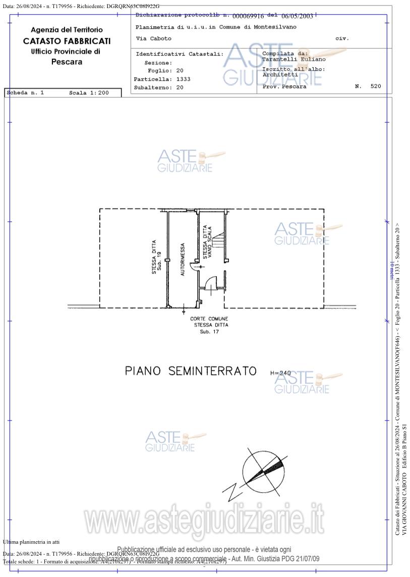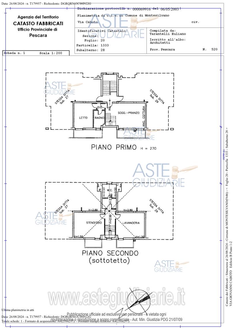Vendita all'asta Senza incanto, con gara telematica asincrona - LOTTO UNICO: Appartamento , edificio B, interno 5, piano 1-2 posto al primo e secondo (sottotetto) piano di un edificio plurifamiliare senza ascensore e relativo garage posto al piano seminterrato. Prezzo base € 86.086,69 (offerta minima € 64.565,02). Data inizio operazioni di vendita: 03/02/2026 ore 15:30. Giudice Daniela Angelozzi. Professionista delegato alla vendita Not. Italo De Benedittis. Custode Giudiziario Not. Italo De Benedittis - Email "celso_legale@yahoo.it"; Tel. 0858270978. Rif. Tribunale di Pescara - Espropriazione immobiliare (cartabia) n. 55/2024