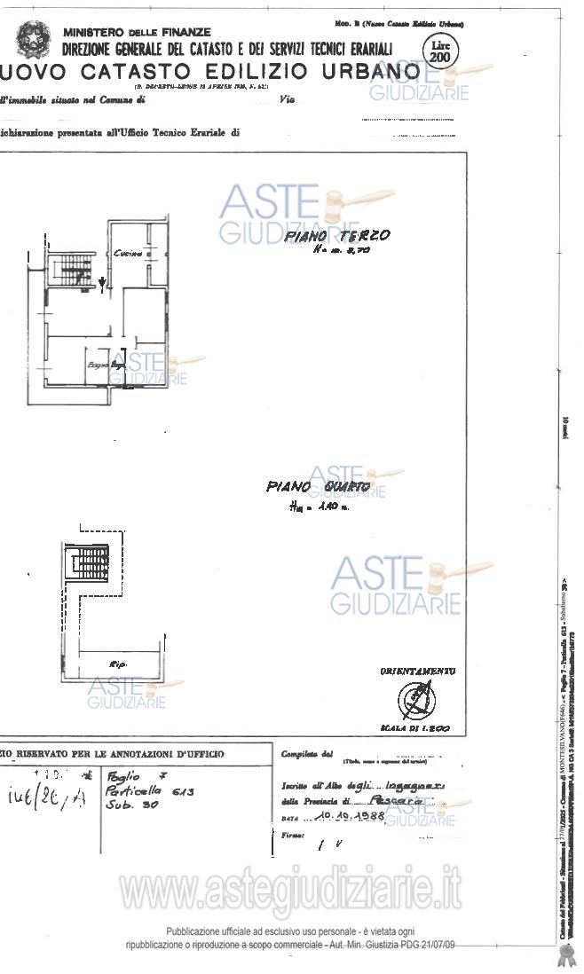 Vendita all'asta Senza incanto, con gara telematica asincrona - LOTTO UNICO: Proprietà superficiaria su Appartamento ad uso civile abitazione sito in Montesilvano alla Via Carlo Alberto DallaChiesa n. 3/C, posto al piano terzo, scala B, interno 6, composto da quattro vani, corridoio,disimpegno, cucina, due servizi e due balconi a livello. Annesso a tale appartamento vi è unlocale ripostiglio posto al quarto piano. Prezzo base € 109.230,00 (offerta minima € 81.922,50). Data inizio operazioni di vendita: 28/10/2025 ore 09:30. Professionista delegato alla vendita Avv. Lorenzo Fusco. Custode Giudiziario Avv. Lorenzo Fusco - Email "avv.lorenzofusco@virgilio.it". Rif. Tribunale di Pescara - Espropriazione immobiliare (cartabia) n. 237/2024