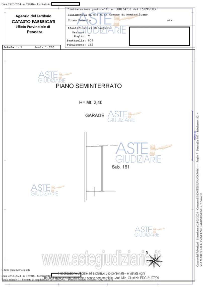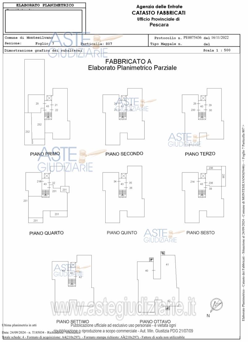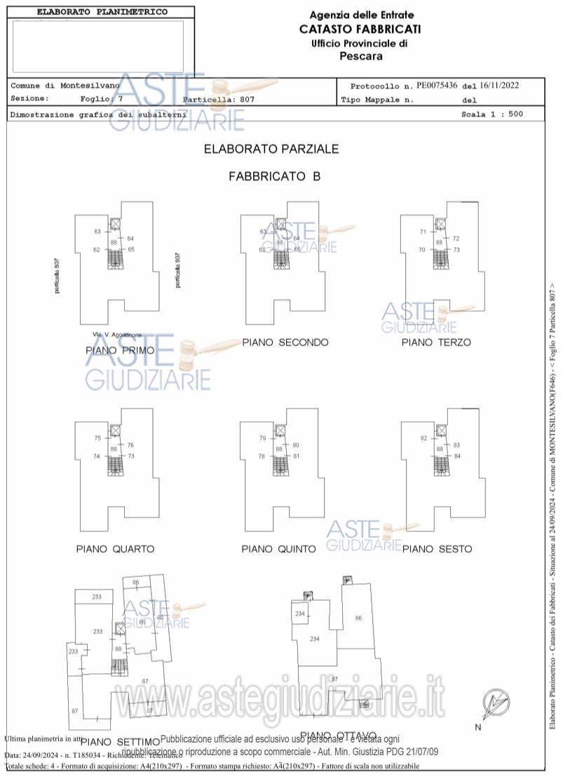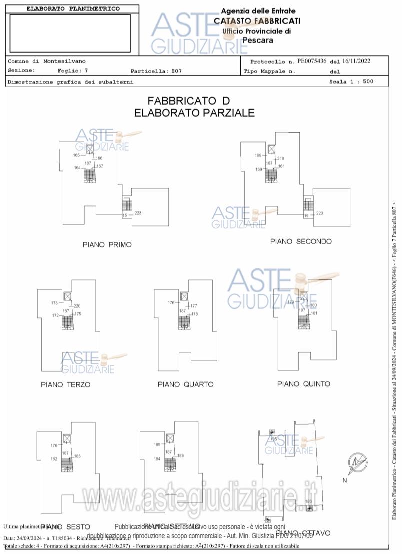 Vendita all'asta Senza incanto, con gara telematica asincrona - LOTTO UNICO: Intera proprietà [Usufrutto (1/2+1/2) + “nuda” proprietà (1/1)] di un appartamento e di un garage, rispettivamente al p. 6° e al p. seminterrato di un fabbricato di civile abitazione denominato Palazzina C. Prezzo base € 151.070,00 (offerta minima € 113.302,50). Data inizio operazioni di vendita: 16/12/2025 ore 10:00. Giudice Dott. Daniela Angelozzi. Professionista delegato alla vendita Dott. Giuseppe D'addario - Email "studiocommercialedaddario@gmail.com"; Tel. 0854219961. Custode Giudiziario Dott. Giuseppe D'addario - Email "studiocommercialedaddario@gmail.com". Rif. Tribunale di Pescara - Espropriazione immobiliare (cartabia) n. 173/2023