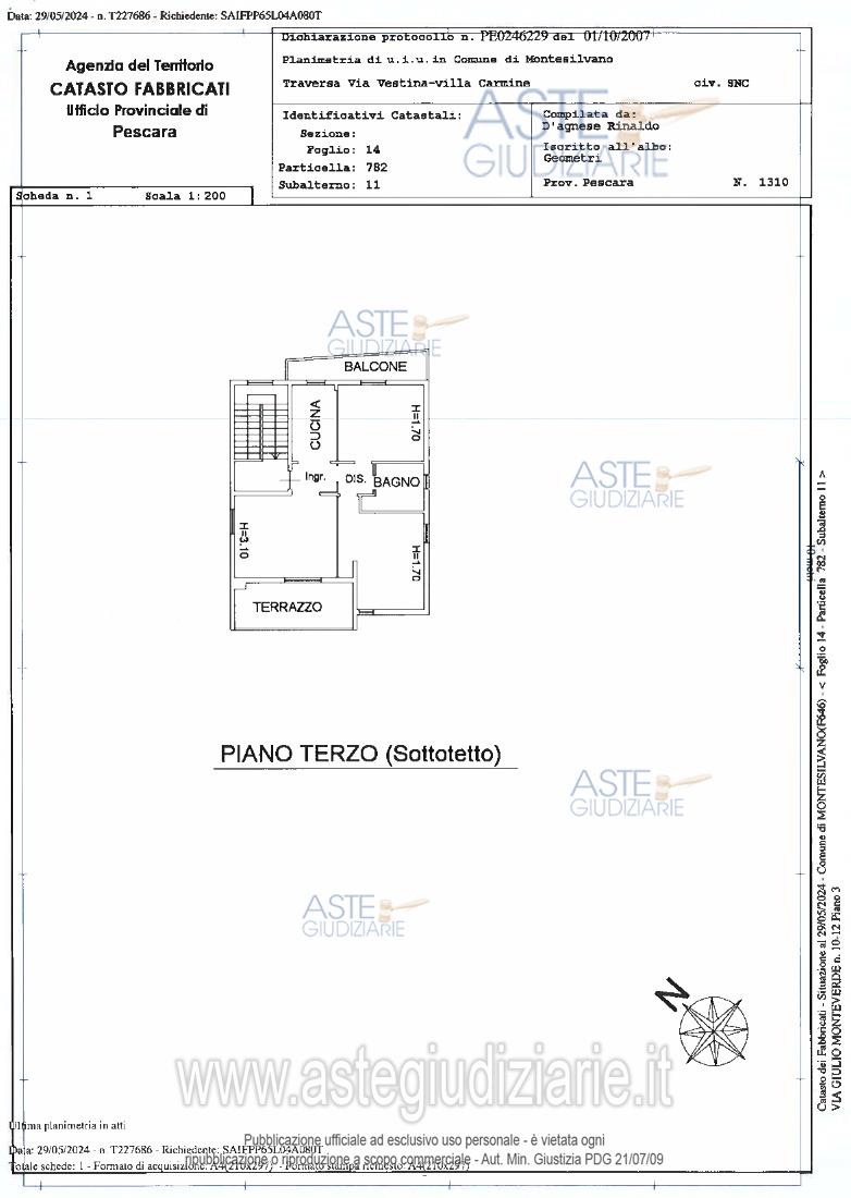 Vendita all'asta Senza incanto, con gara telematica asincrona - LOTTO UNICO: Intera proprietà di appartamento al piano terzo o sottotetto non servito da ascensore, garage al piano terra,posto auto scoperto piano terra. Prezzo base € 96.853,25 (offerta minima € 72.639,94). Data inizio operazioni di vendita: 21/07/2026 ore 09:00. Giudice: Dott. Anastasio Morelli.