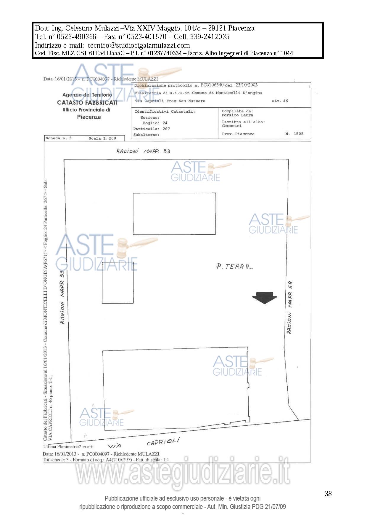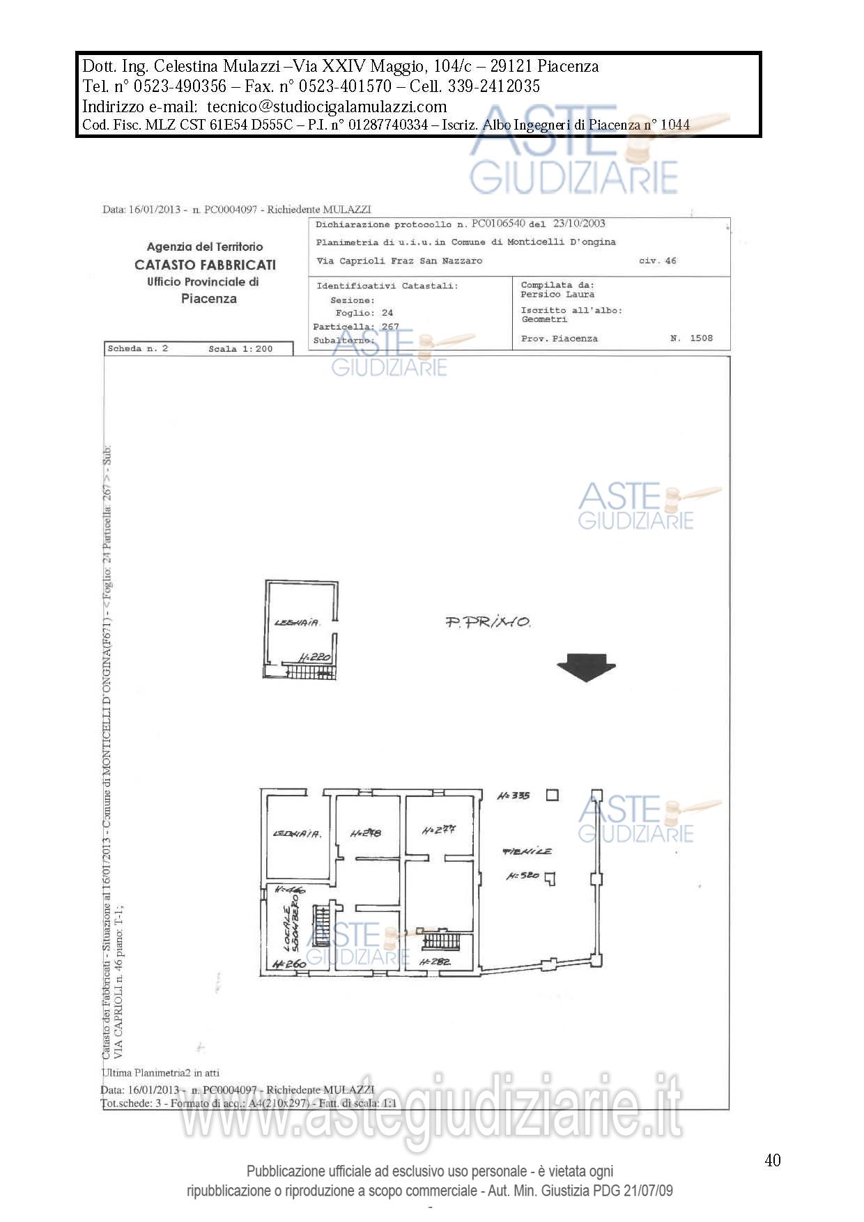 Vendita in attesa dell'emissione del nuovo bando d'asta. LOTTO UNICO: Fabbricato di civile abitazione di vecchia costruzione a due piani fuori terra di sei locali oltre a servizi, con annessi, in corpo staccato posti su area di corte, portico, fienile, pollai e legnaia. Ultimo prezzo base € 23.916,00 (offerta minima € 17.937,00). Professionista delegato alla vendita Not. Raffaello Bianco - Email "studio@notaiobianco.it". Custode Giudiziario Istituto Vendite Giudiziarie Di Parma E Piacenza - Email "immobiliparma@ivgparma.it"; Tel. 0521273762. Rif. Tribunale di Piacenza - Esecuzione immobiliare post legge 80 n. 262/2012
