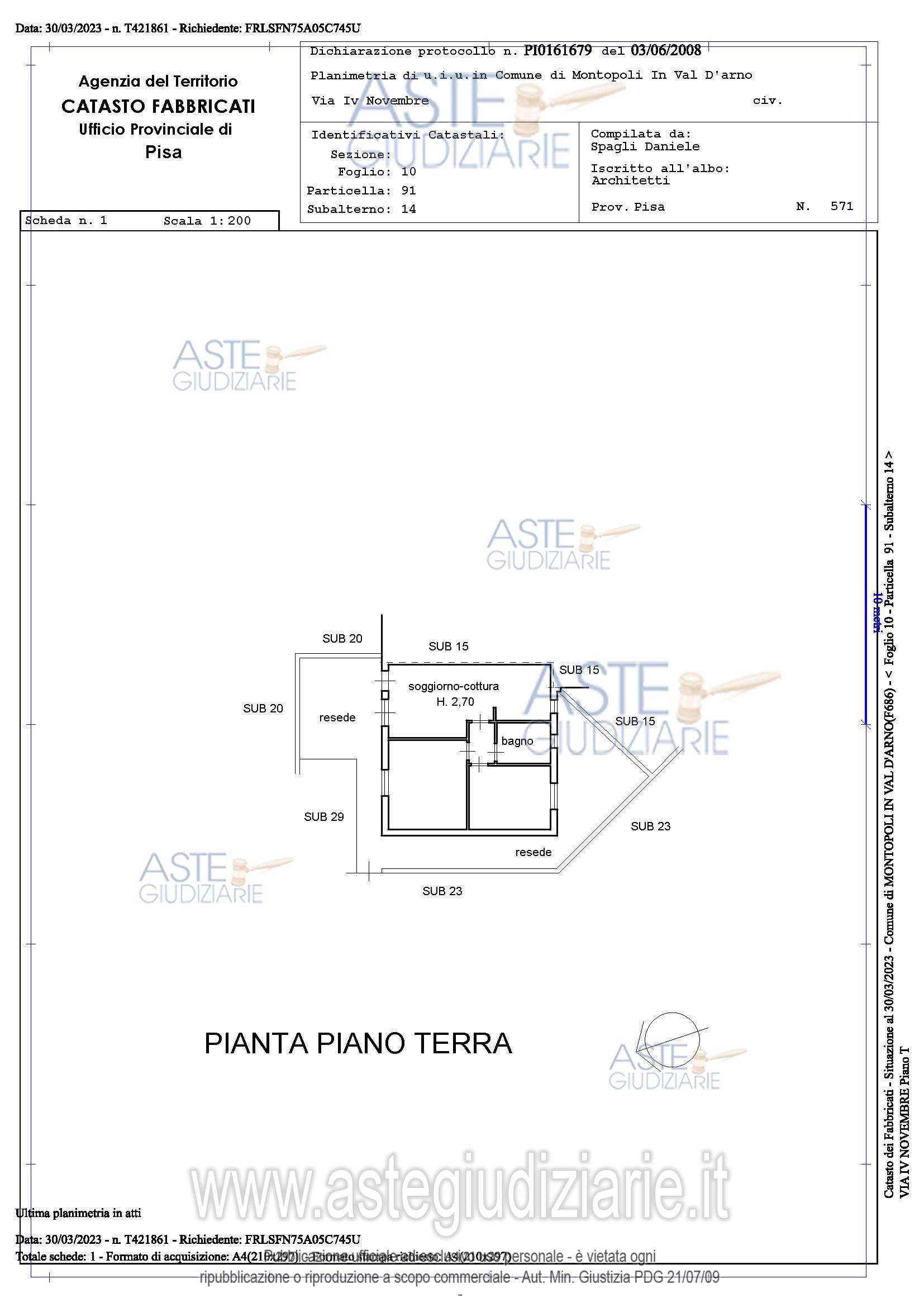 Vendita all'asta Competitiva - LOTTO 3: Unità immobiliare ad uso residenziale con annesso posto auto scoperto, in Comune di Montopoli Valdarno, posta al piano terreno del secondo fabbricato condominiale per chi arriva alla Via IV Novembre snc, precisamente l’unità frontale con posto auto collocato sul fianco sinistro dell’edificio. La superficie utile netta, comprensiva della superficie ragguagliata dei due resedi esclusivi e del posto auto scoperto è di mq 62,00 - superficie commerciale complessiva di mq 71,00. Prezzo base € 76.500,00 (offerta minima € 57.375,00). Data vendita 20/01/2026 ore 15:30. Professionista delegato alla vendita Not. Elena Santalucia - Email "esantalucia@notariato.it"; Tel. 0555532981. Curatore Dott. Francesco Losso - Email "francesco.losso@brogionieassociati.it"; Tel. 055484105. Rif. Tribunale di Firenze - Liquidazione giudiziale(cci) n. 2/2023