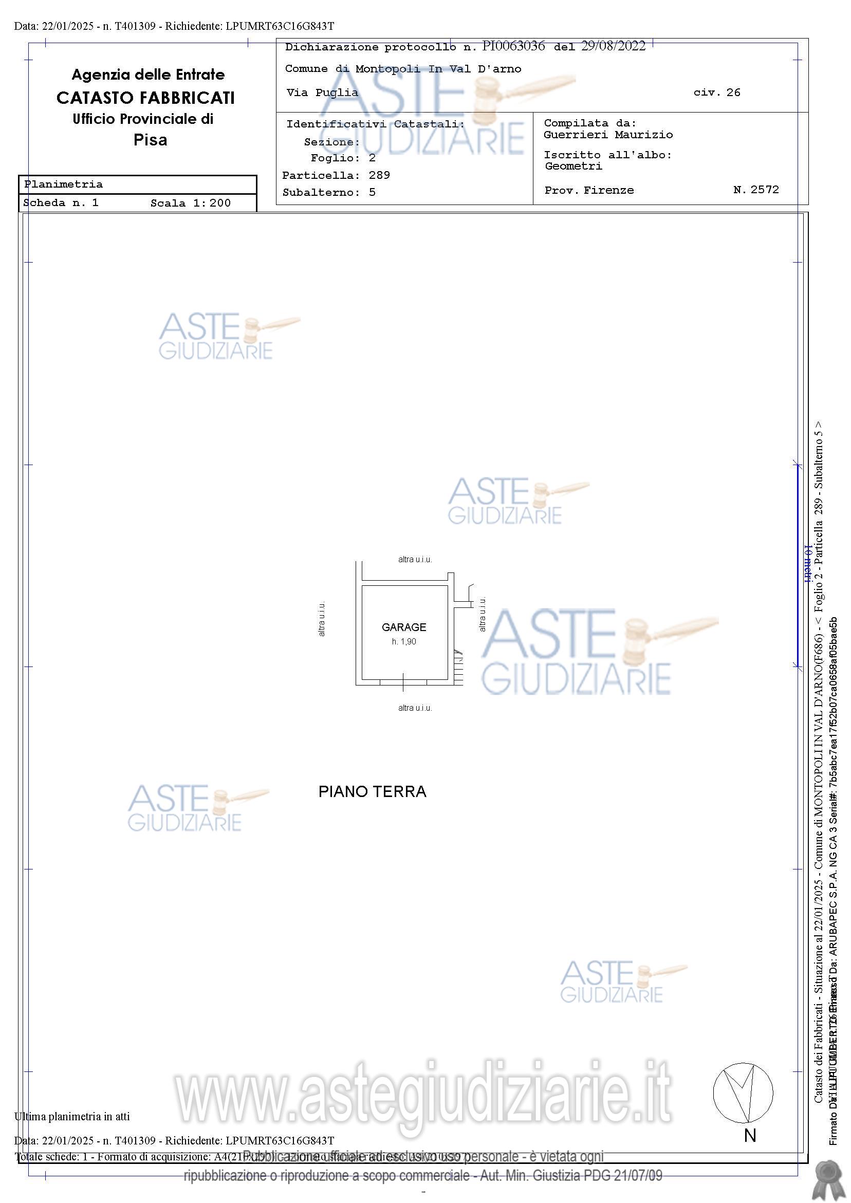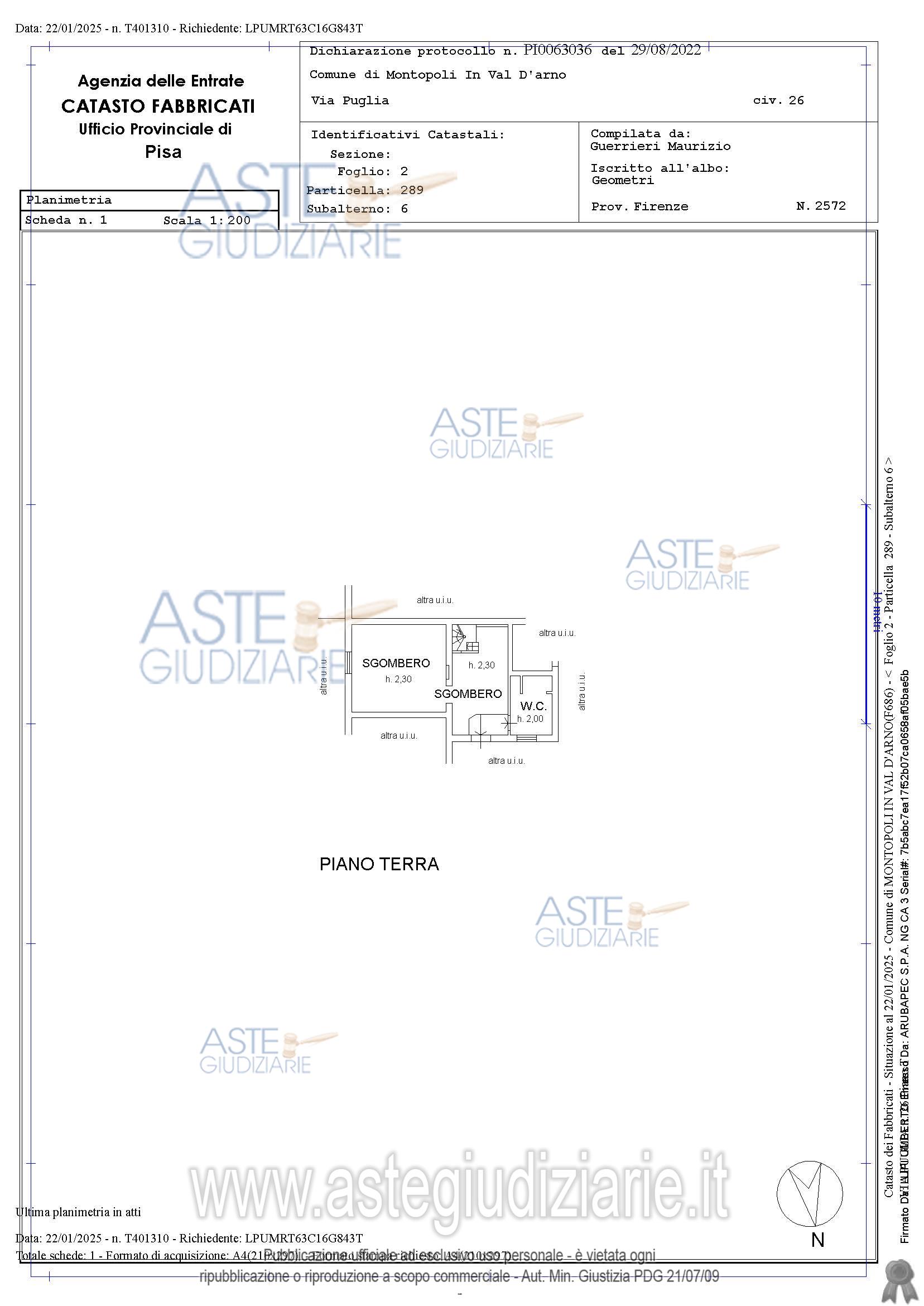 Vendita all'asta Senza incanto, con gara telematica asincrona - LOTTO UNICO: Appartamento per civile abitazione con annessi due locali di sgombero, bagno, locale caldaia e autorimessa, oltre cortile esclusivo. Prezzo base € 110.000,00 (offerta minima € 82.500,00). Data inizio operazioni di vendita: 28/01/2026 ore 11:00. Giudice Marco Zinna. Professionista delegato alla vendita Not. Salvatore Catania - Email "scatania@notariato.it"; Tel. 050503778. Custode Giudiziario Cosimo Erriquez - Email "prenotazionipisa@astagiudiziaria.com"; Cell. 3468748140; Tel. 050554790. Rif. Tribunale di Pisa - Espropriazione immobiliare (cartabia) n. 197/2024
