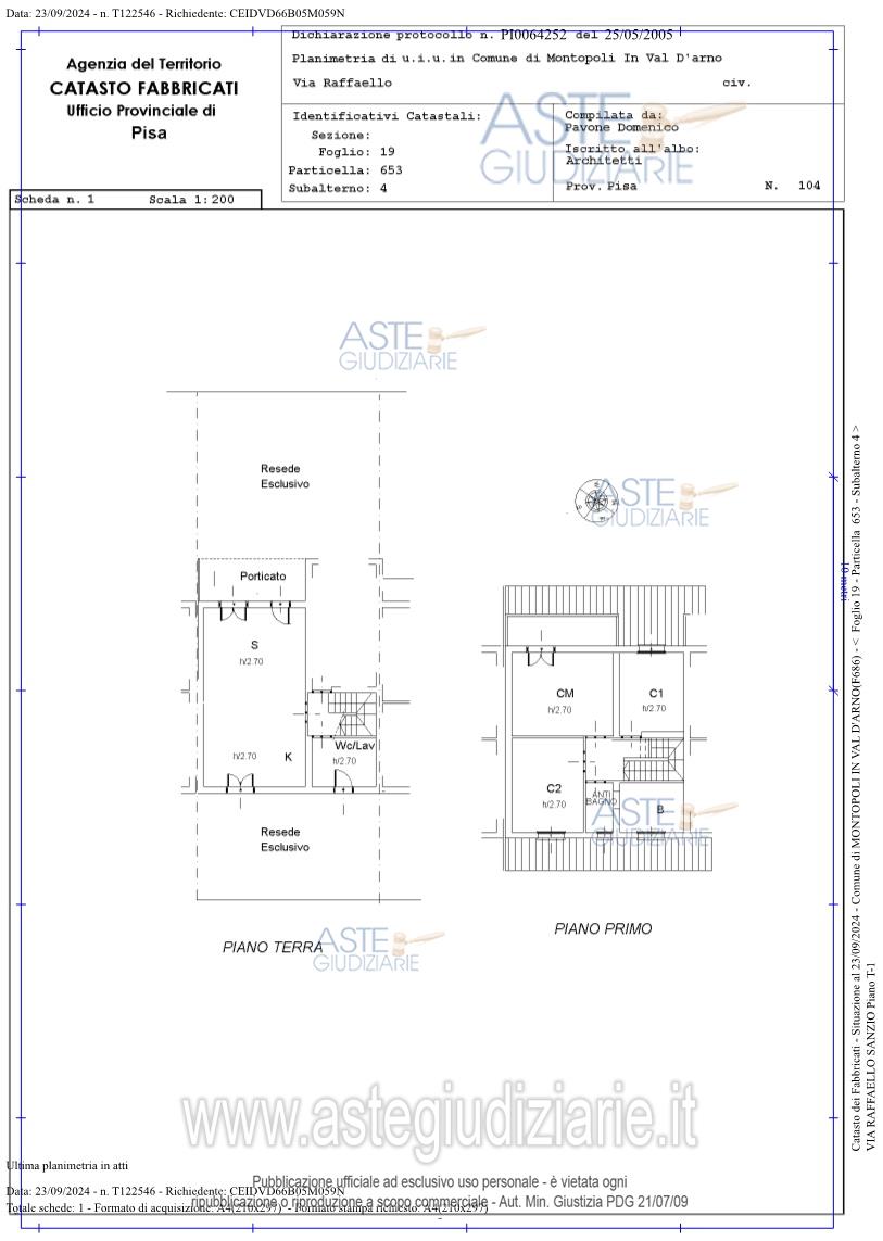 Vendita all'asta Senza incanto, con gara telematica asincrona - LOTTO UNICO: Piena proprietà dell’intero di appartamento per civile abitazione di tipo “terra-tetto” avente accesso da passo pedonale e carrabile dalla via Raffaello Sanzio, 68. Prezzo base € 181.000,00 (offerta minima € 135.750,00). Data inizio operazioni di vendita: 04/06/2026 ore 11:00. Giudice Zinna. Professionista delegato alla vendita Avv. Stefano Giusti. Custode Giudiziario Dott. Cosimo Erriquez - Email "prenotazionipisa@astagiudiziaria.com"; Tel. 050554790. Rif. Tribunale di Pisa - Espropriazione immobiliare (cartabia) n. 61/2024