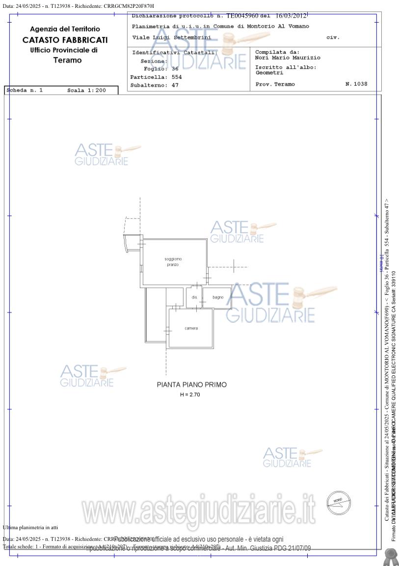 Vendita all'asta Senza incanto, con gara telematica asincrona - LOTTO 2: Diritti di piena proprietà (1/1) su appartamento in Montorio al Vomano (TE) alla Piazza Ferrara n° 39 della superficie convenzionale di mq. 77,75, ubicato al piano primo di un più ampio immobile ad uso prettamente residenziale. Prezzo base € 43.500,00 (offerta minima € 32.625,00). Data inizio operazioni di vendita: 25/02/2026 ore 16:00. Giudice Flavio Conciatori. Professionista delegato alla vendita Avv. Francesco Paolo Foresta - Email "fpfavv@yahoo.it"; Cell. 3394064058; Tel. 08611886779. Custode Giudiziario Avv. Francesco Paolo Foresta - Email "fpfavv@yahoo.it"; Cell. 3394064058; Tel. 08611886779. Rif. Tribunale di Teramo - Espropriazione immobiliare (cartabia) n. 70/2025