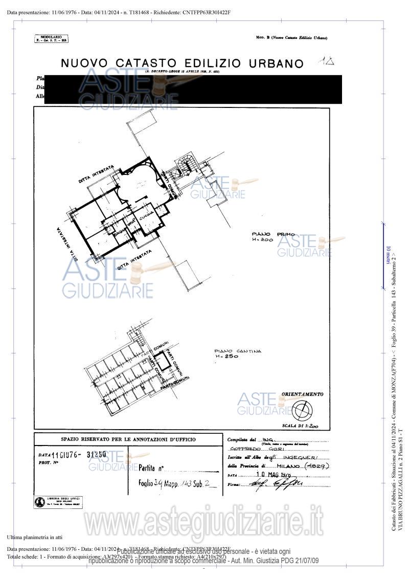 Vendita all'asta Senza incanto, con gara telematica sincrona - LOTTO 1: Appartamento della superficie commerciale di 137,20 mq per la quota di piena proprietà, oltre a cantina, due box singoli della superficie commerciali di 24 mq cadauno e un box doppio della superfic. Prezzo base € 391.212,00 (offerta minima € 293.409,00). Data vendita 19/11/2025 ore 11:30. Giudice Caterina Rizzotto. Professionista delegato alla vendita Dott. Paolo Bonuomo. Custode Giudiziario Dott. Paolo Bonuomo - Email "bonuomo@studiobonuomo.it"; Tel. 0392164287. Rif. Tribunale di Monza - Espropriazione immobiliare (cartabia) n. 245/2024