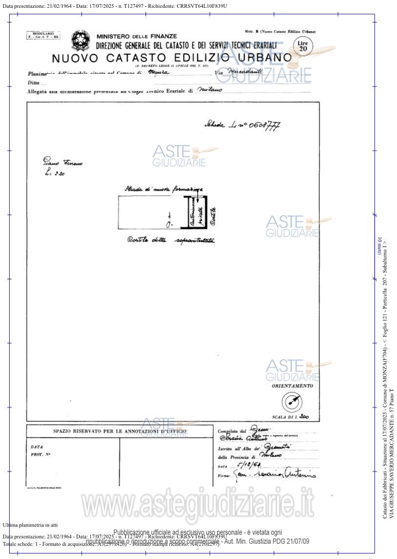 Vendita all'asta Senza incanto, con gara telematica sincrona - LOTTO 1: Appartamento per la quota di 1000/1000 trilocale al piano quarto privo di ascensore costituito da ingresso, soggiorno con accesso alla cucina non abitabile, due camere e bagno oltre cantina al pian. Prezzo base € 142.500,00 (offerta minima € 106.875,00). Data vendita 22/04/2026 ore 09:00. Giudice Dott. Patrizia Fantin. Professionista delegato alla vendita Sergio Tremolada. Custode Giudiziario Sergio Tremolada - Email "stremolada@stassmonza.it"; Tel. 039360684. Rif. Tribunale di Monza - Espropriazione immobiliare (cartabia) n. 234/2025