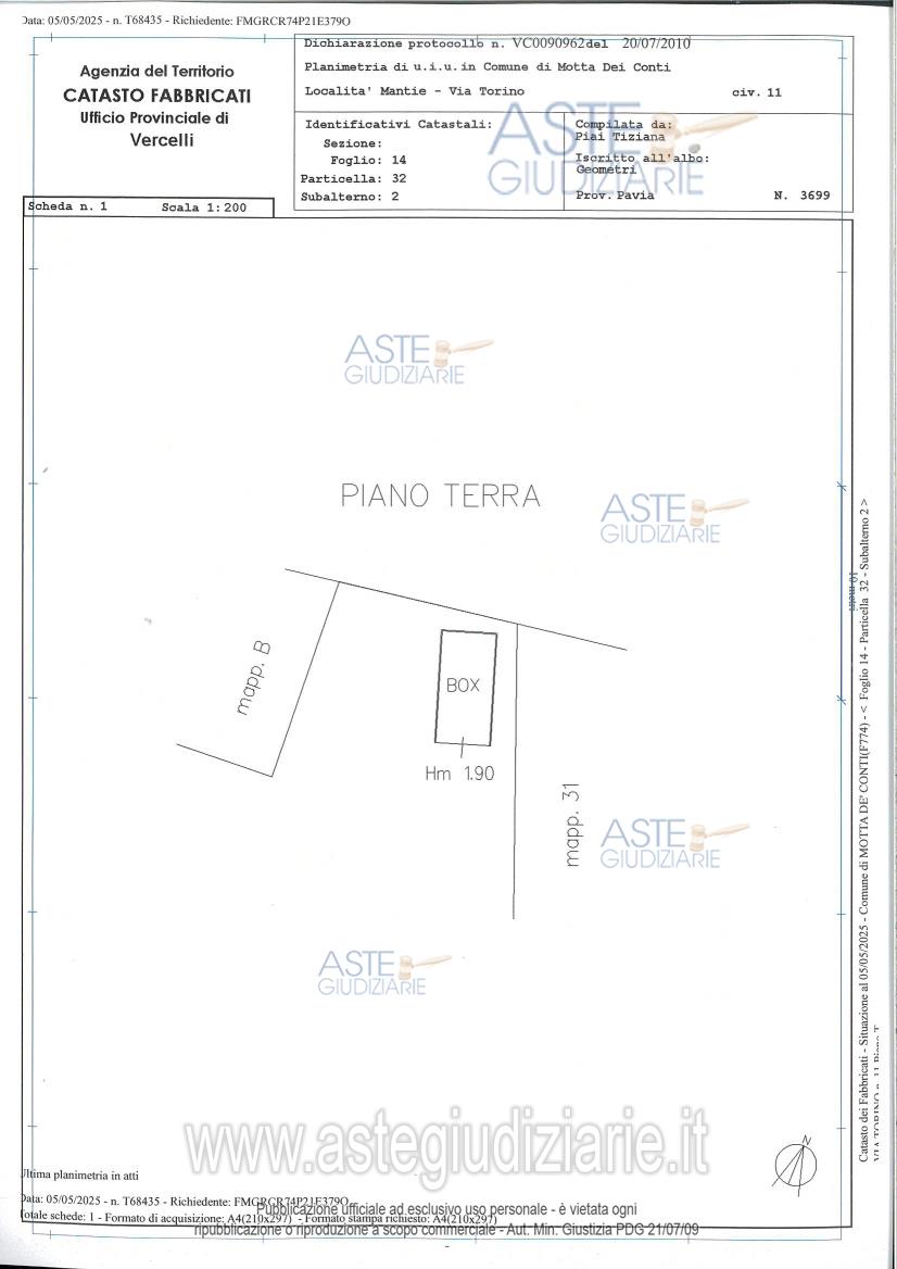 Vendita in attesa dell'emissione del nuovo bando d'asta. LOTTO UNICO: immobili in Motta De' Conti (VC), frazione Mantie, Via Torino n.13. Il compendio è costituito da villetta a destinazione residenziale, aderente lungo il lato est ad altra proprietà di terzi, comprensiva di sedime pertinenziale ai lati nord,ovest e sud. Identificato a Catasto Fabbricati al Foglio 14 particella 32 sub.1 categoria A/4., oltre garage. Ultimo prezzo base € 75.746,00 (offerta minima € 56.810,00). Professionista delegato alla vendita Avv. Pier Enrico Arduino - Email "avv.arduino@as-studiolegale.it"; Cell. 33420245981; Tel. 014255188. Custode Giudiziario Avv. Pier Enrico Arduino - Email "avv.arduino@as-studiolegale.it"; Cell. 33420245981; Tel. 014255188. Rif. Tribunale di Vercelli - Espropriazione immobiliare (cartabia) n. 3/2025