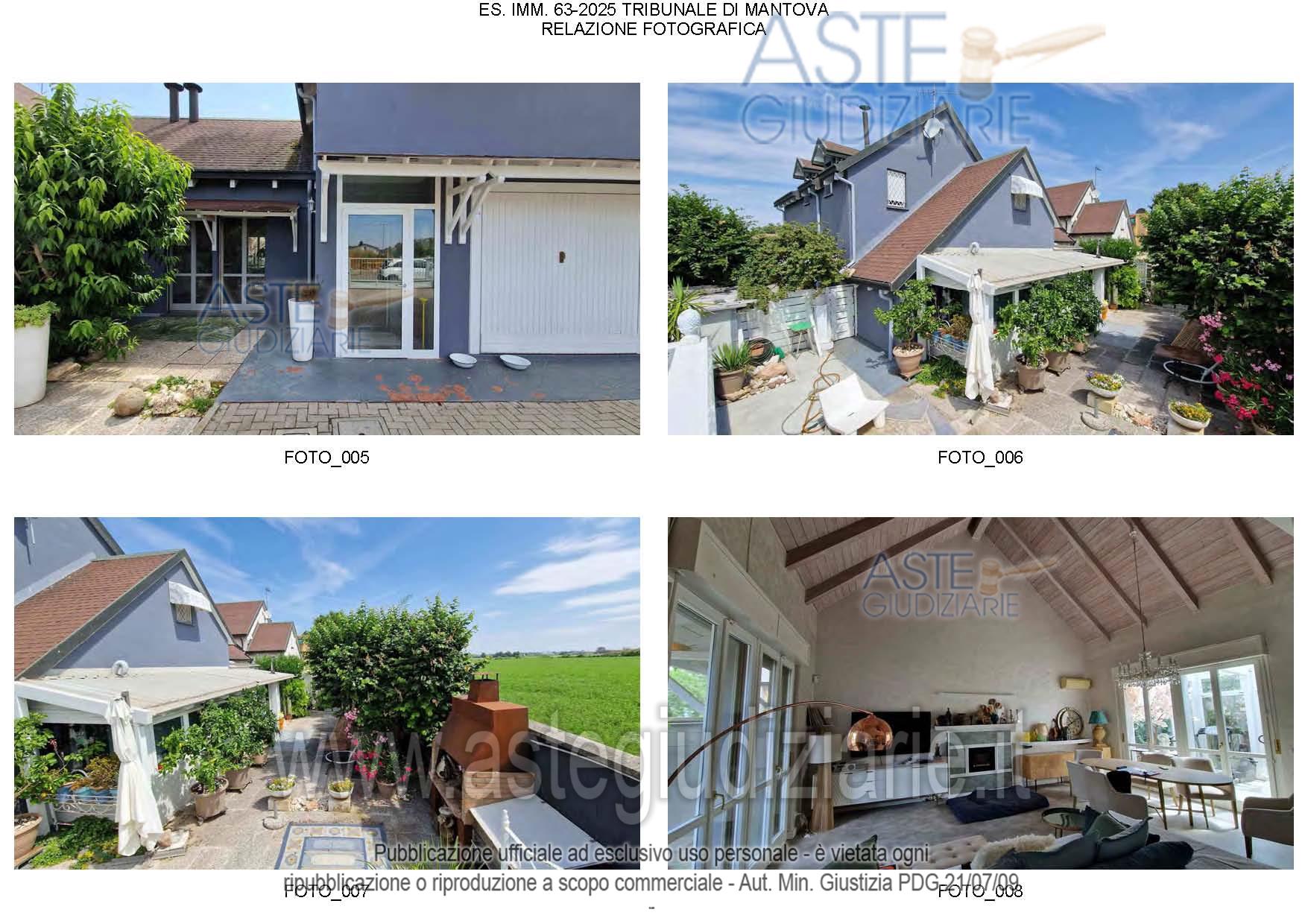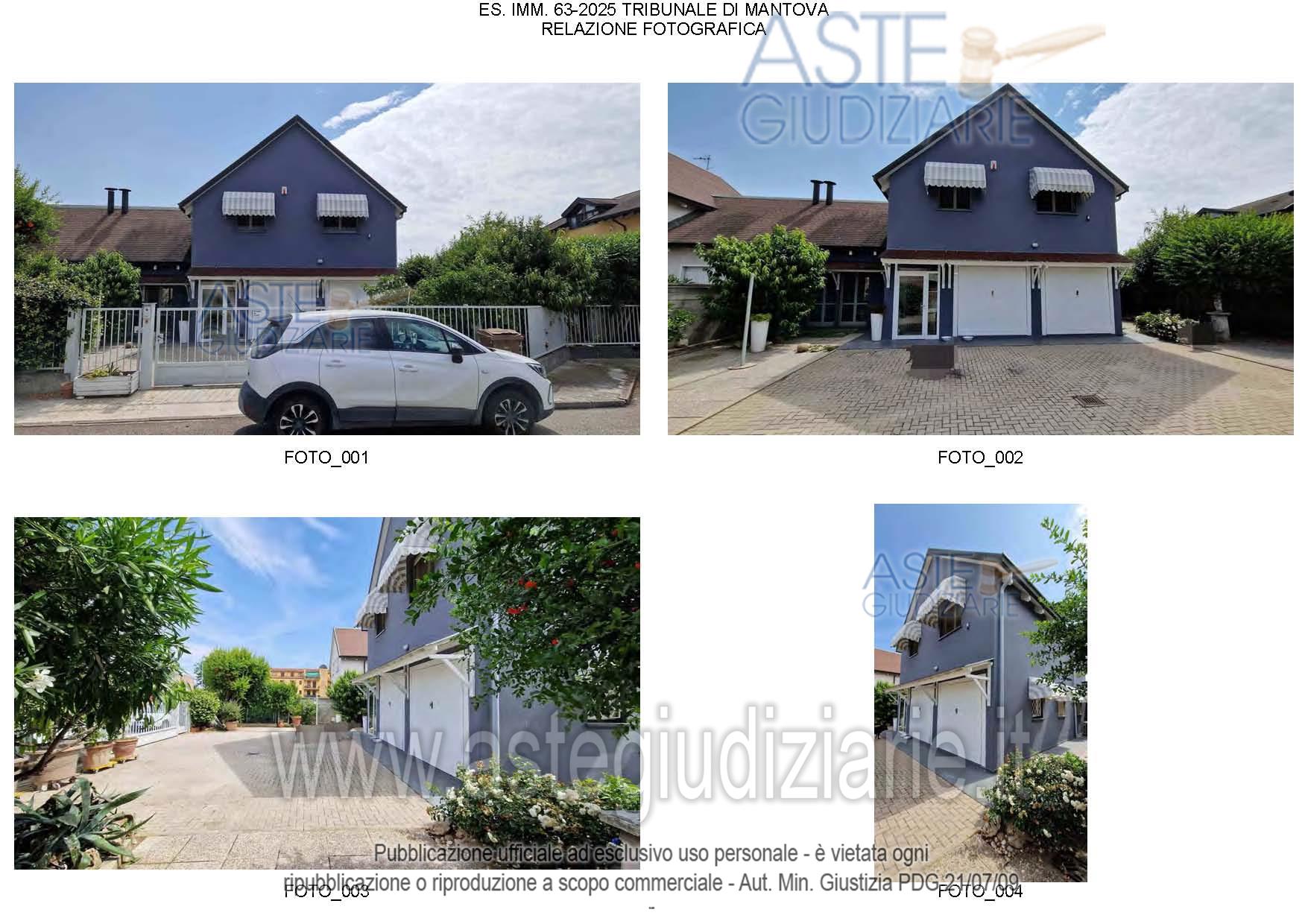 Vendita all'asta Senza incanto, con gara telematica sincrona mista - LOTTO UNICO: Piena proprietà di porzione di edificio bifamiliare oltre ad area cortiva esclusiva ed autorimessa di pertinenza. Prezzo base € 143.395,00 (offerta minima € 107.547,00). Data vendita 06/05/2026 ore 14:30. Giudice Mauro Pietro Bernardi. Professionista delegato alla vendita Not. Paola Cavandoli - Email "pcavandoli@notariato.it". Custode Giudiziario Sovemo Srl Istituto Vendite Giudiziarie Di Mantova - Email "immobiliaremantova@sovemo.com"; Tel. 0376220694. Rif. Tribunale di Mantova - Espropriazione immobiliare (cartabia) n. 63/2025
