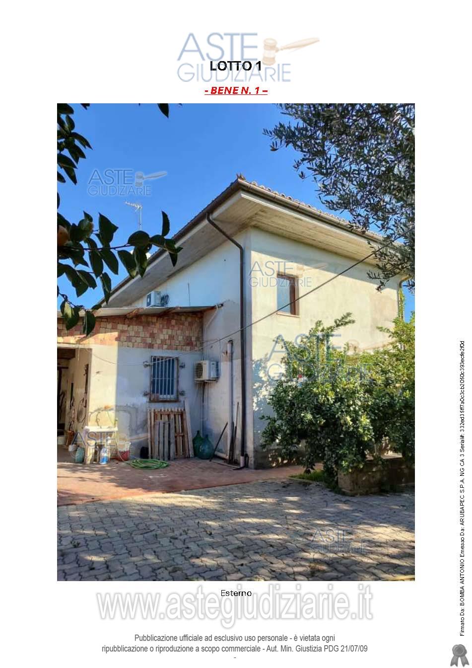 Vendita all'asta Senza incanto, con gara telematica asincrona - LOTTO 1: Fabbricato per civile abitazione disposto su due piani entrambi con portico esterno., garage, Terreno adibito ad area di corte esterna del fabbricato adibito a giardino, frutteto e spazi di manovra e Terreno ad uso agricolo, coltivato ad uliveto. Prezzo base € 90.611,00 (offerta minima € 67.958,25). Data inizio operazioni di vendita: 15/04/2026 ore 10:00. Giudice Chiara D'alfonso. Professionista delegato alla vendita Avv. Giorgio Di Giorgio - Email "avvdigiorgio@libero.it"; Cell. 3285678897. Custode Giudiziario Ivg - Email "ivglanciano@gmail.com"; Tel. 0872715361. Rif. Tribunale di Lanciano - Espropriazione immobiliare (cartabia) n. 10/2024